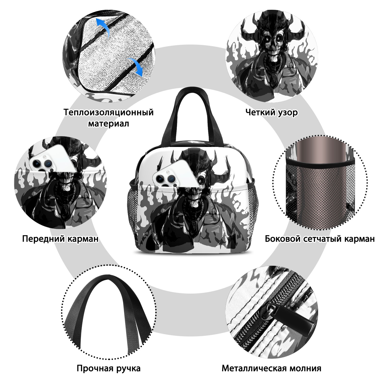 Lunch Bag,Lunch Box for Women Men,Skull In Hat Reusable Insulated Lunch Tote,Small Leakproof Cute Lunch Cooler with High Capacity for Work,Picnic,Camping