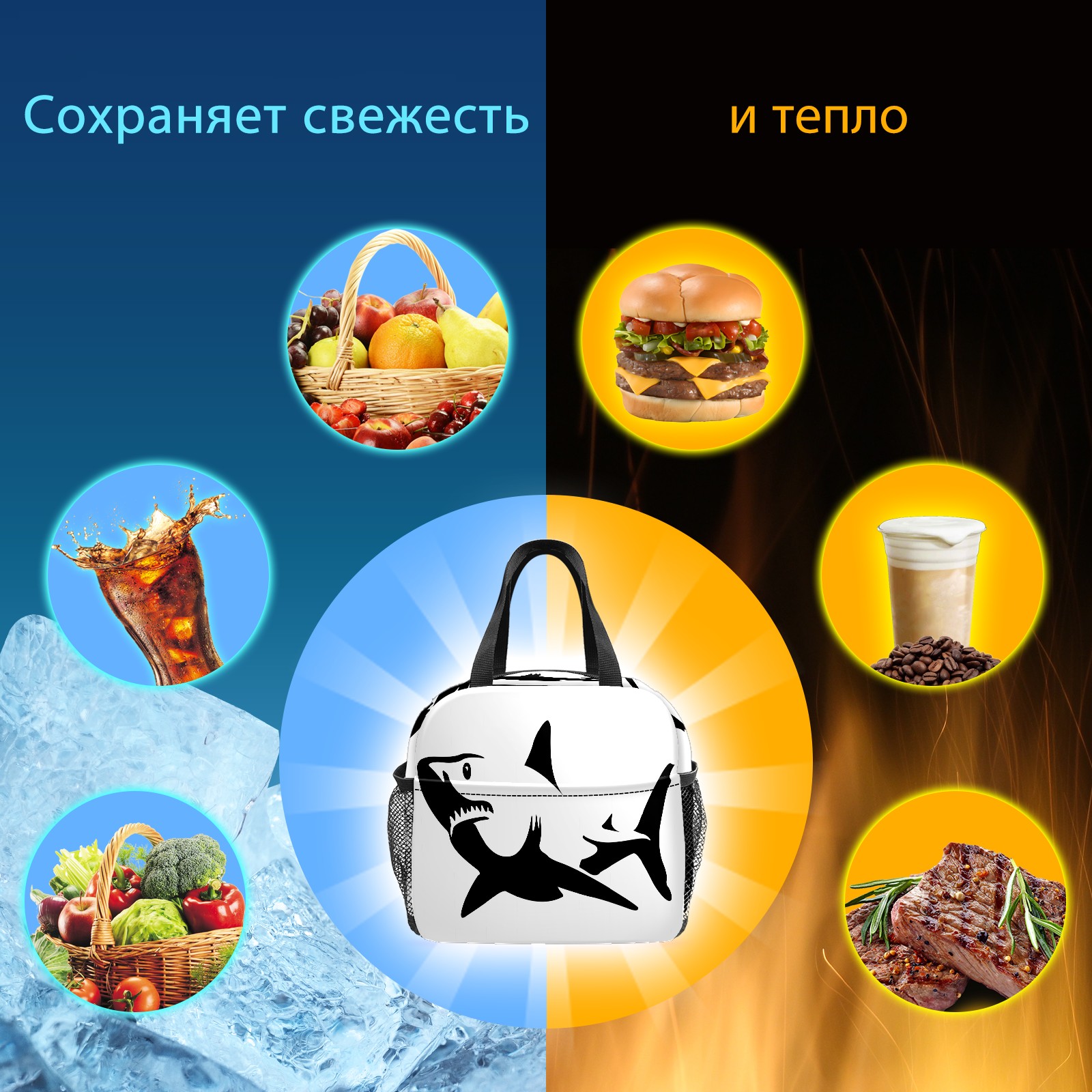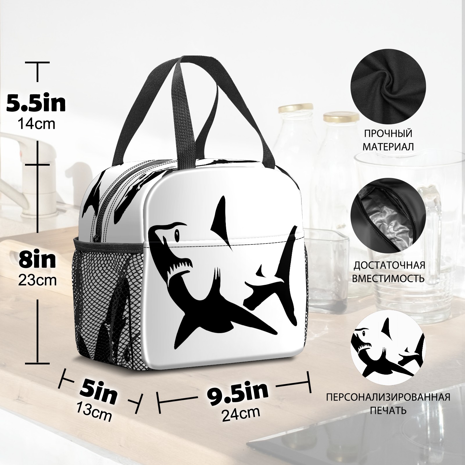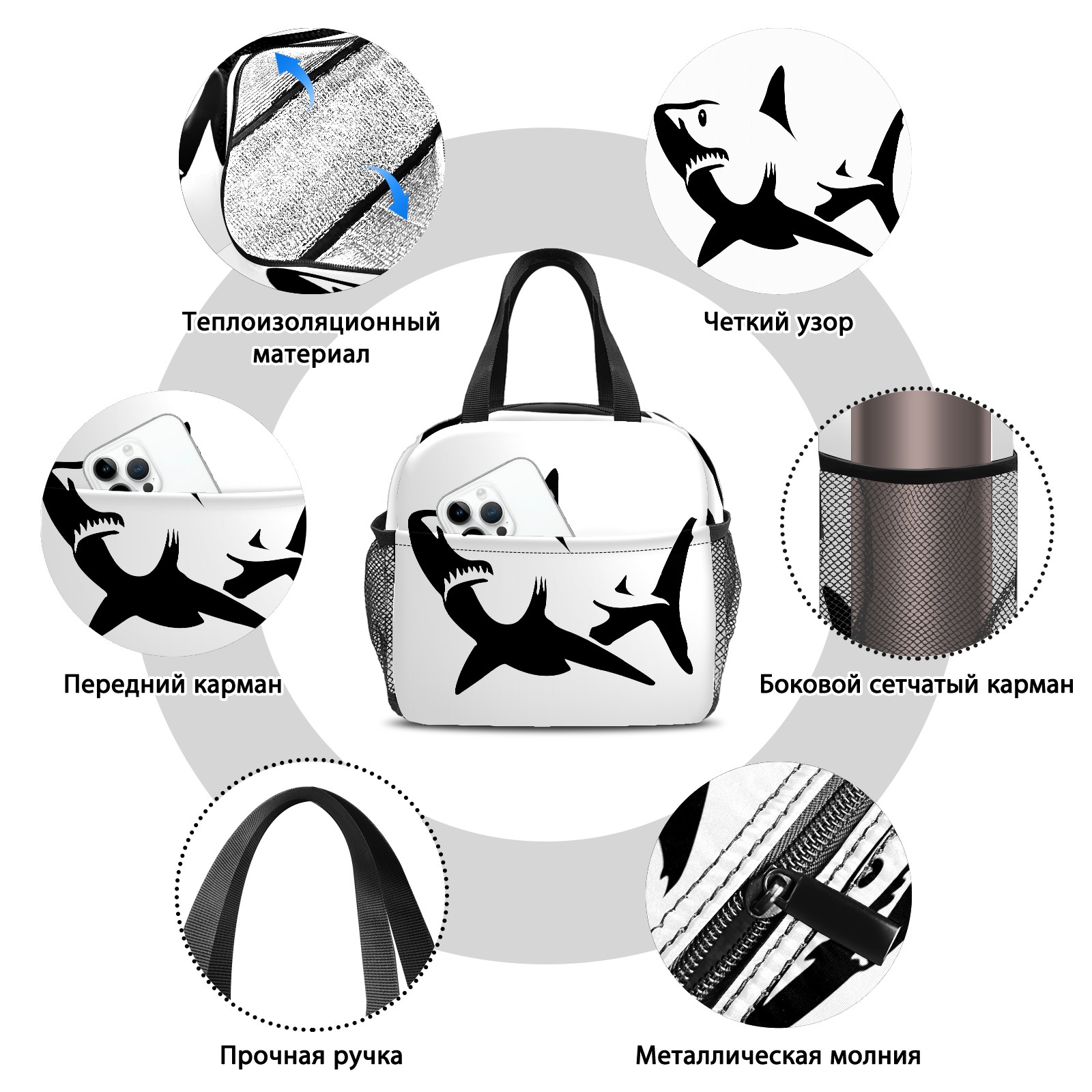 Lunch Bag,Lunch Box for Women Men,Shark Reusable Insulated Lunch Tote,Small Leakproof Cute Lunch Cooler with High Capacity for Work,Picnic,Camping