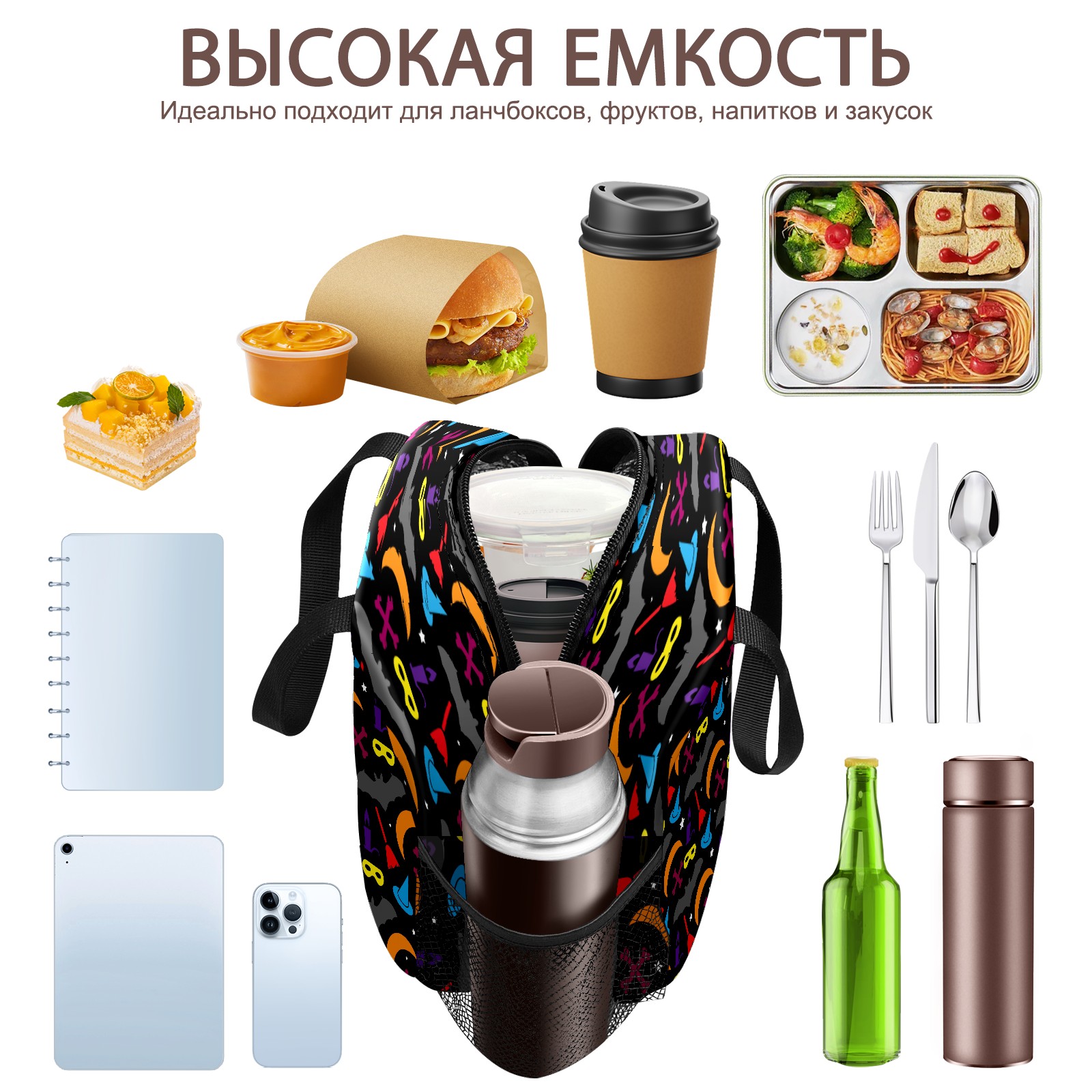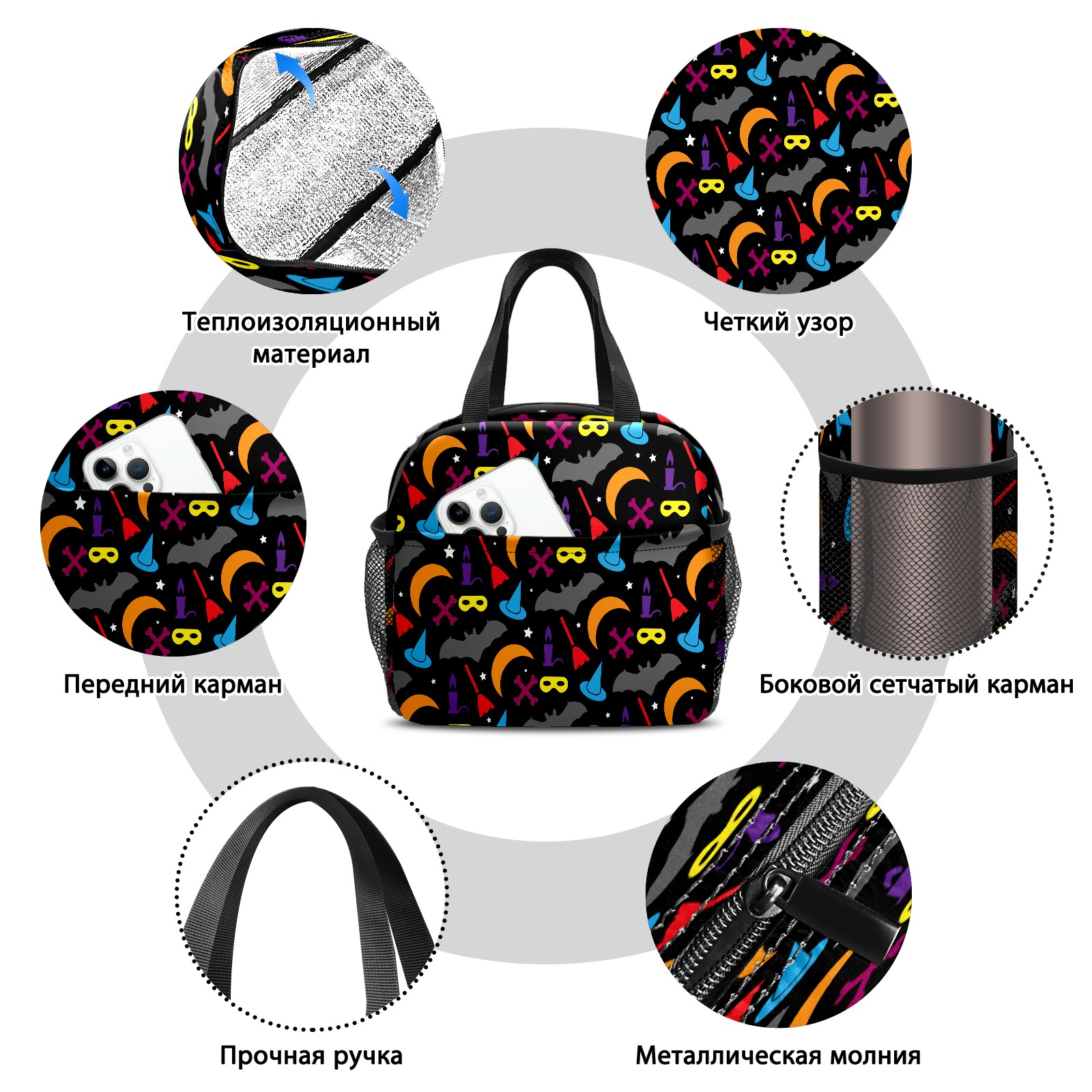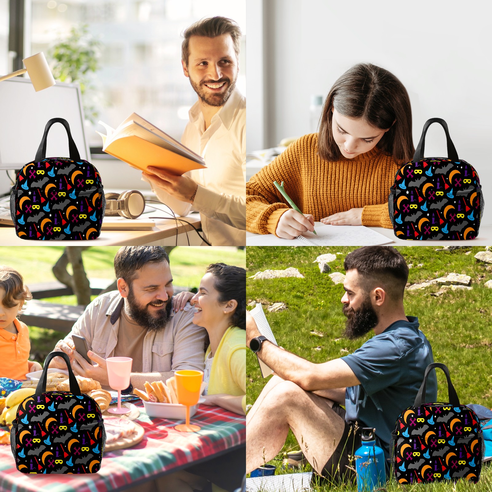 Lunch Bag,Lunch Box for Women Men,Halloween Colourful Reusable Insulated Lunch Tote,Small Leakproof Cute Lunch Cooler with High Capacity for Work,Picnic,Camping