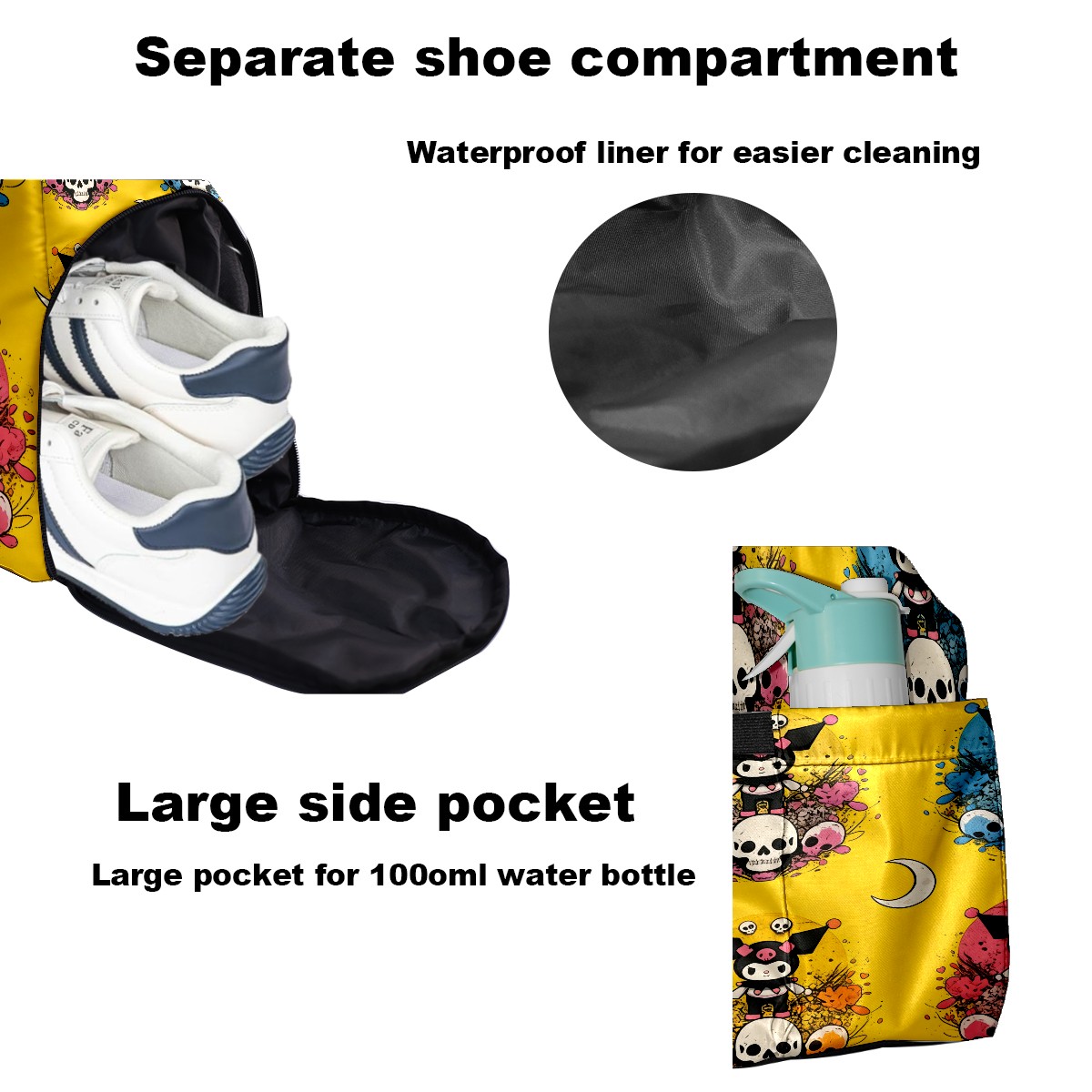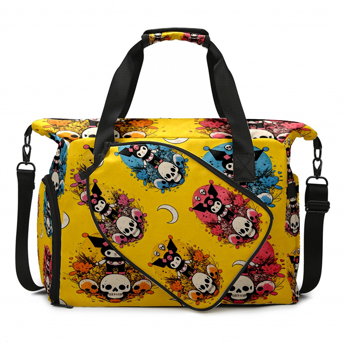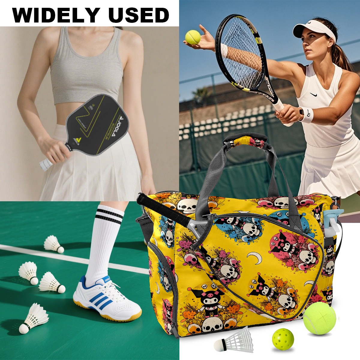 Pickleball Tote Bag Carryall for Paddles Balls and Accessories, Portable Lightweight Gear Bag for Players(Kuromi Yellow)
