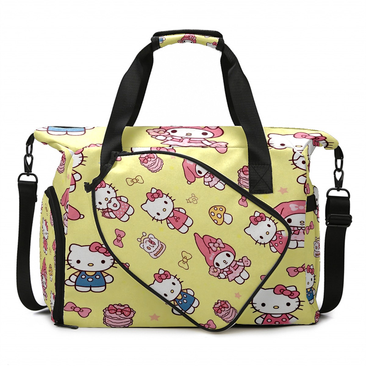 Pickleball Tote Bag Carryall for Paddles Balls and Accessories, Portable Lightweight Gear Bag for Players(Bright Cat Yellow)