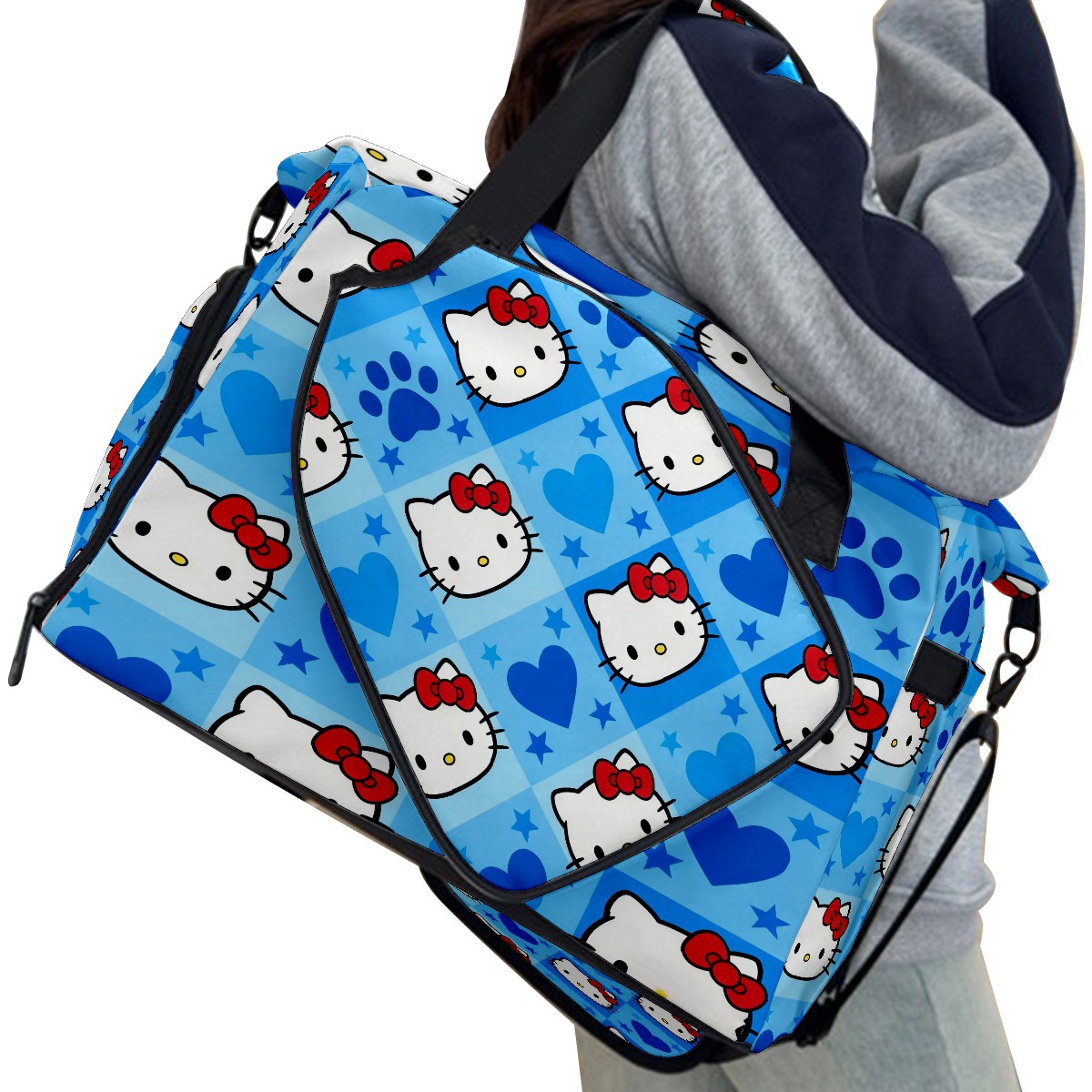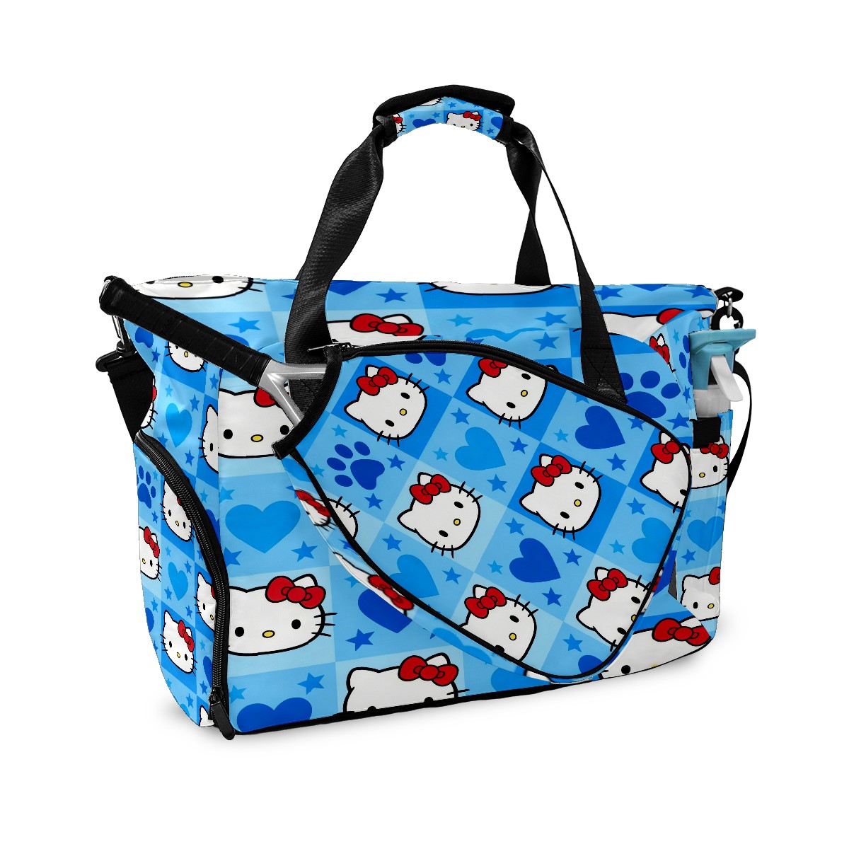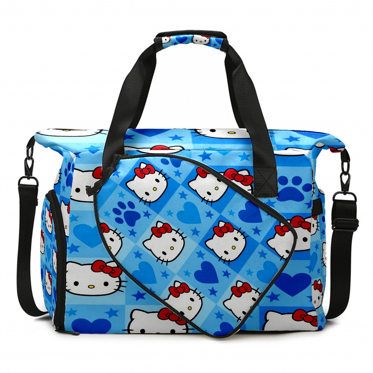 Pickleball Tote Bag Carryall for Paddles Balls and Accessories, Portable Lightweight Gear Bag for Players(Dynamic Hello Kitty Blue)