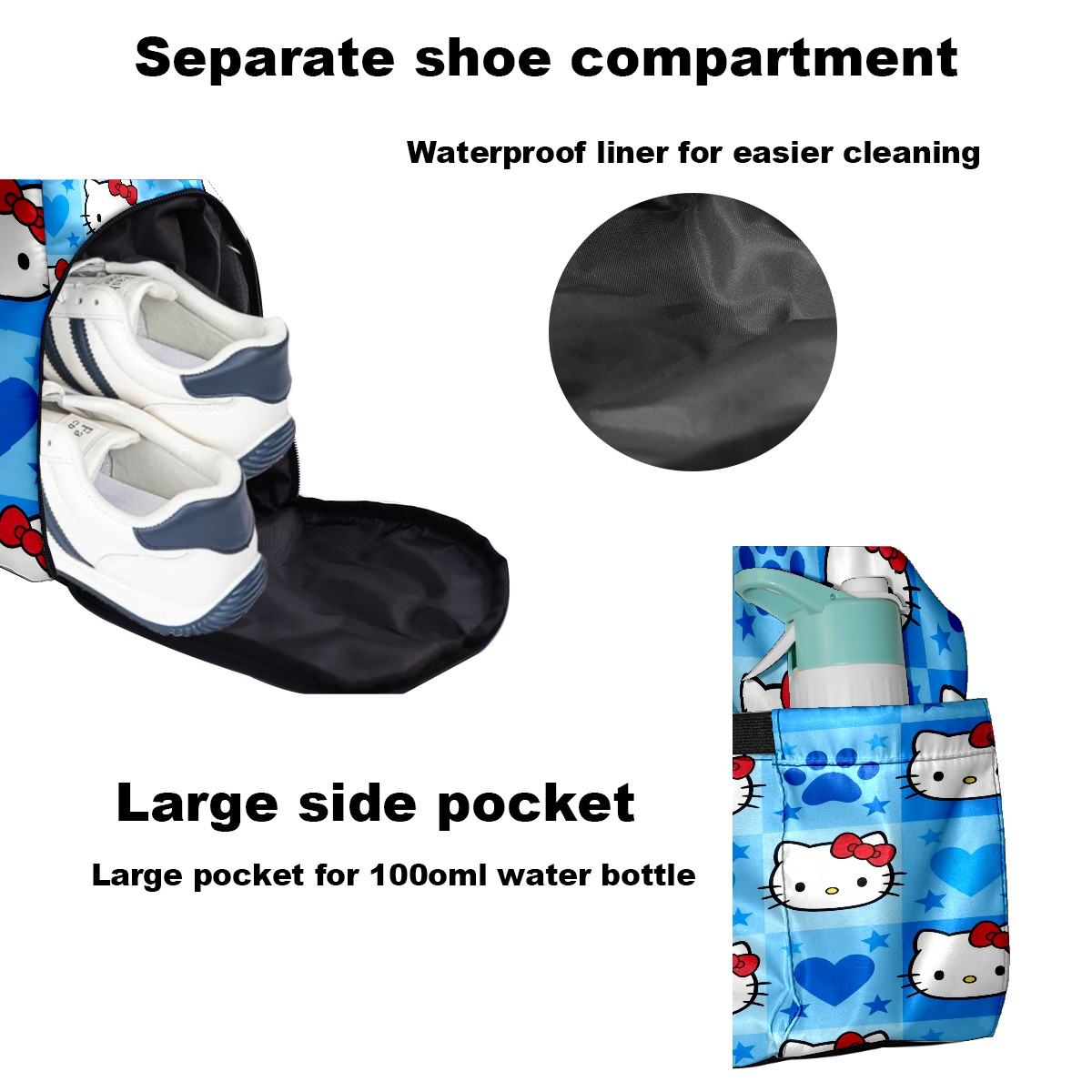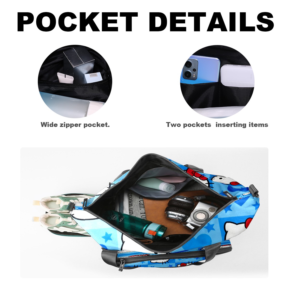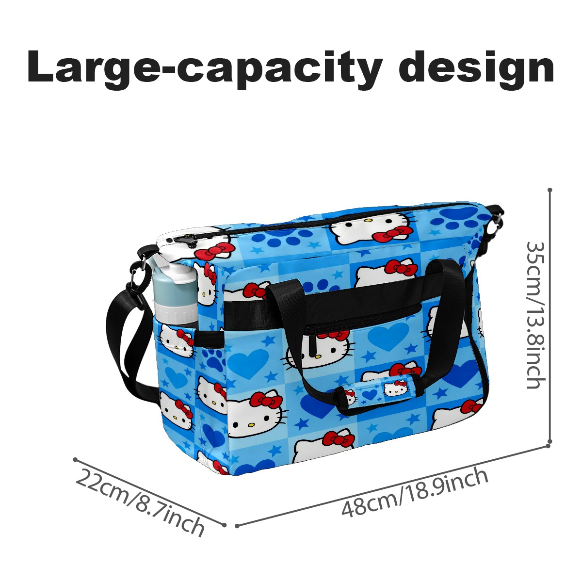 Pickleball Tote Bag Carryall for Paddles Balls and Accessories, Portable Lightweight Gear Bag for Players(Dynamic Hello Kitty Blue)