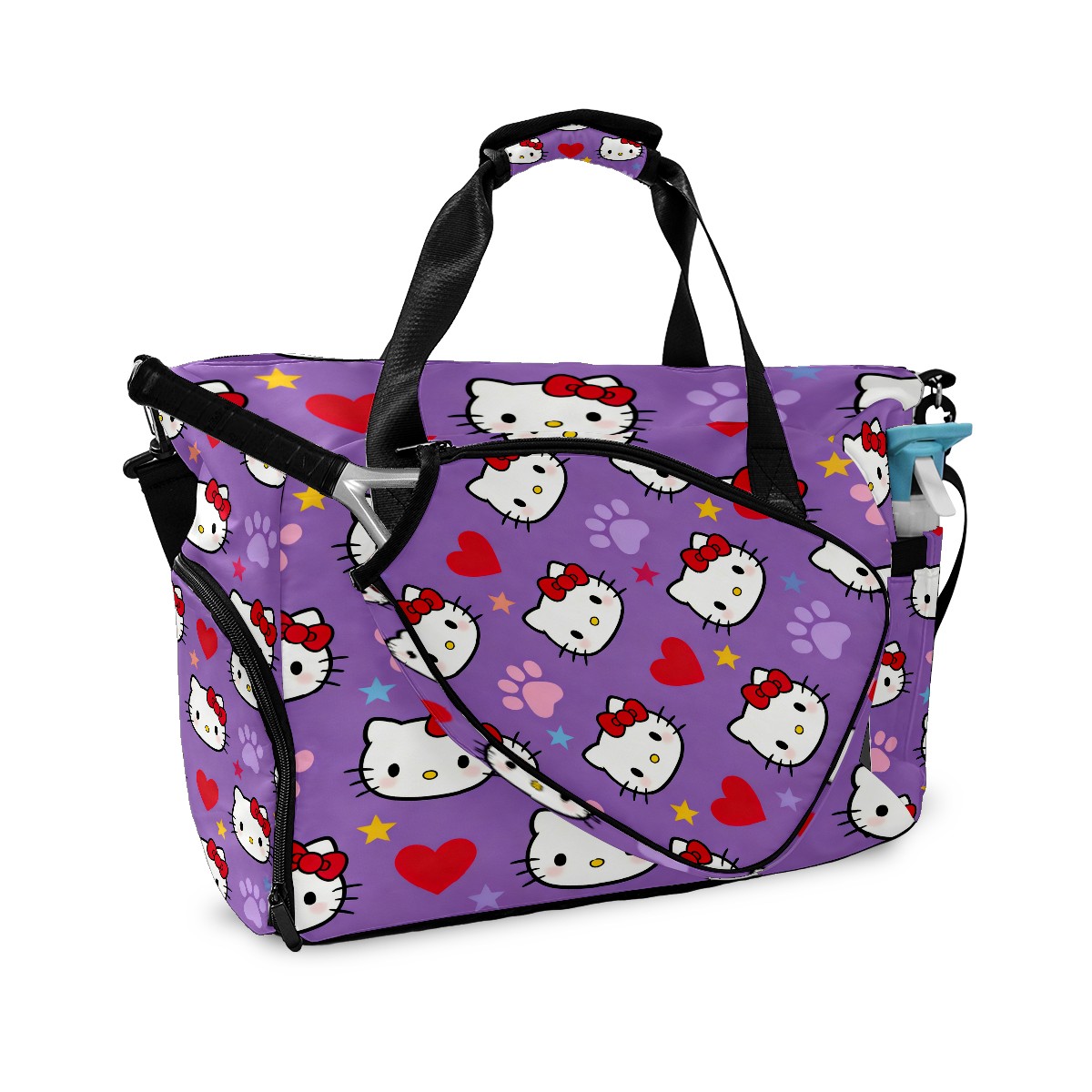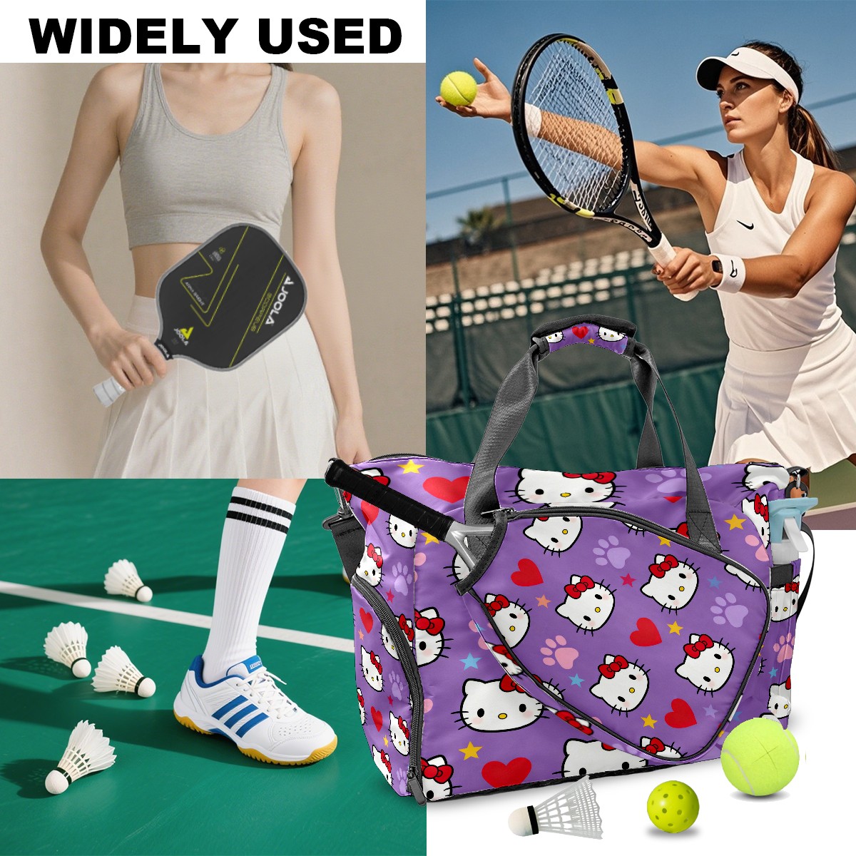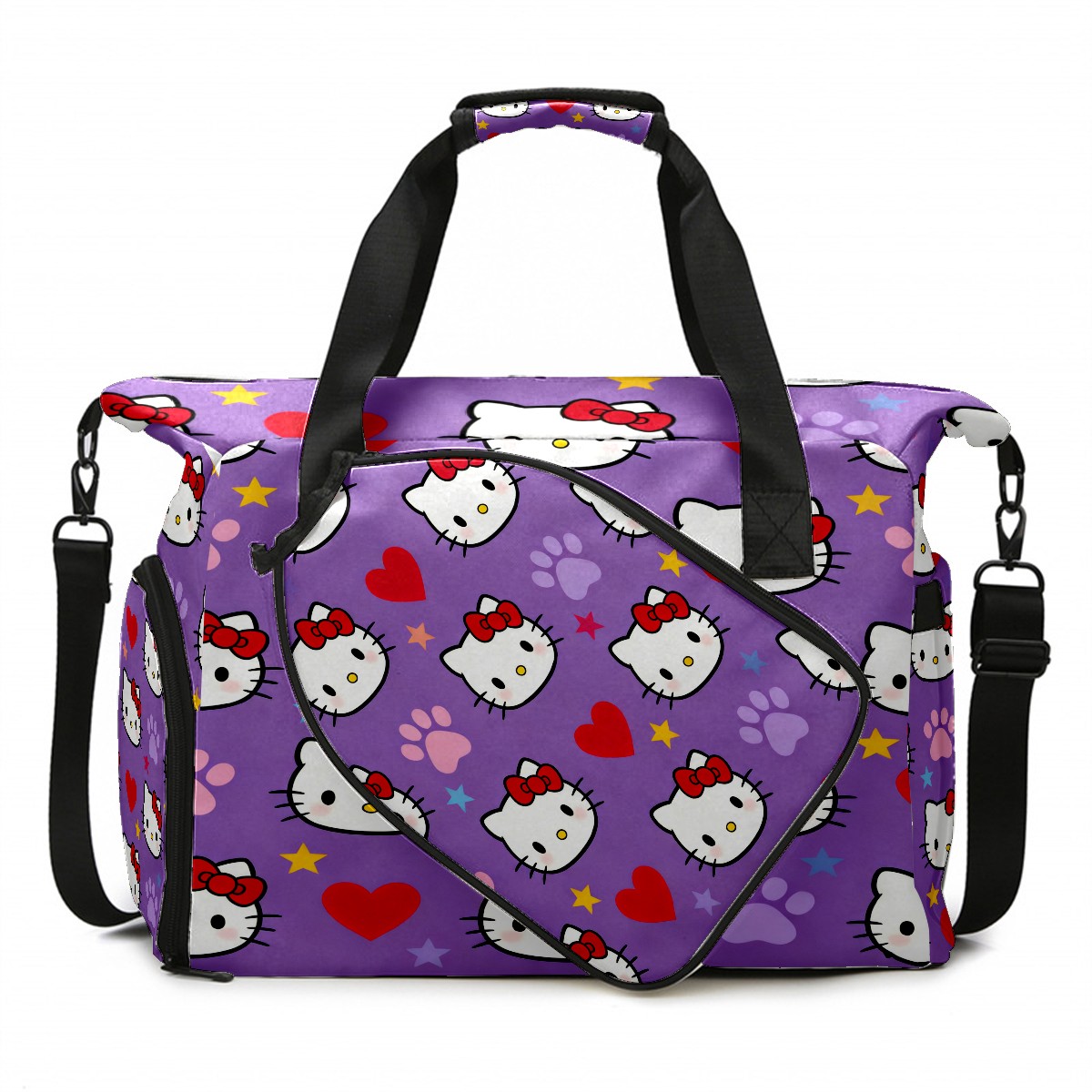 Pickleball Tote Bag Carryall for Paddles Balls and Accessories, Portable Lightweight Gear Bag for Players(Hello Kitty Purple)