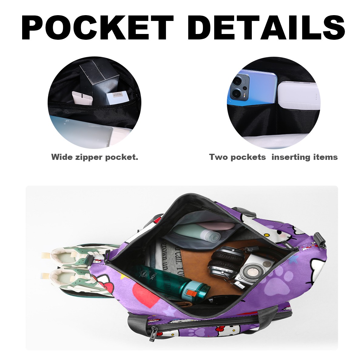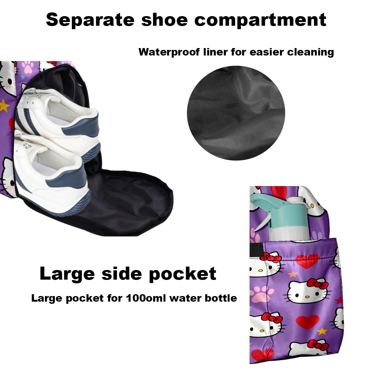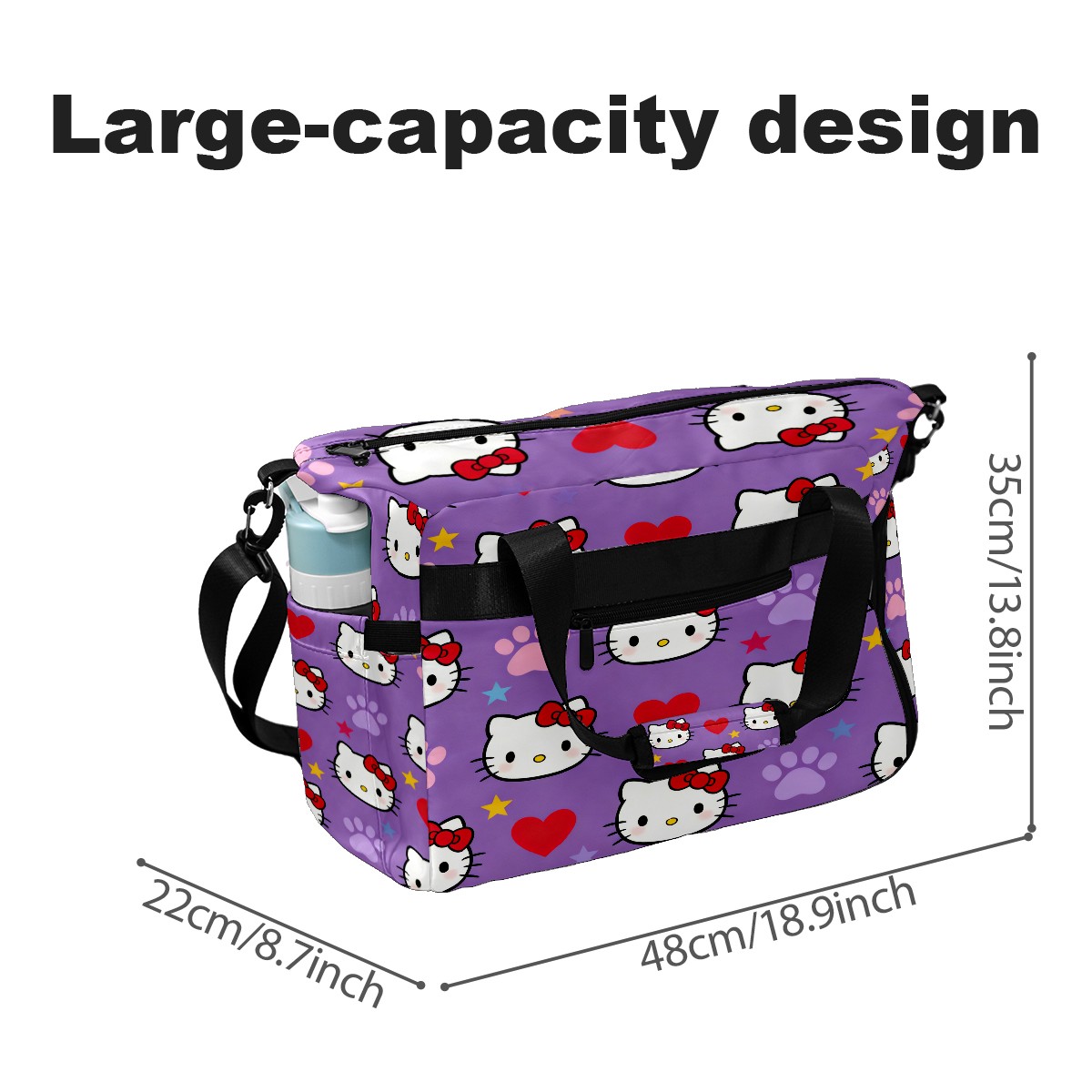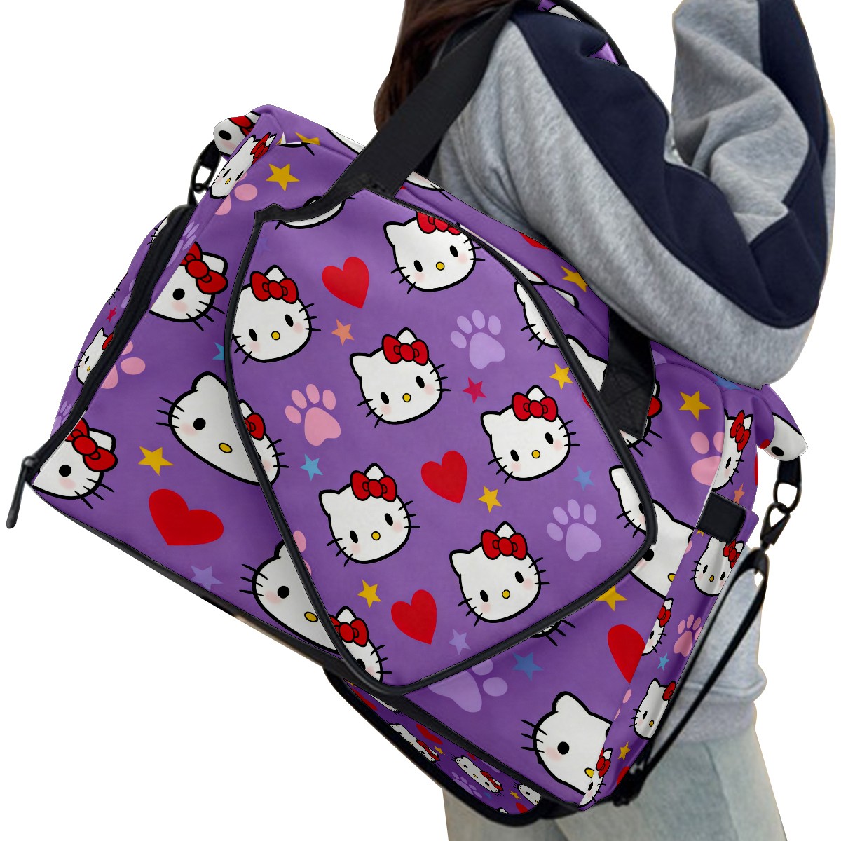 Pickleball Tote Bag Carryall for Paddles Balls and Accessories, Portable Lightweight Gear Bag for Players(Hello Kitty Purple)