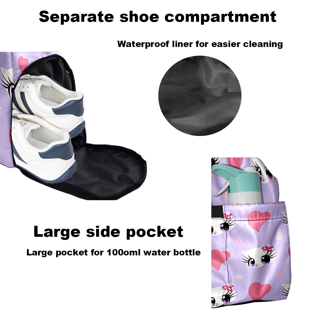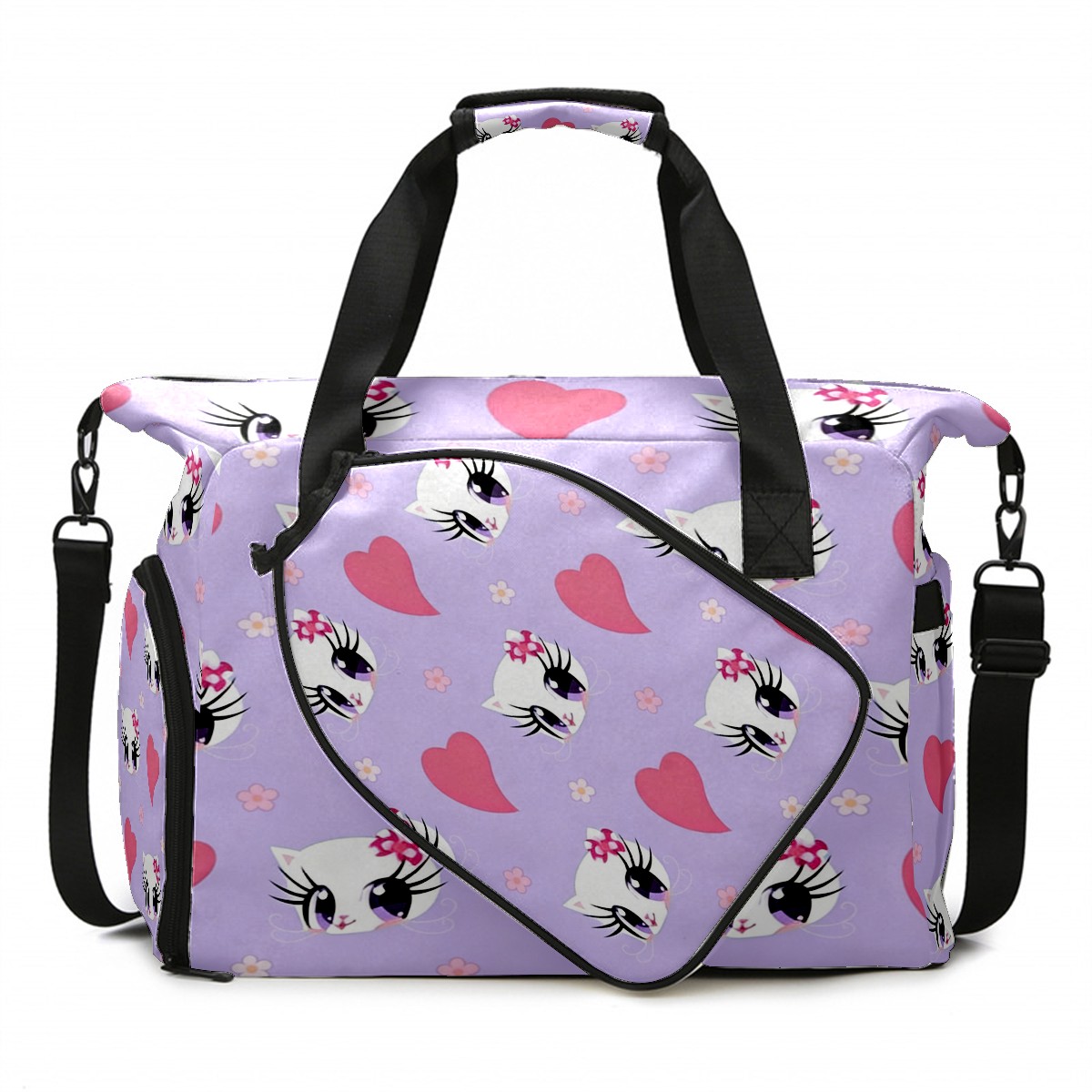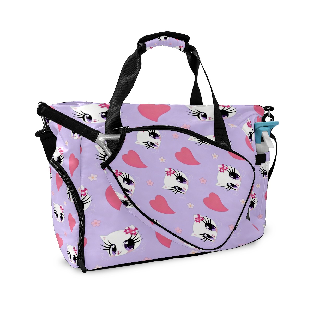 Pickleball Tote Bag Carryall for Paddles Balls and Accessories, Portable Lightweight Gear Bag for Players(Cat Purple)