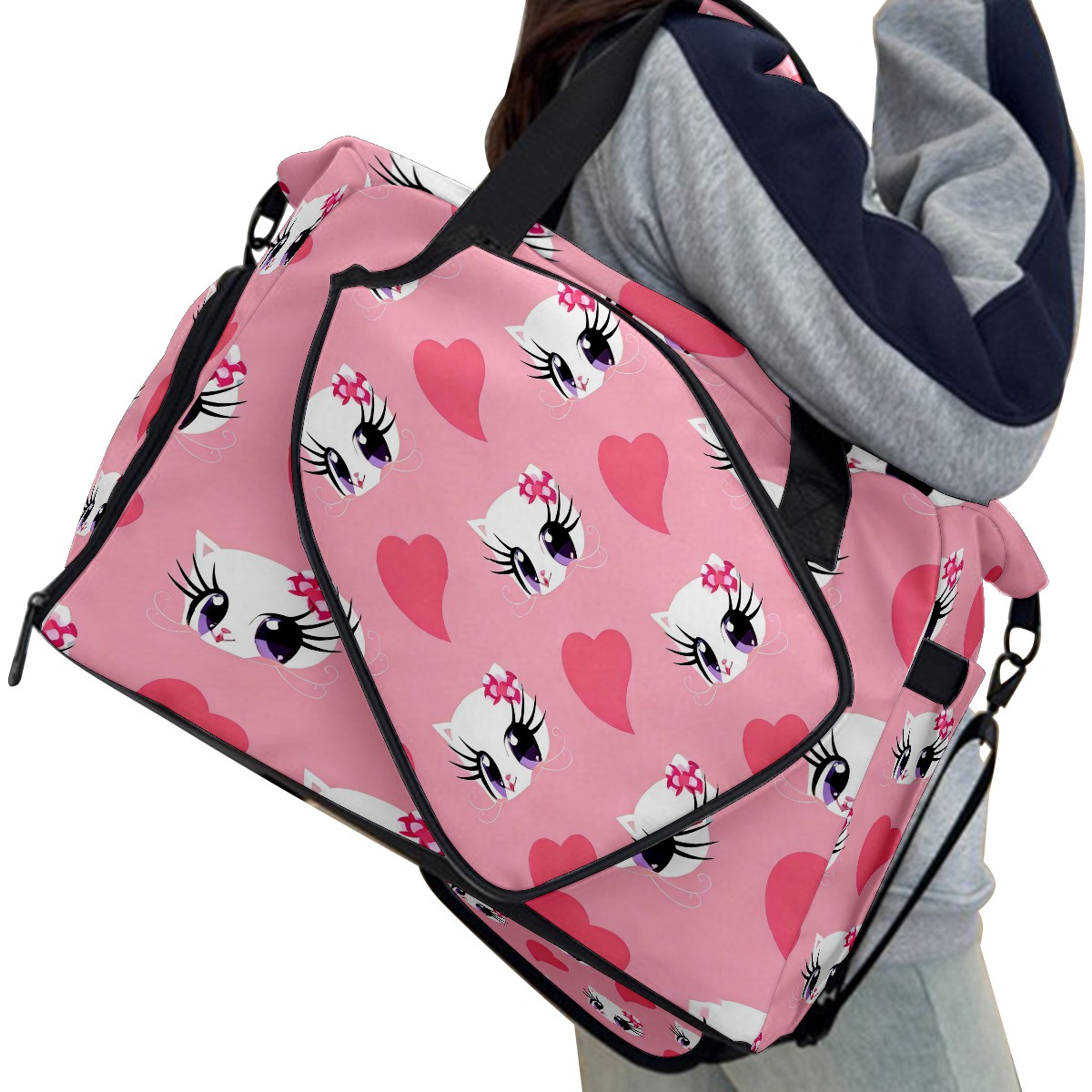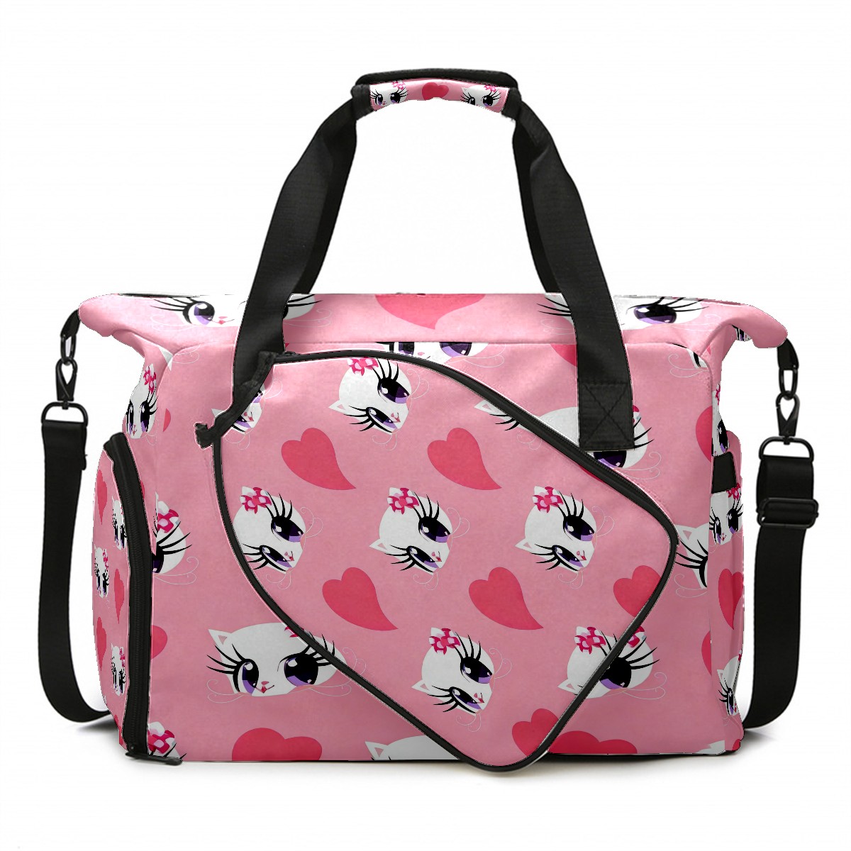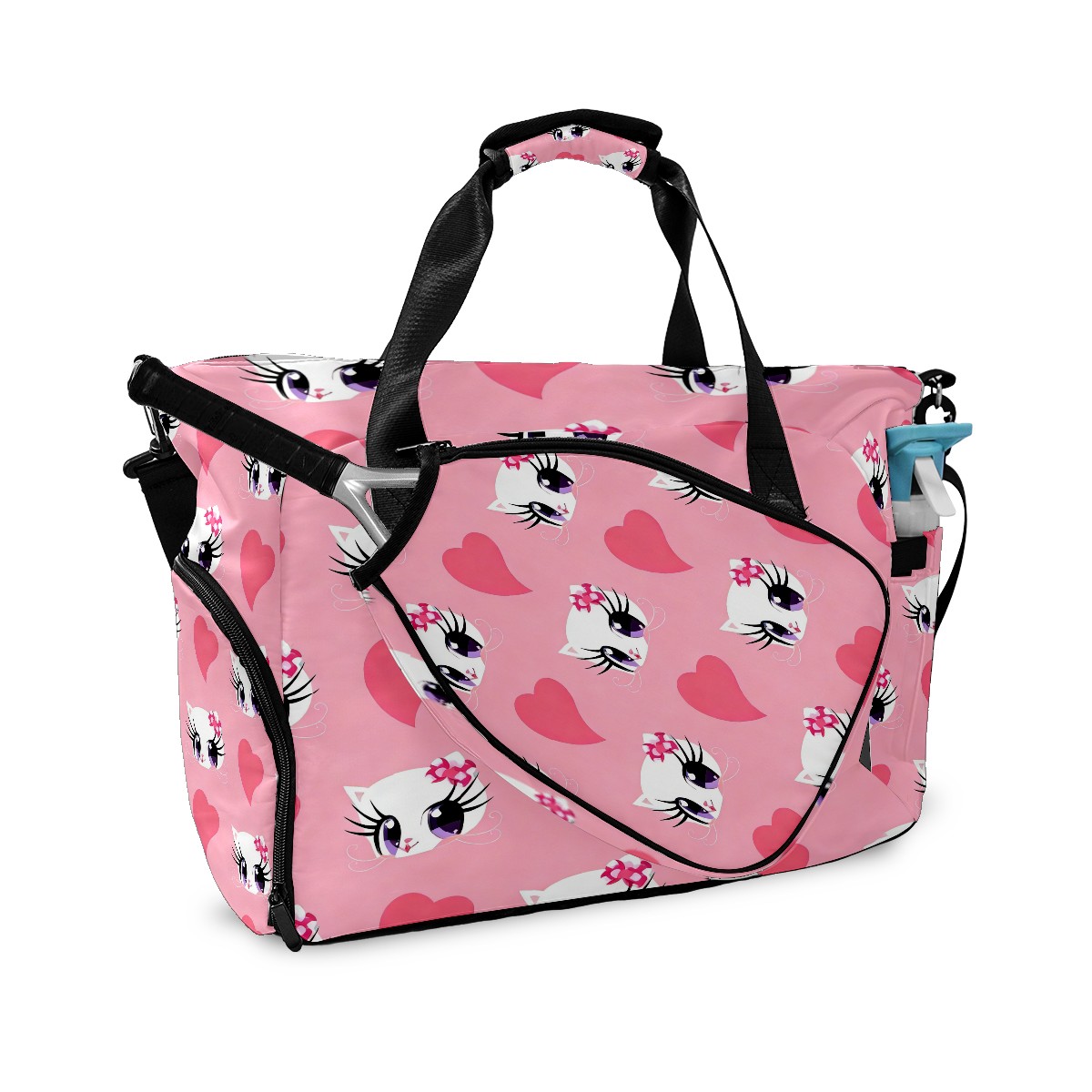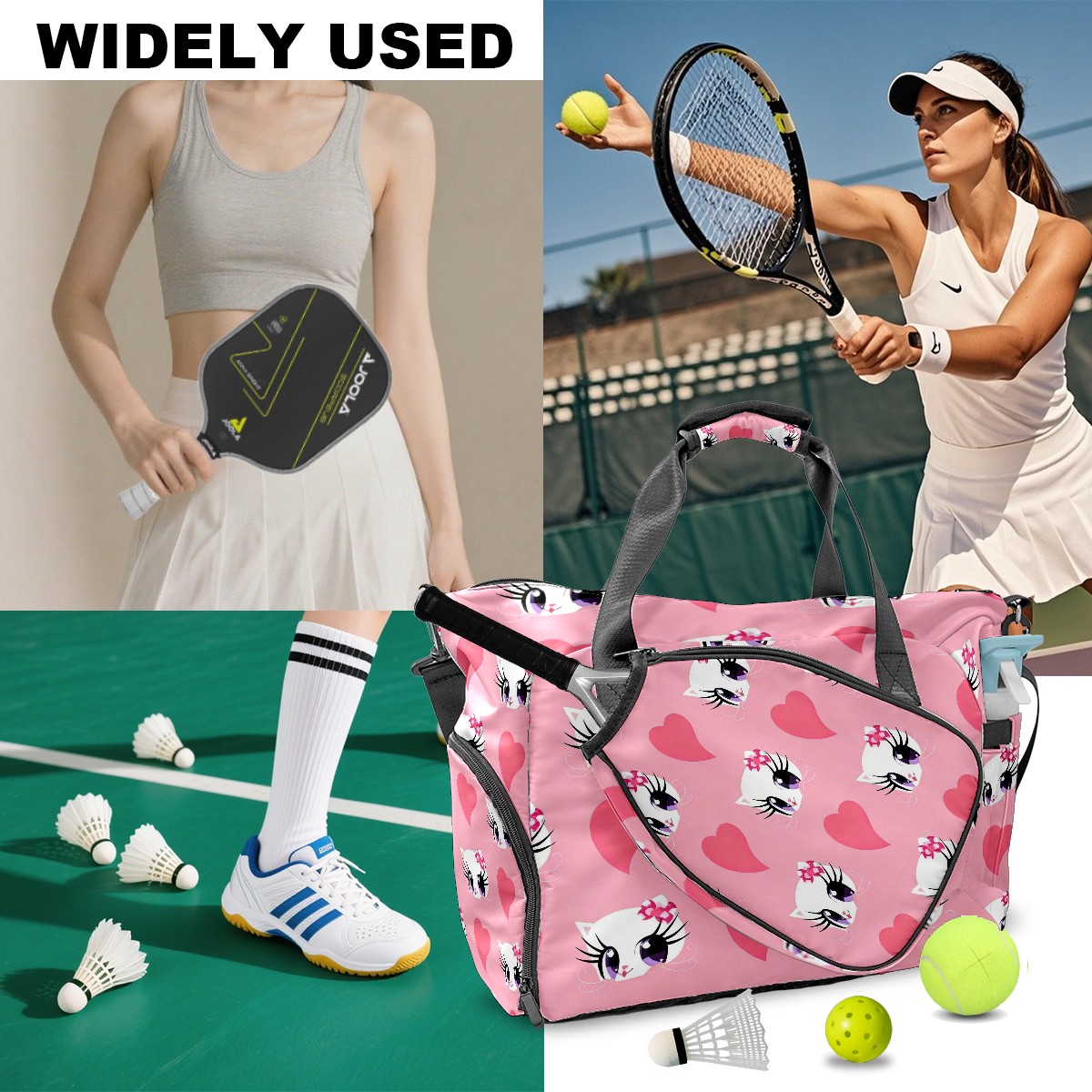 Pickleball Tote Bag Carryall for Paddles Balls and Accessories, Portable Lightweight Gear Bag for Players(Cat Pink)