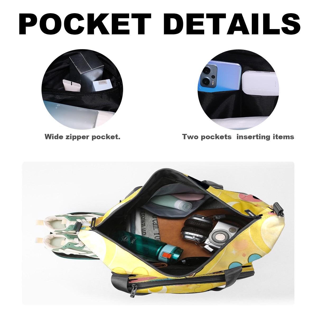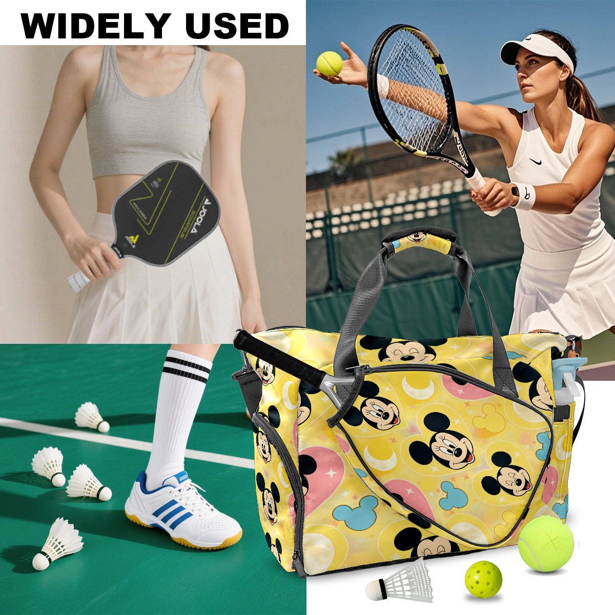 Pickleball Tote Bag Carryall for Paddles Balls and Accessories, Portable Lightweight Gear Bag for Players(Mouse Yellow)