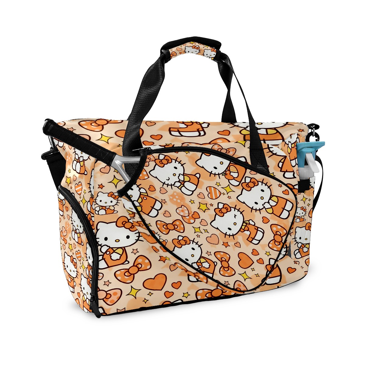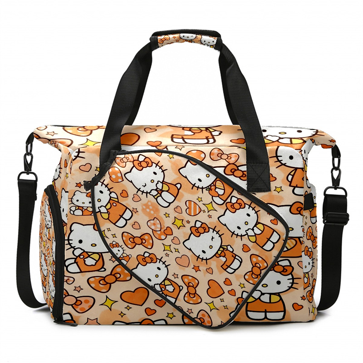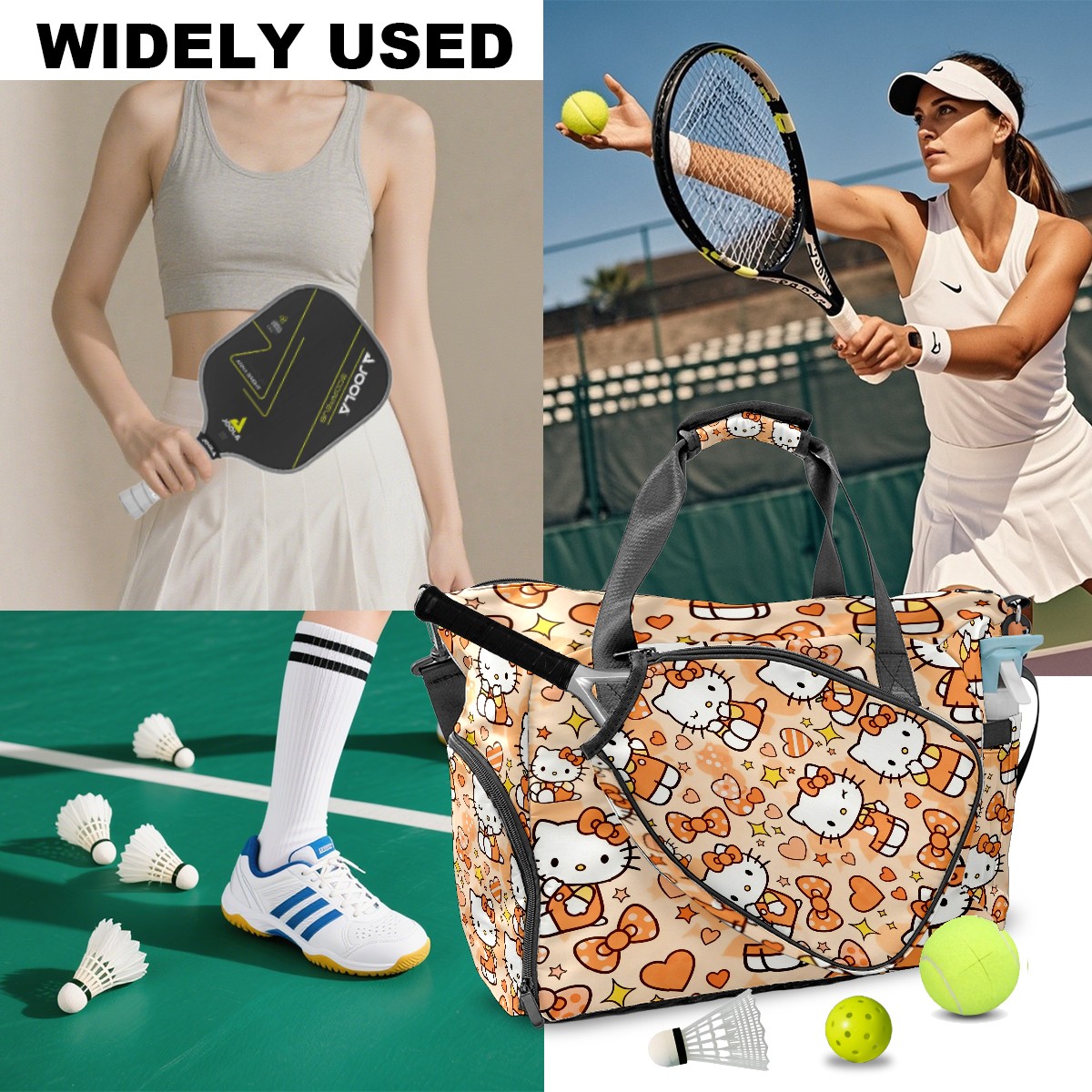 Pickleball Tote Bag Carryall for Paddles Balls and Accessories, Portable Lightweight Gear Bag for Players(Hello Kitty Orange)