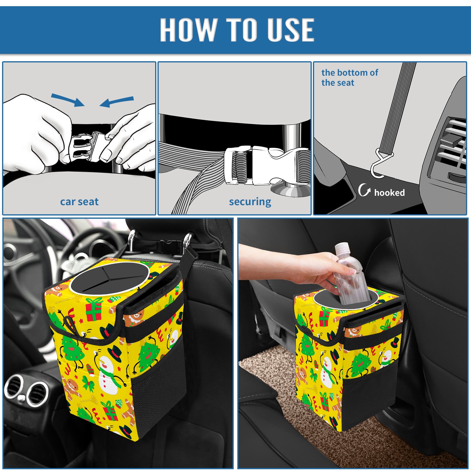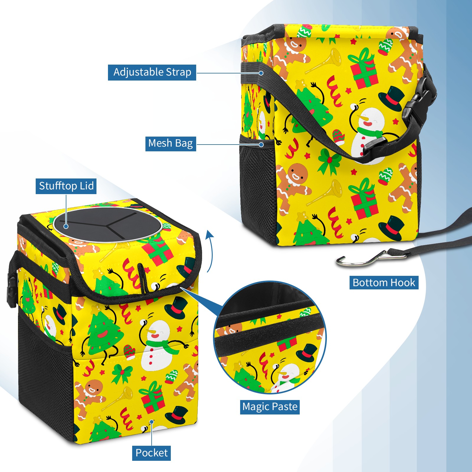 Car Garbage Can — Multi-functional, Lightweight Portable, Reusable Vehicle Trash Can, Waterproof with Sufficient Storage Capacity Funny Decoration Christmas Pattern