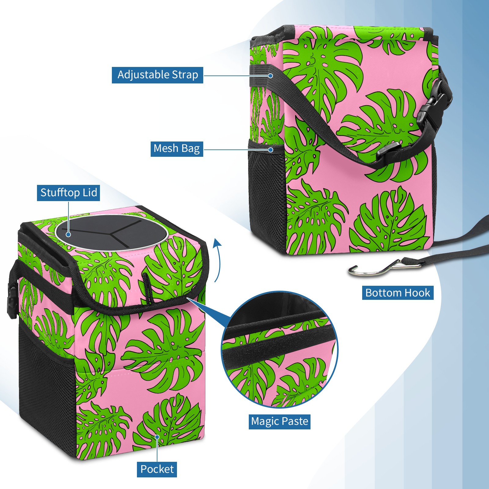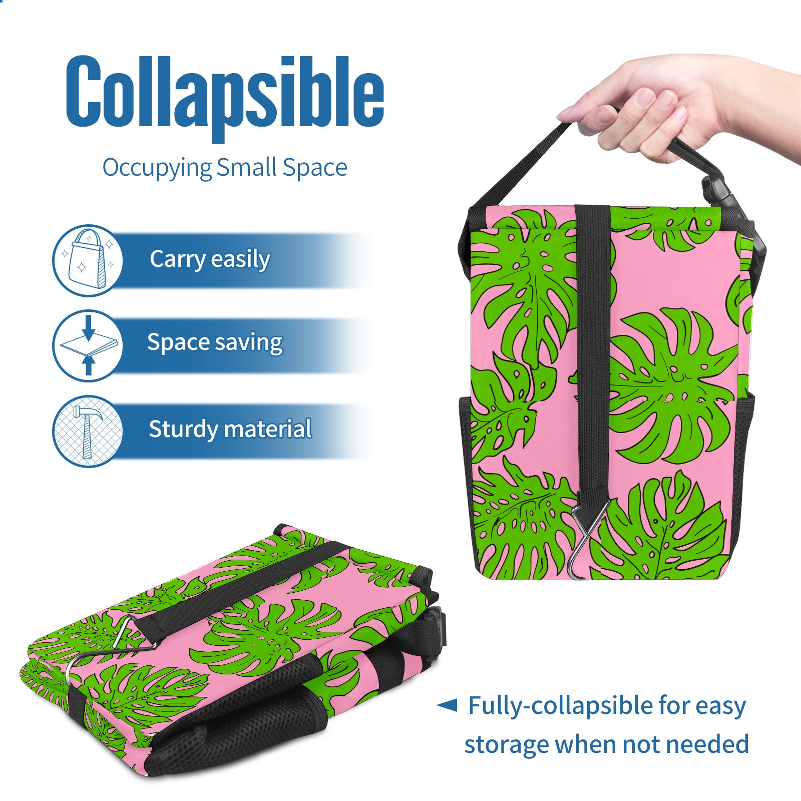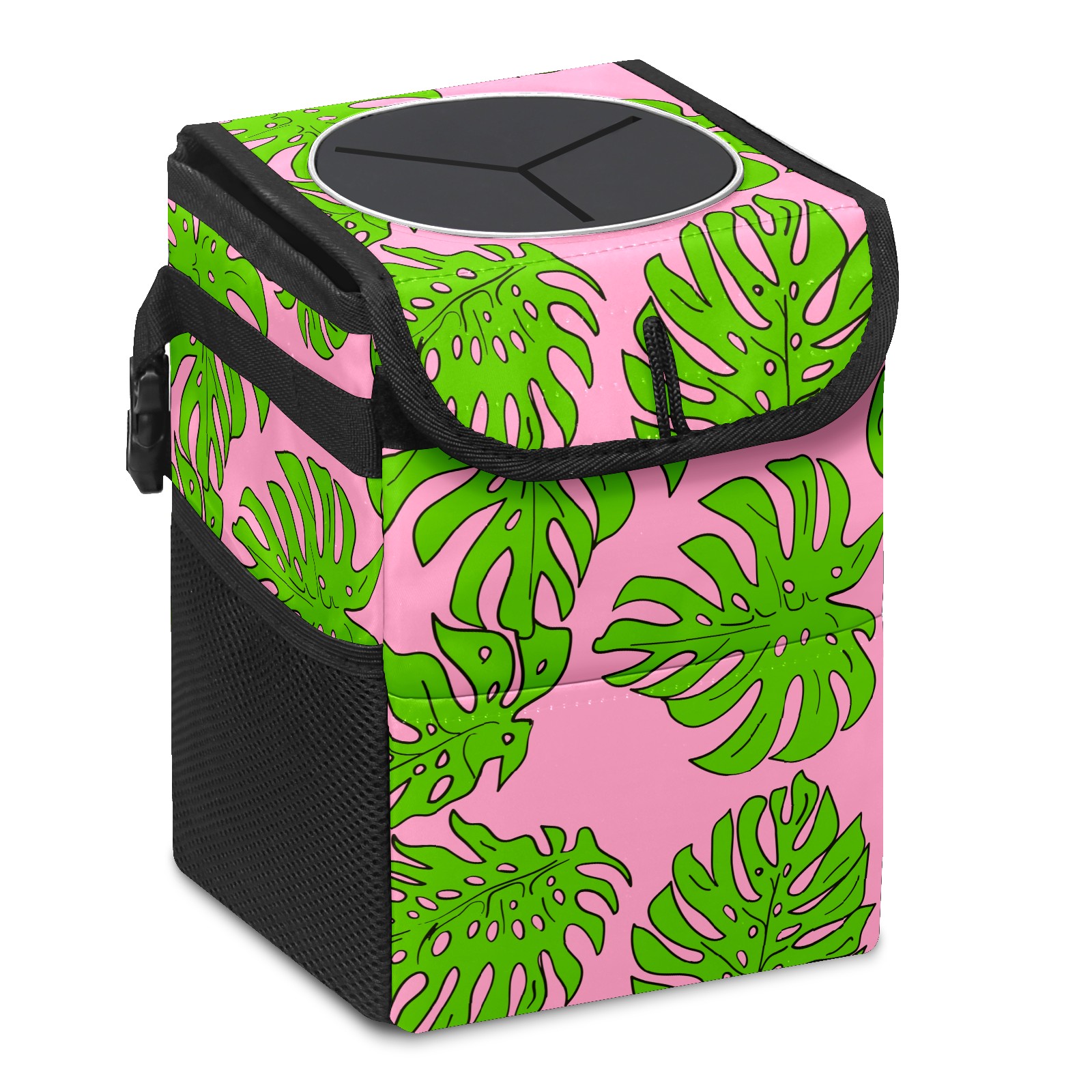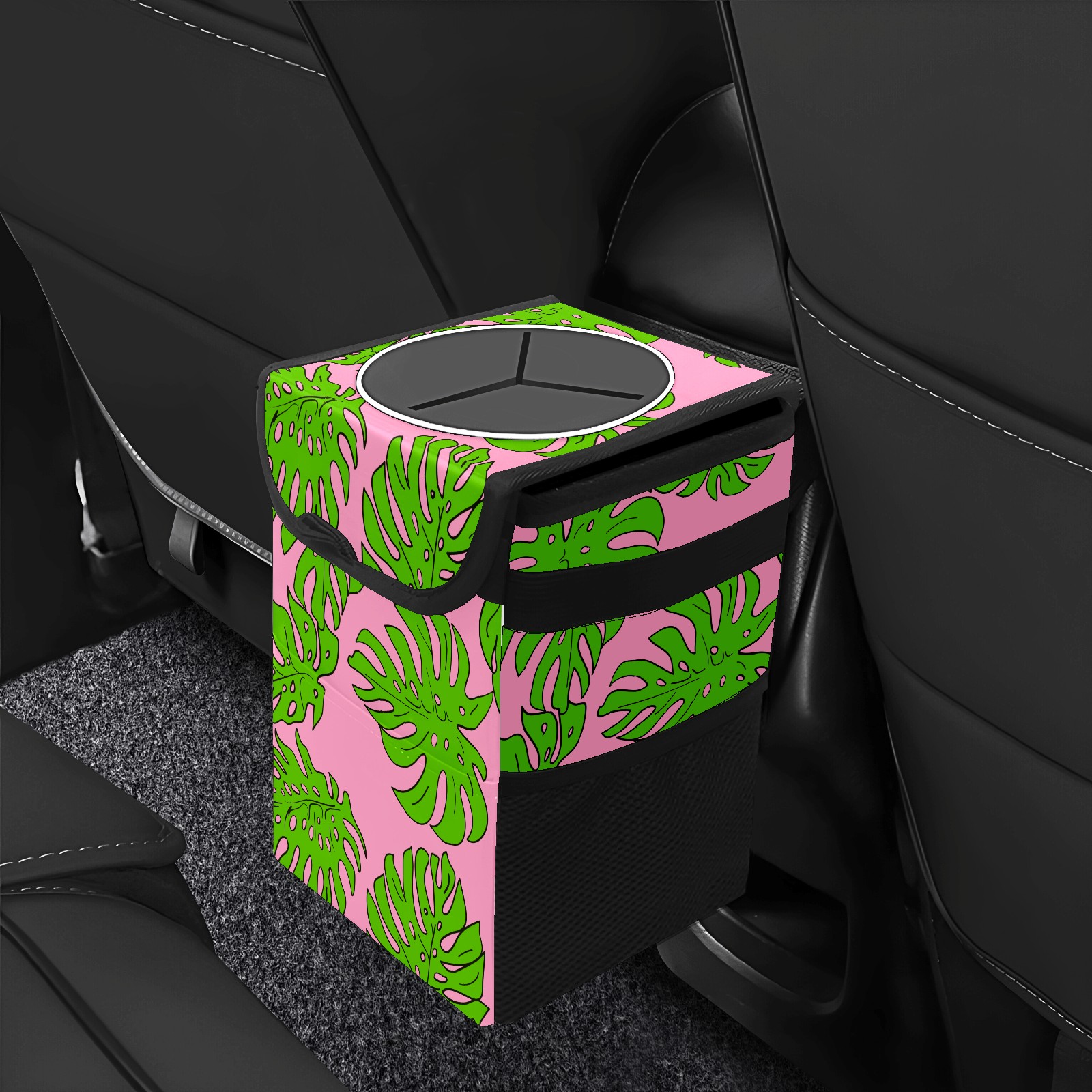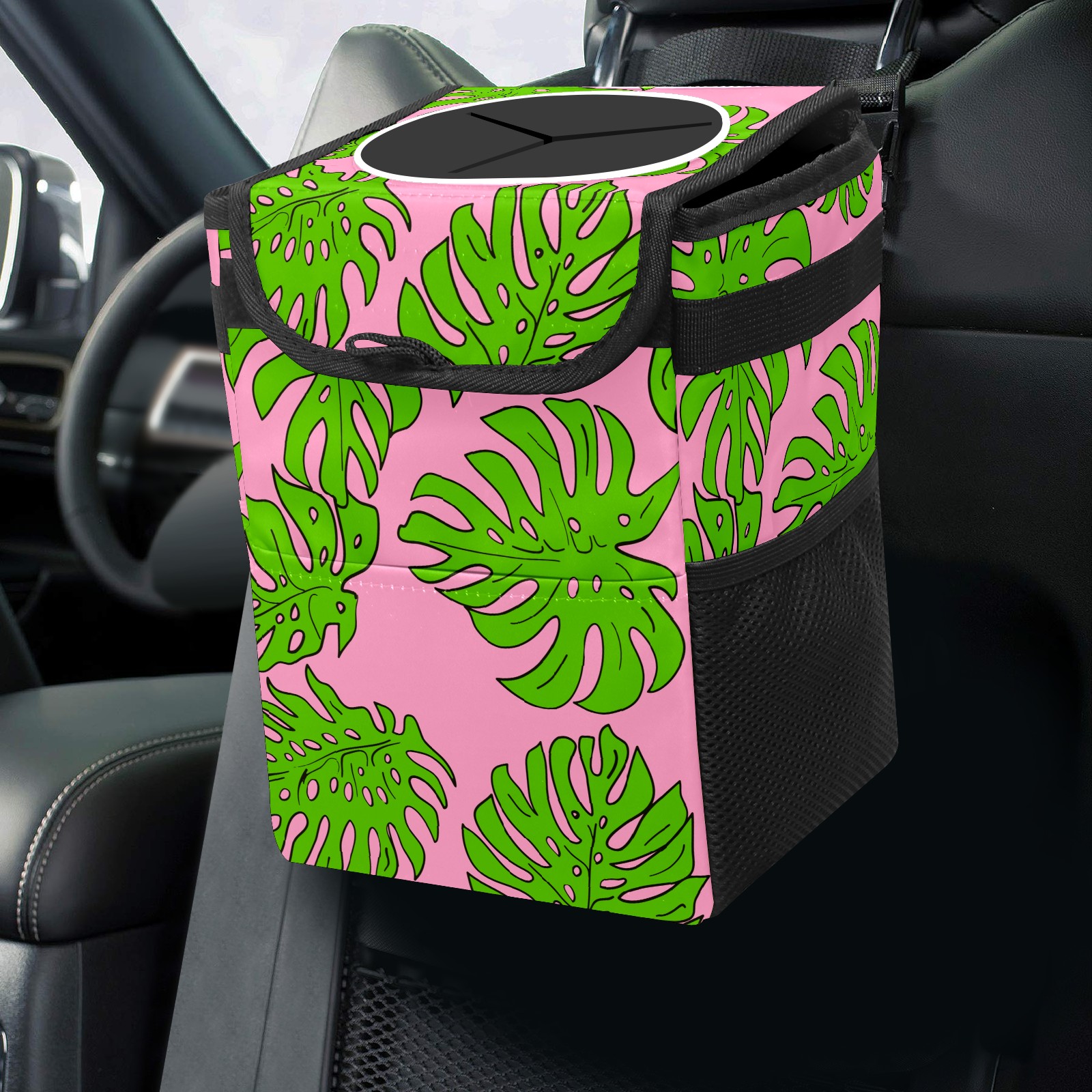 Car Garbage Can — Multi-functional, Lightweight Portable, Reusable Vehicle Trash Can, Waterproof with Sufficient Storage Capacity Tropical Leaves