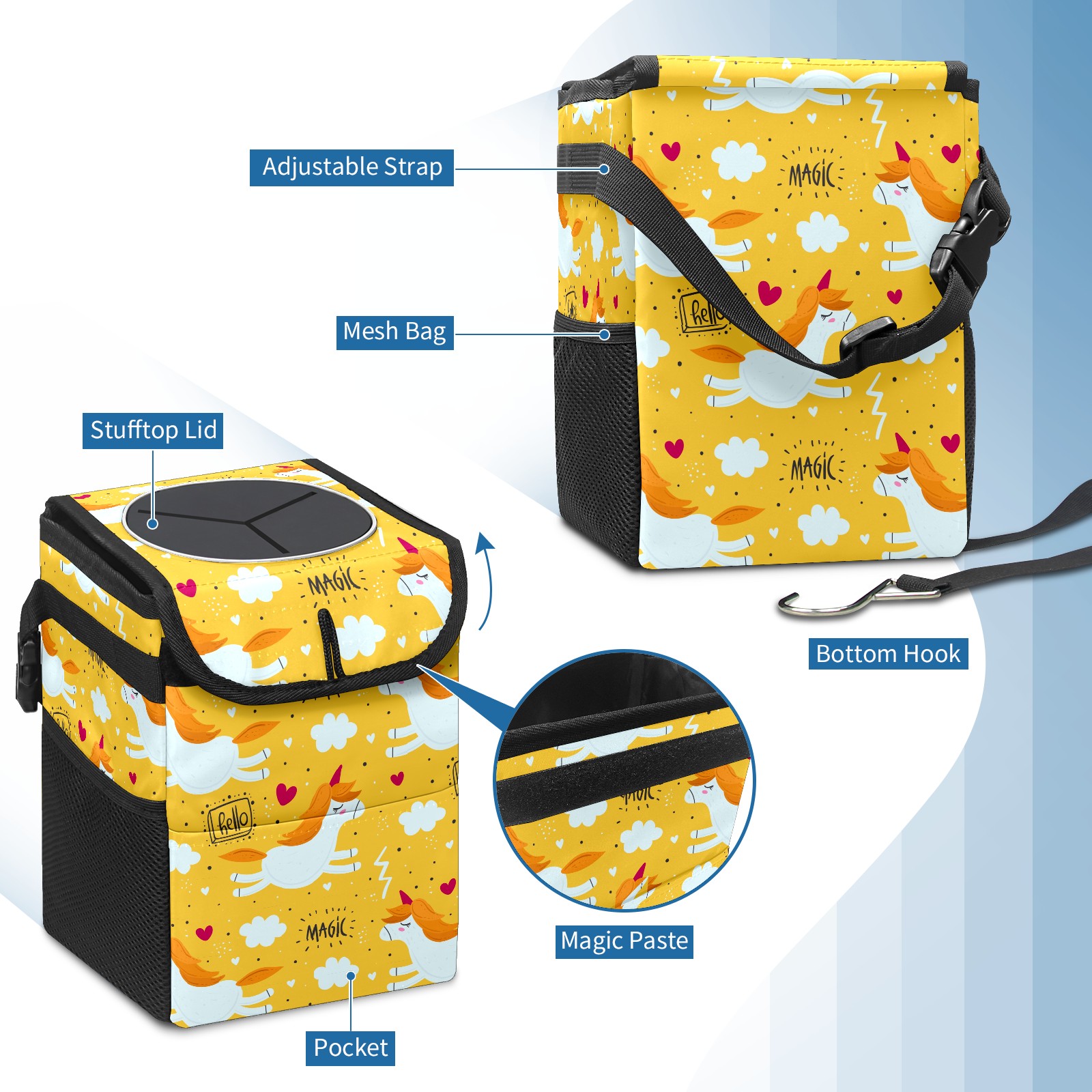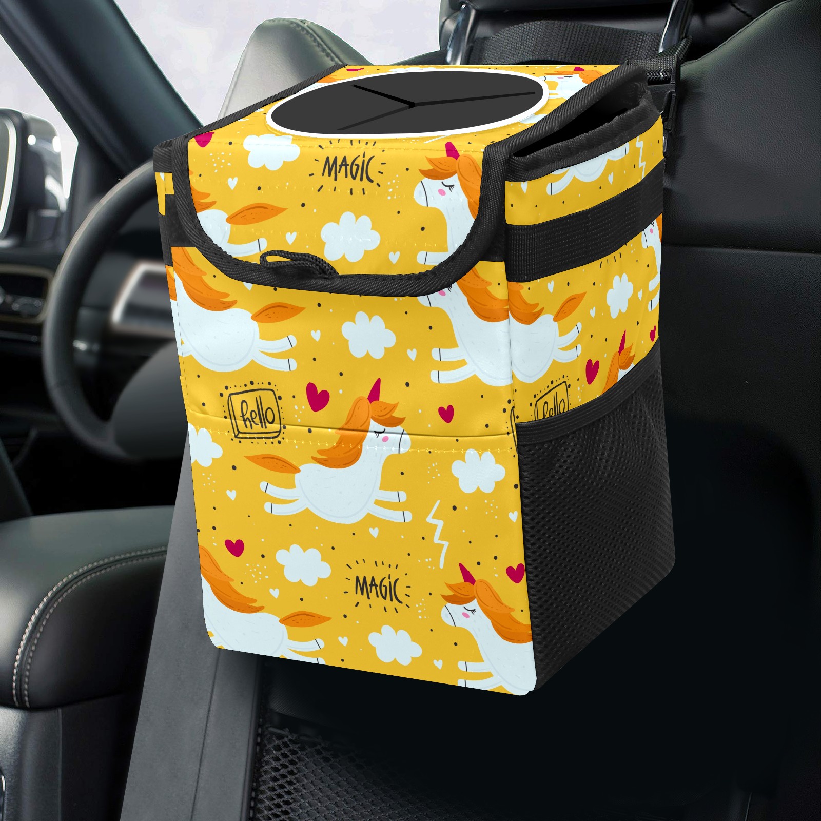 Car Garbage Can — Multi-functional, Lightweight Portable, Reusable Vehicle Trash Can, Waterproof with Sufficient Storage Capacity Hand Drawn Unicorn