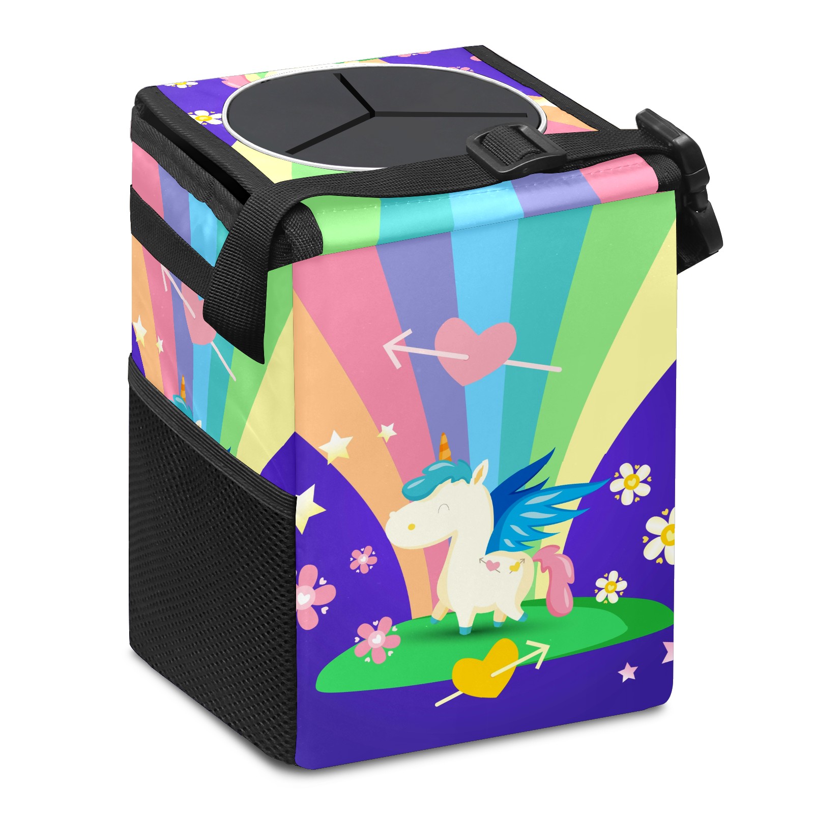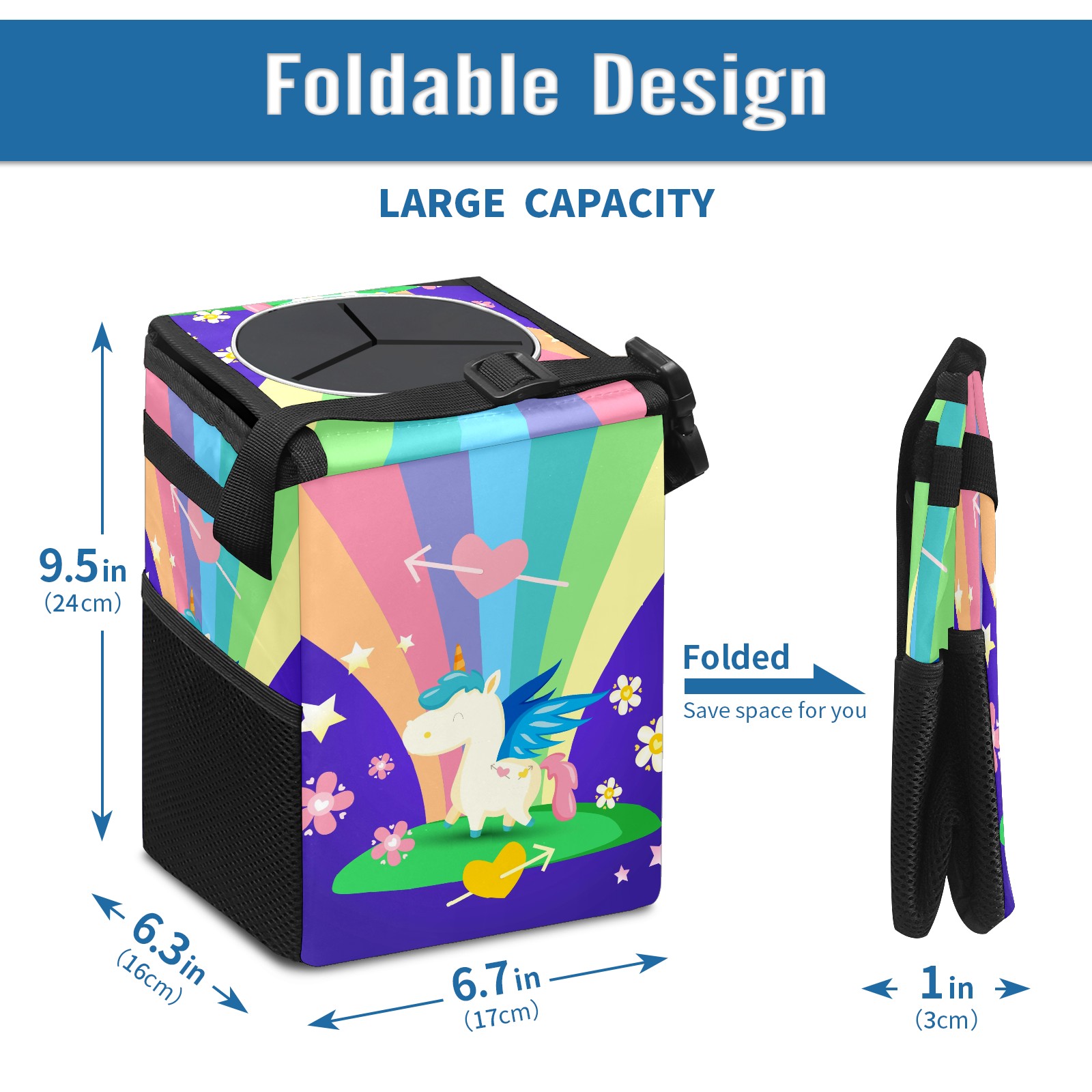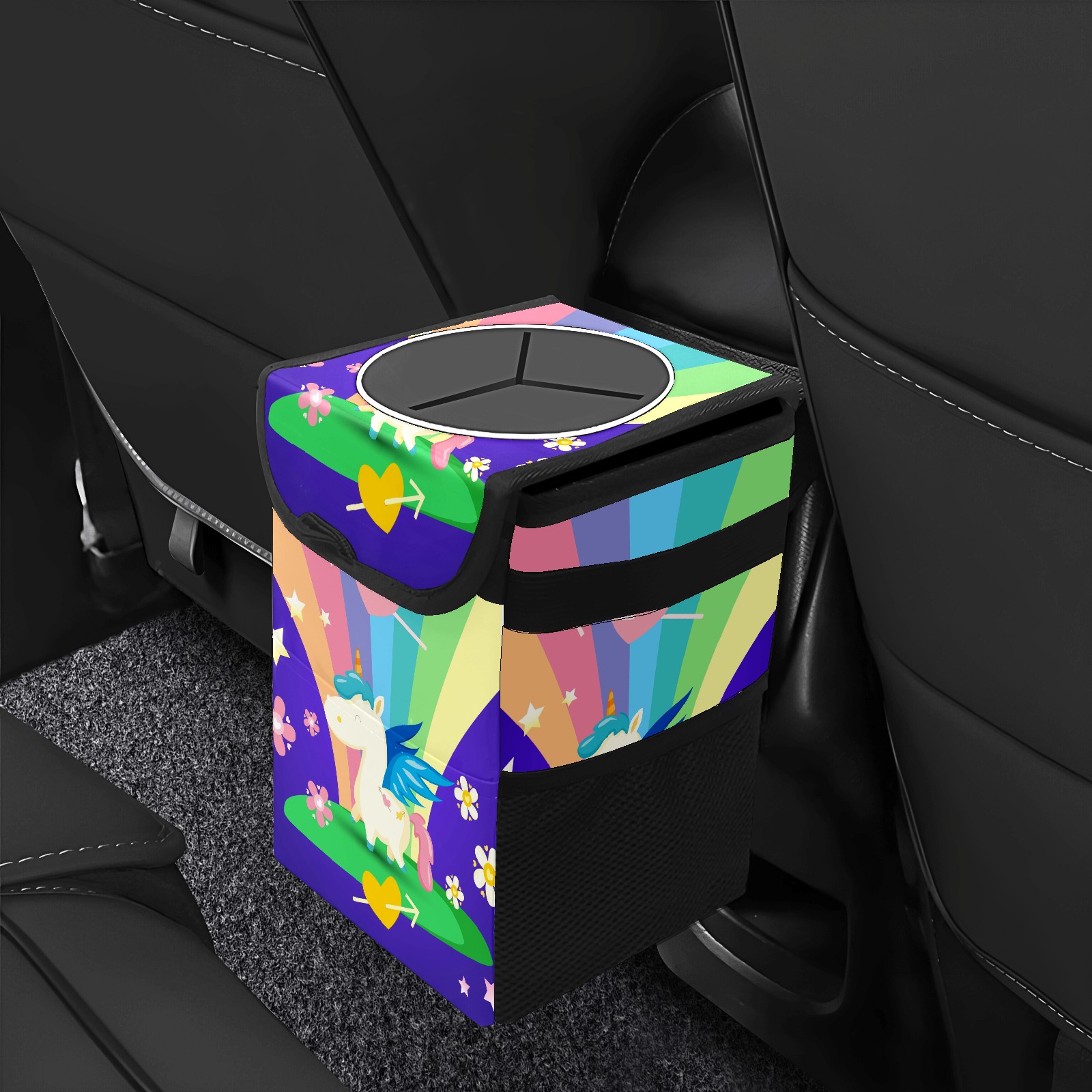 Car Garbage Can — Multi-functional, Lightweight Portable, Reusable Vehicle Trash Can, Waterproof with Sufficient Storage Capacity Happy Unicorn Rainbow