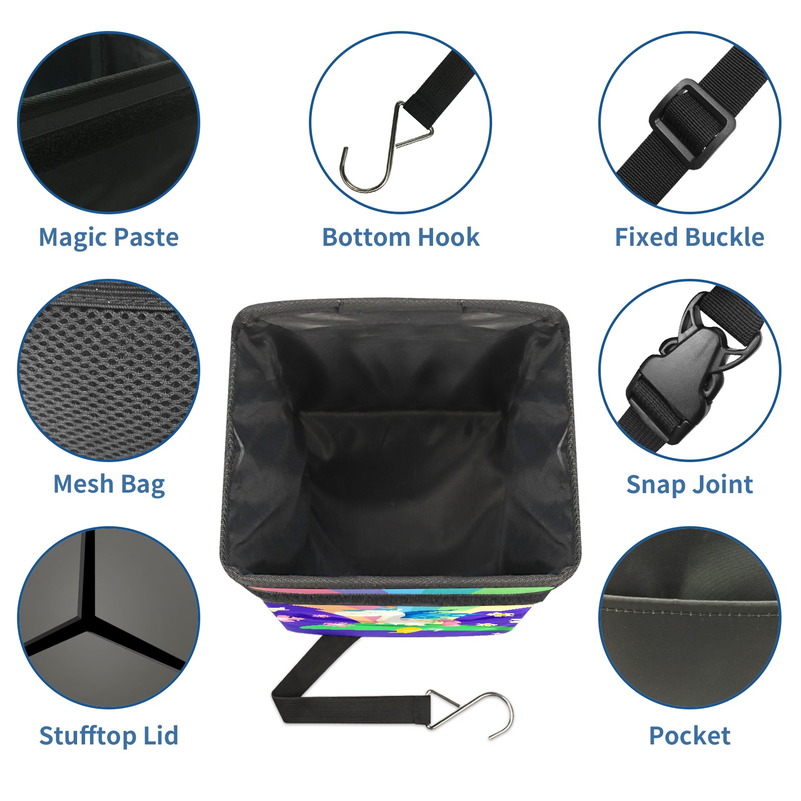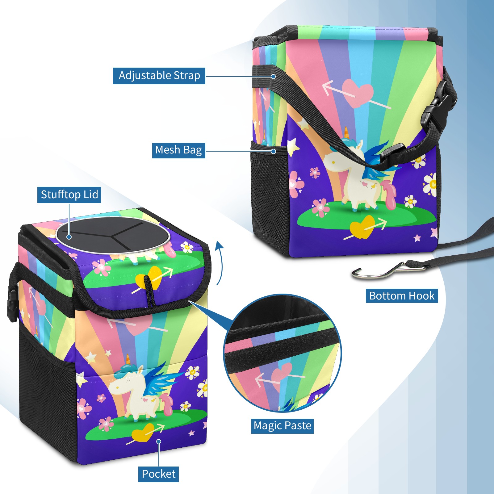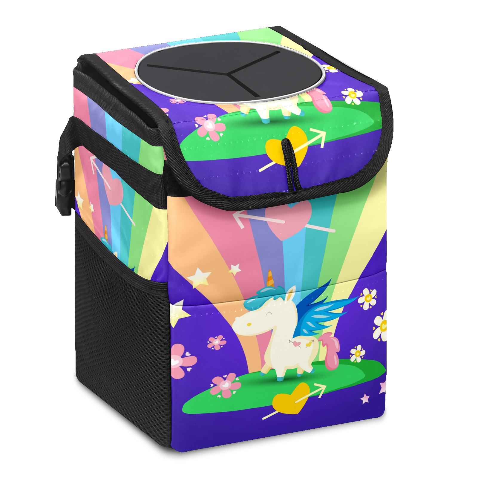 Car Garbage Can — Multi-functional, Lightweight Portable, Reusable Vehicle Trash Can, Waterproof with Sufficient Storage Capacity Happy Unicorn Rainbow