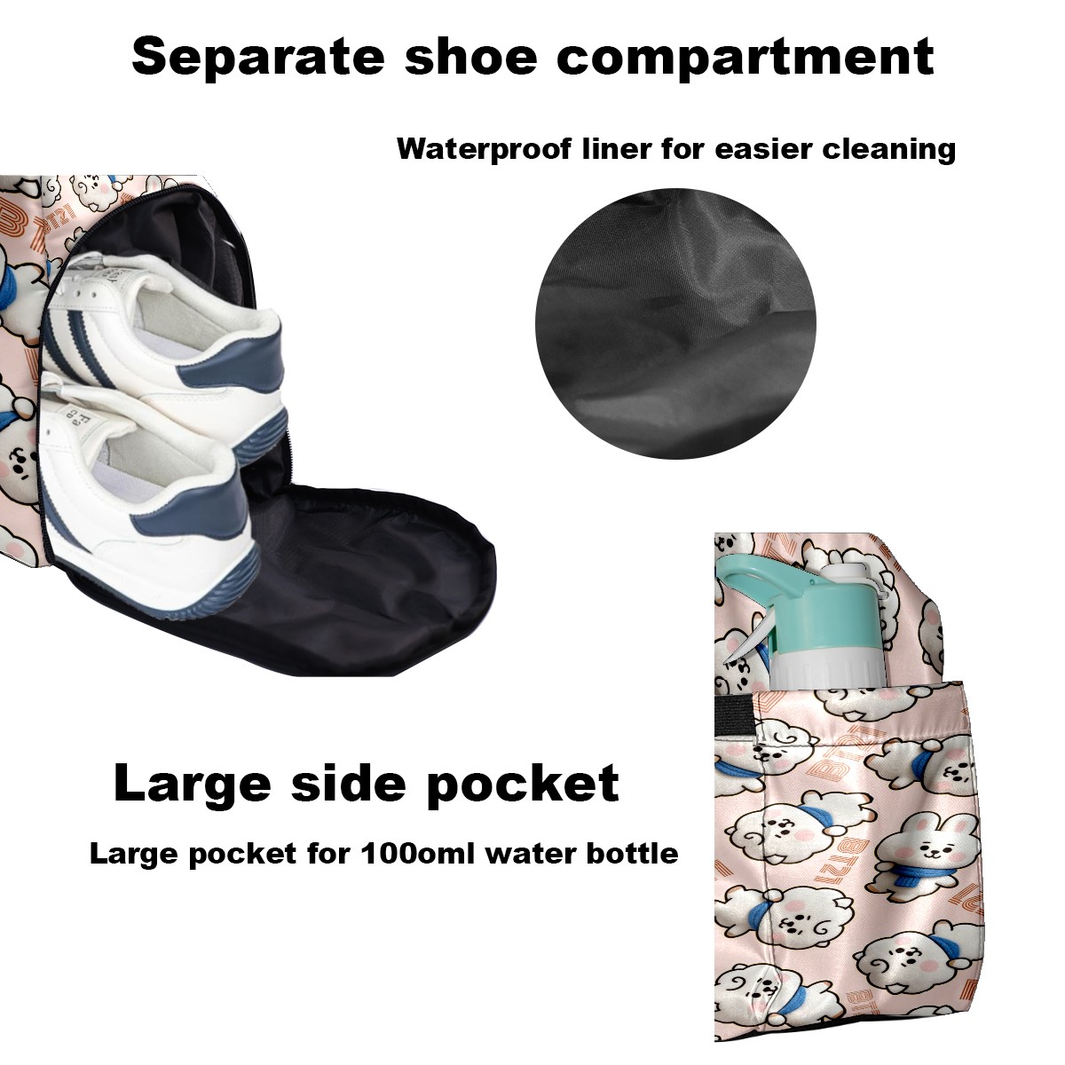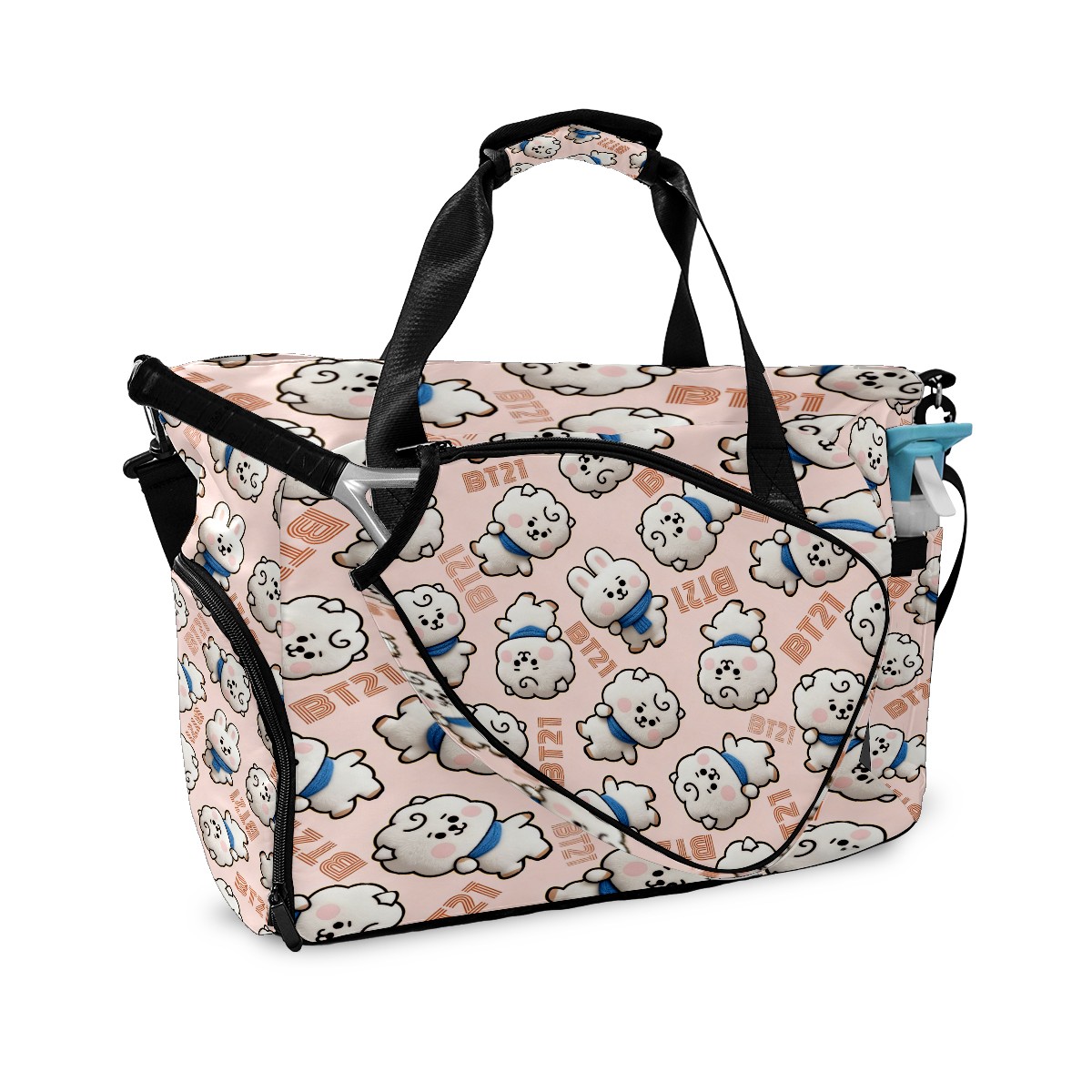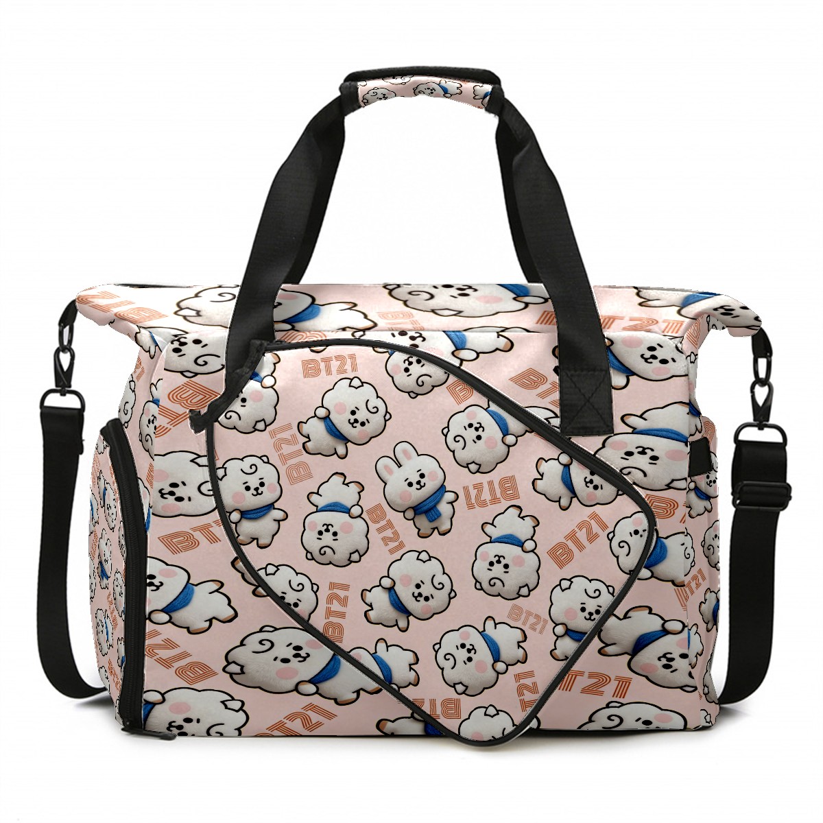 Pickleball Tote Bag Carryall for Paddles Balls and Accessories, Portable Lightweight Gear Bag for Players(Blush Puppies)