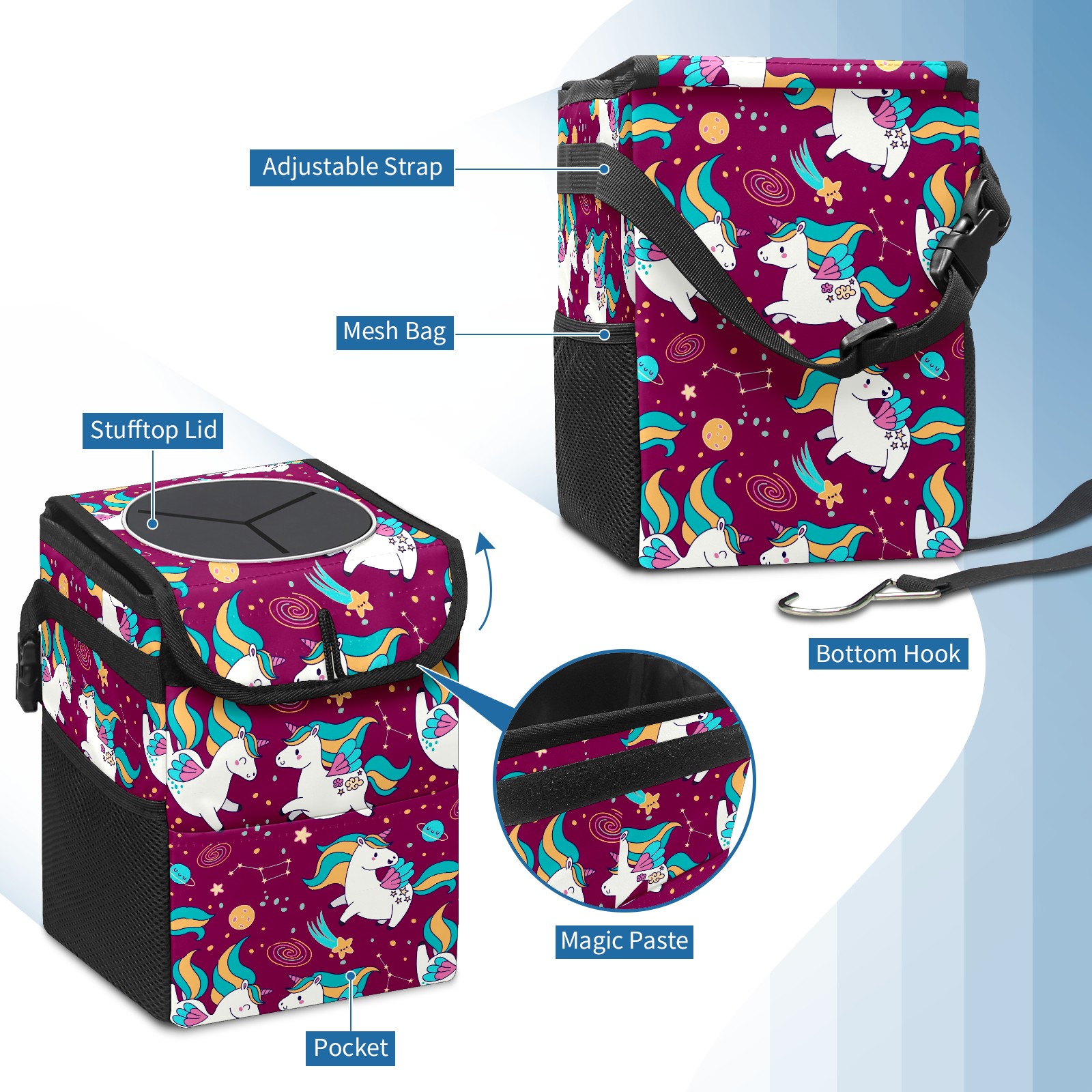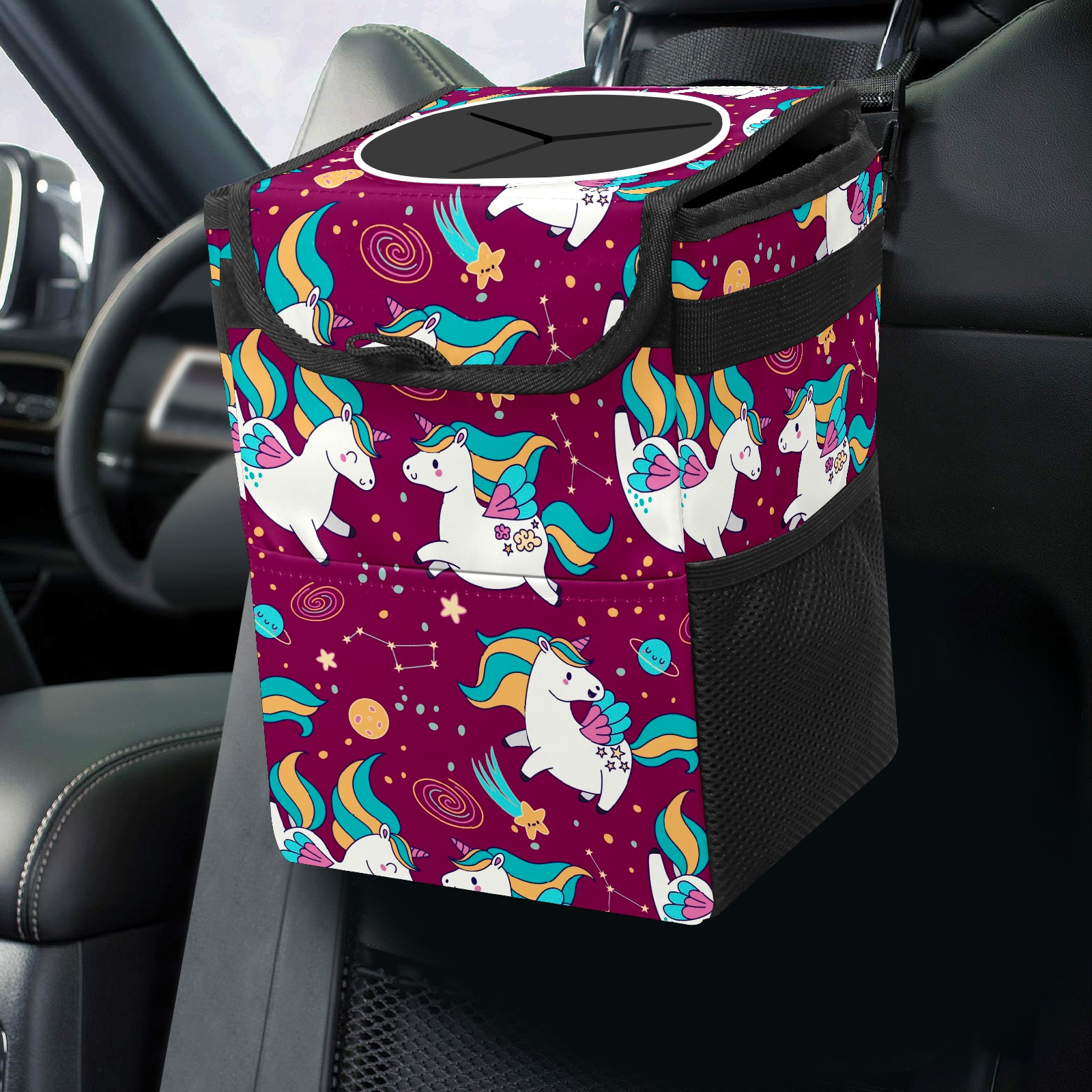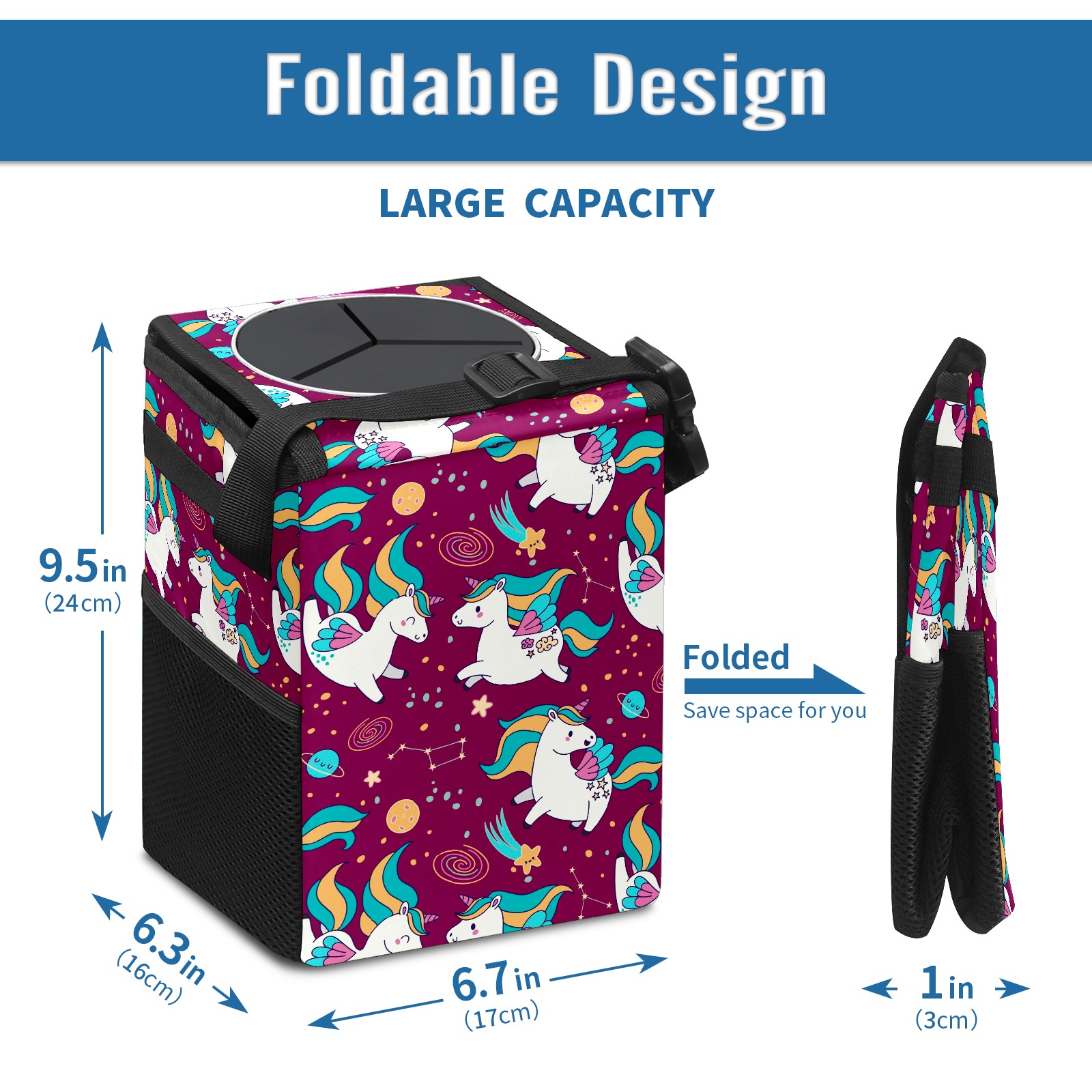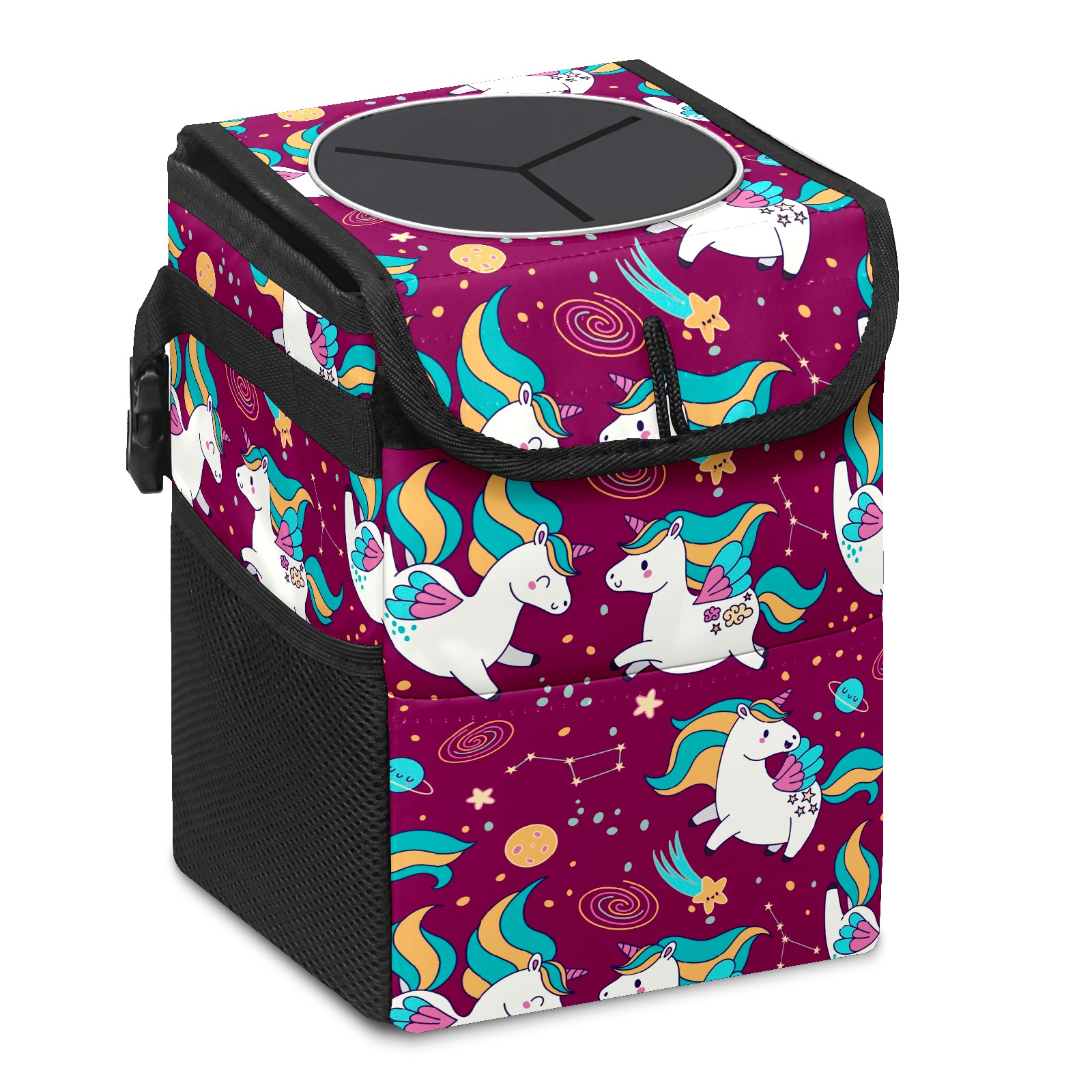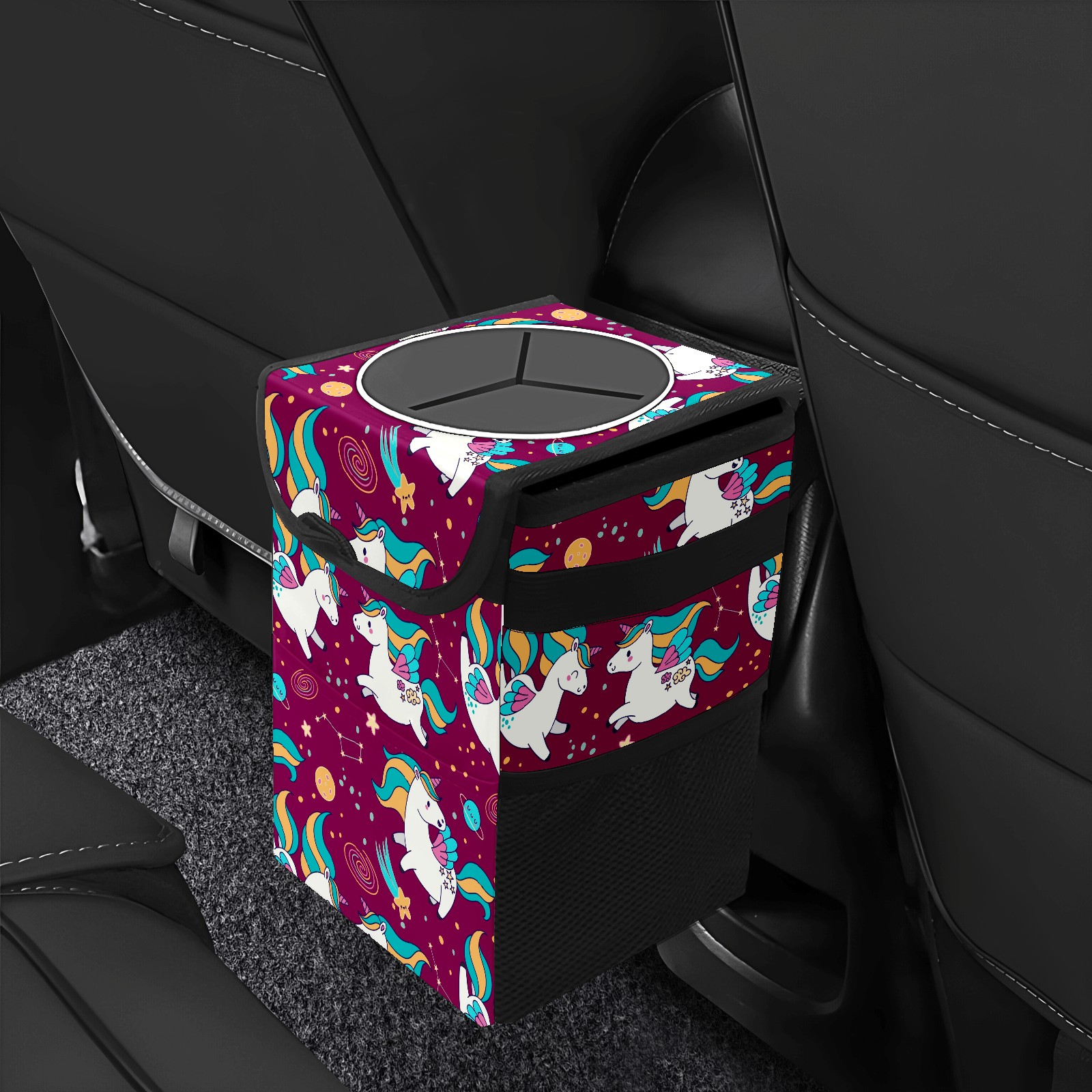 Car Garbage Can — Multi-functional, Lightweight Portable, Reusable Vehicle Trash Can, Waterproof with Sufficient Storage Capacity Hand Drawn Unicorn Pattern