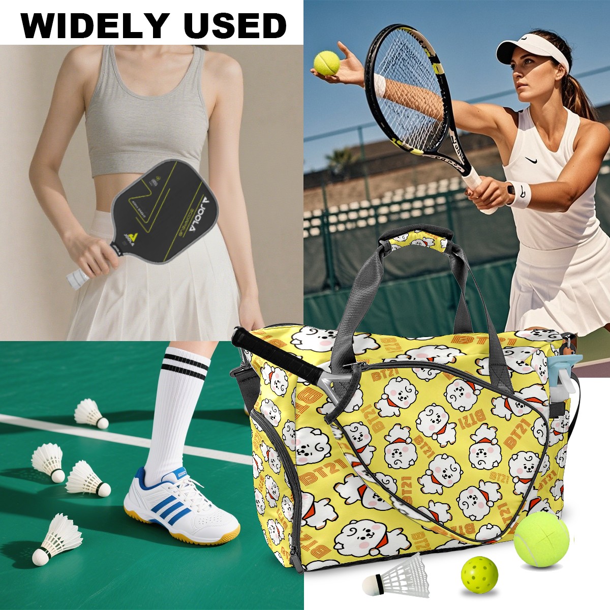 Pickleball Tote Bag Carryall for Paddles Balls and Accessories, Portable Lightweight Gear Bag for Players(Yellow Puppies)