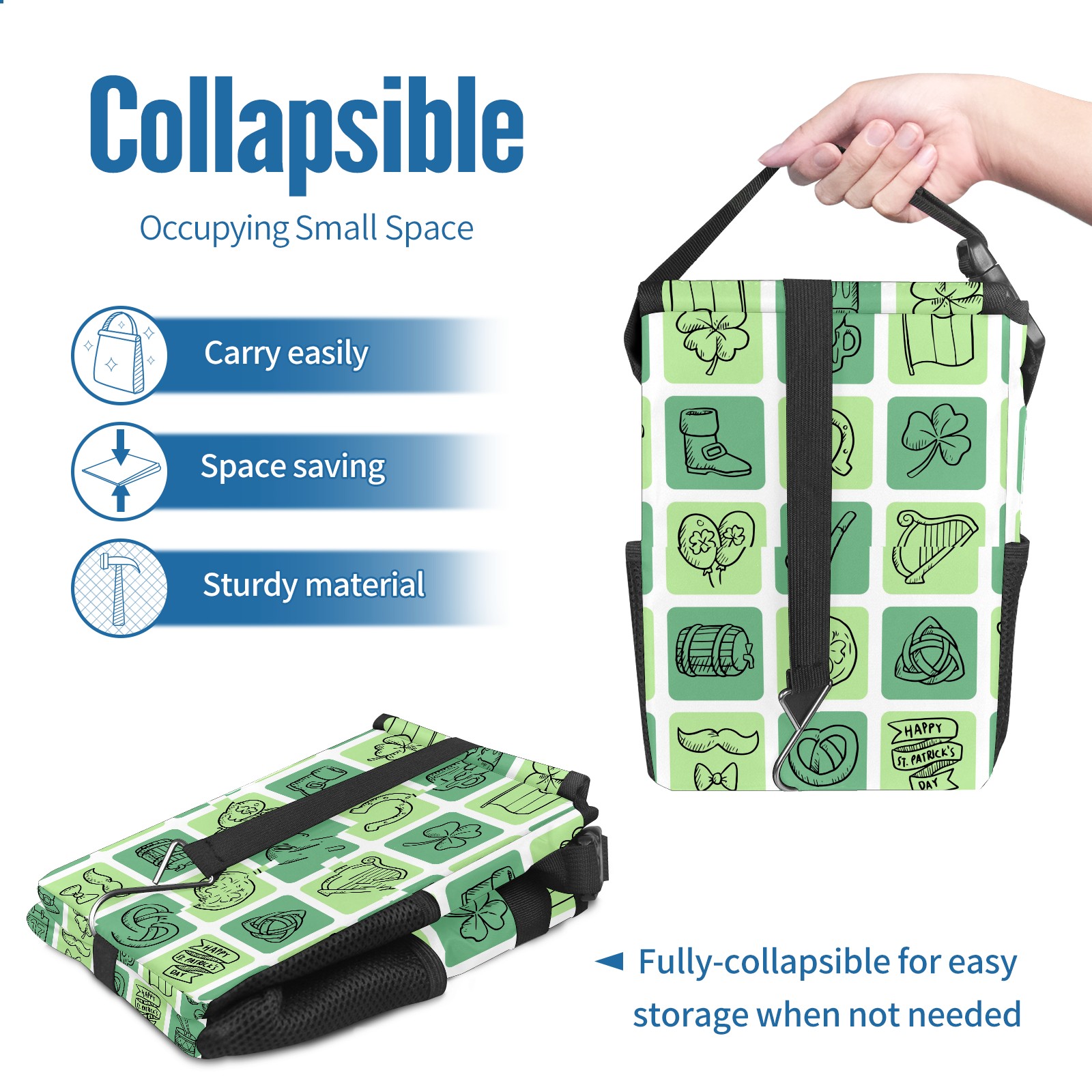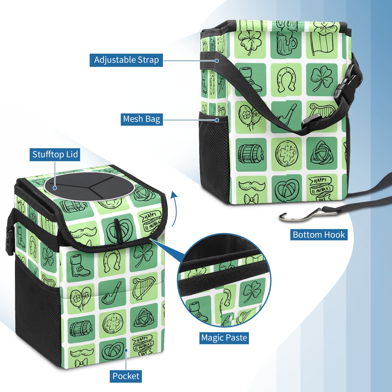Car Garbage Can — Multi-functional, Lightweight Portable, Reusable Vehicle Trash Can, Waterproof with Sufficient Storage Capacity St-patricks-day Icons Set