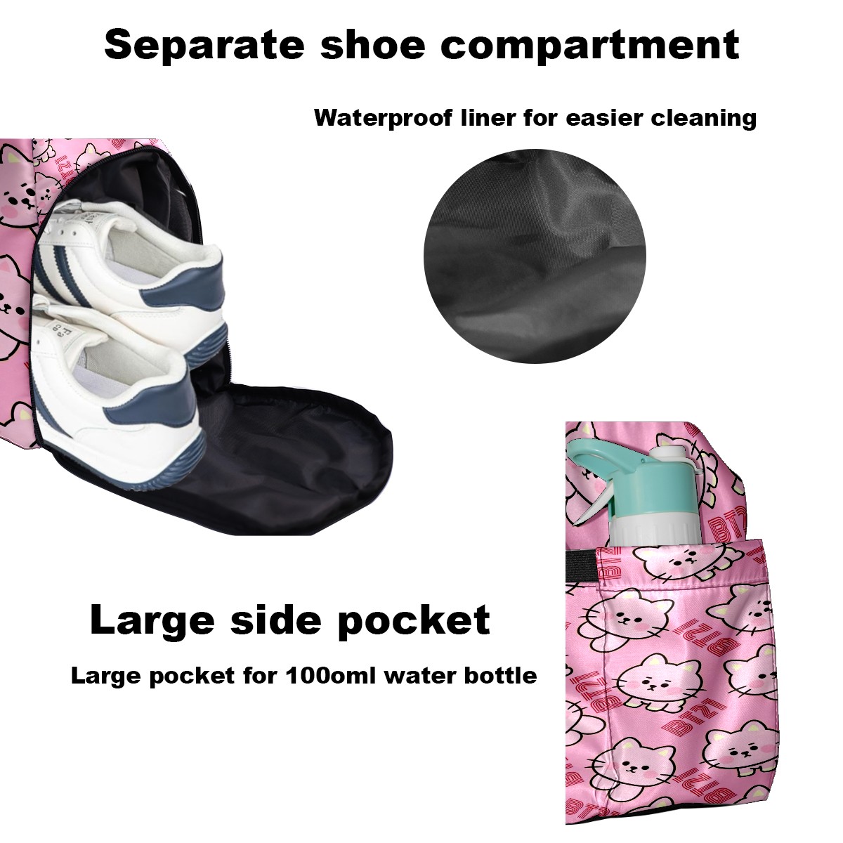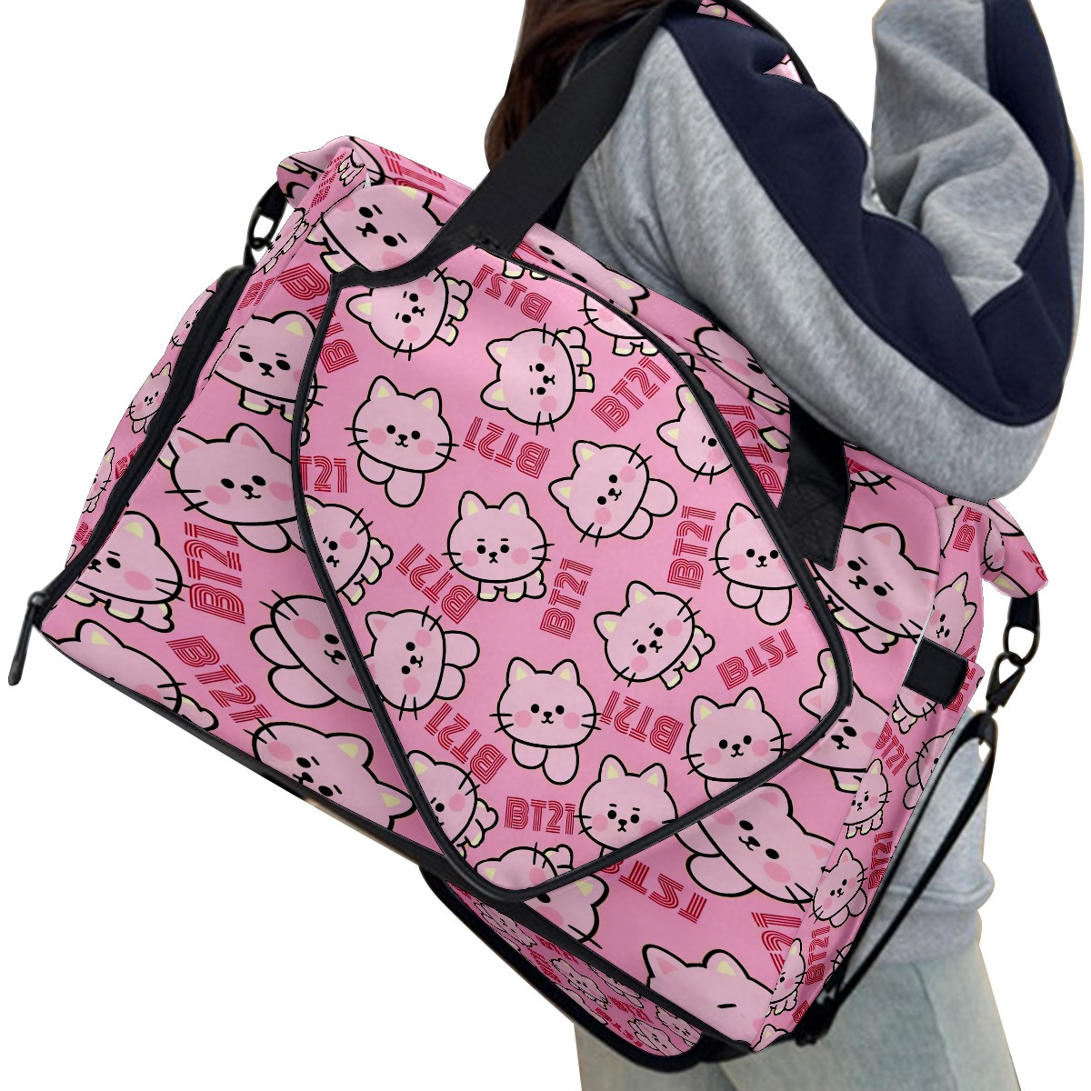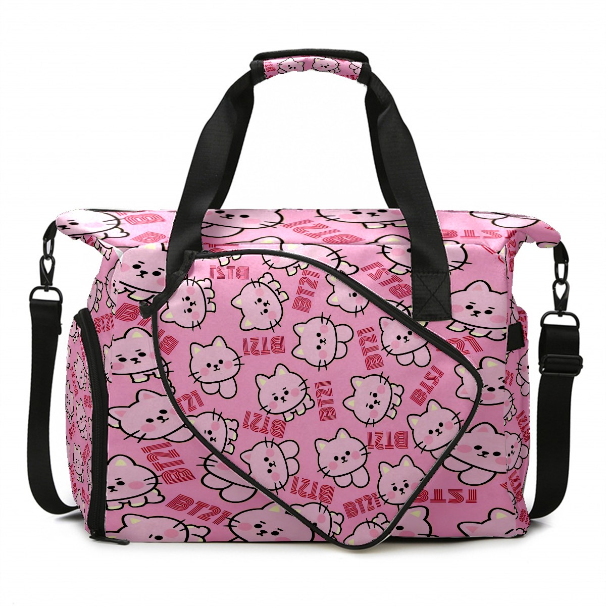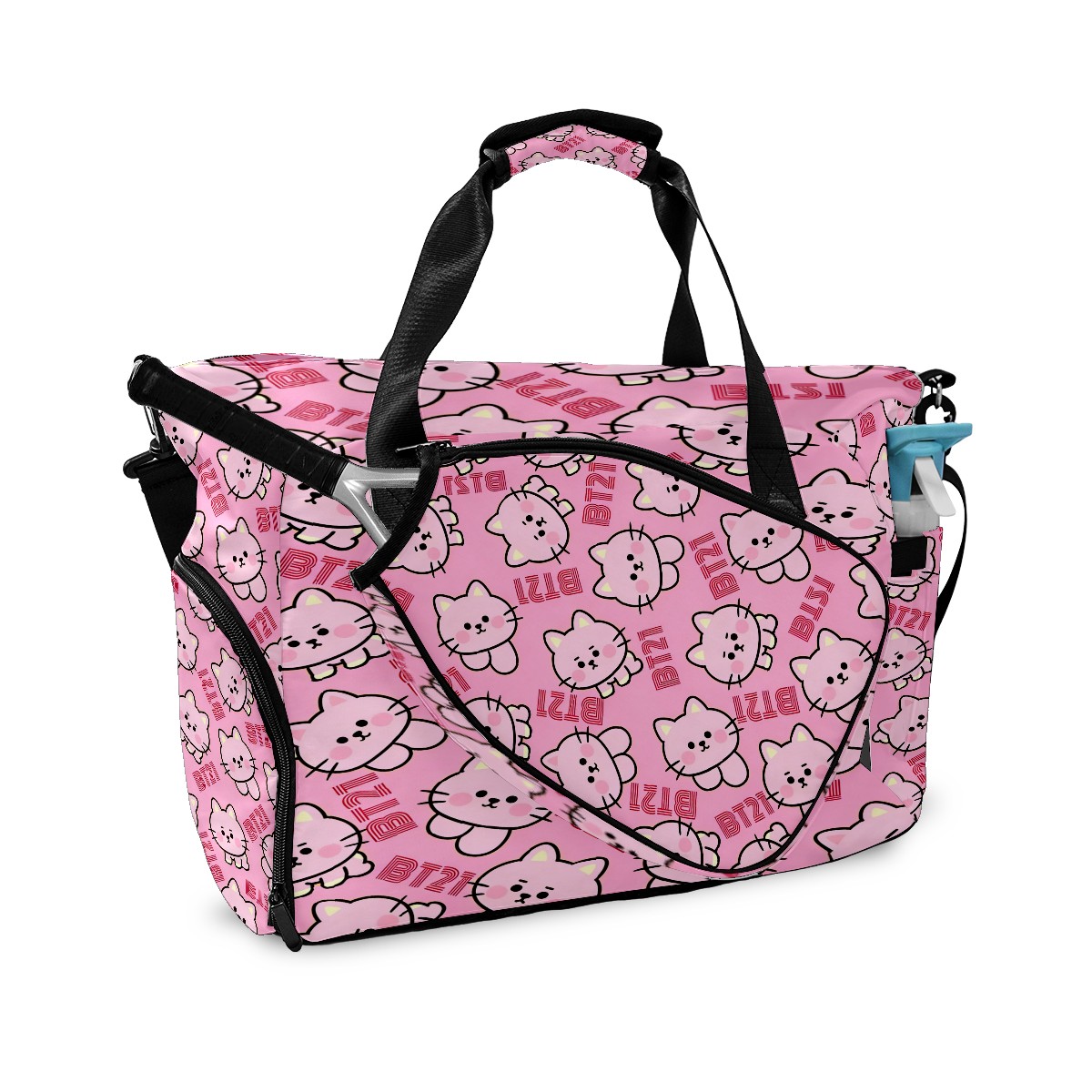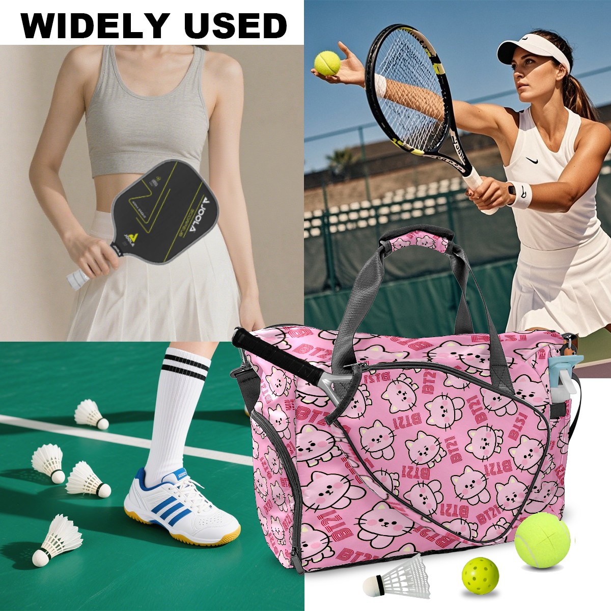 Pickleball Tote Bag Carryall for Paddles Balls and Accessories, Portable Lightweight Gear Bag for Players(Blush Kitties)