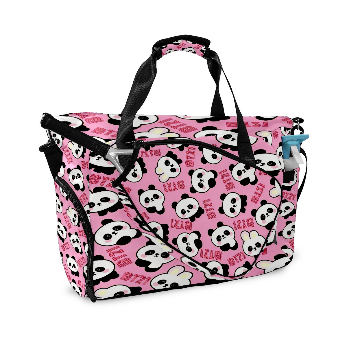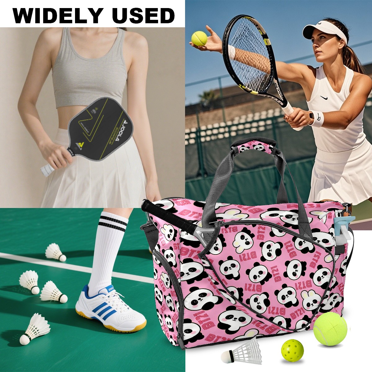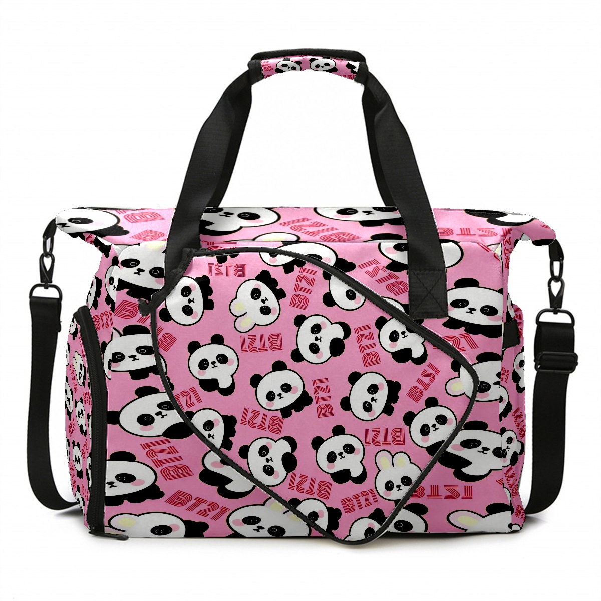 Pickleball Tote Bag Carryall for Paddles Balls and Accessories, Portable Lightweight Gear Bag for Players(Cute Pandas)