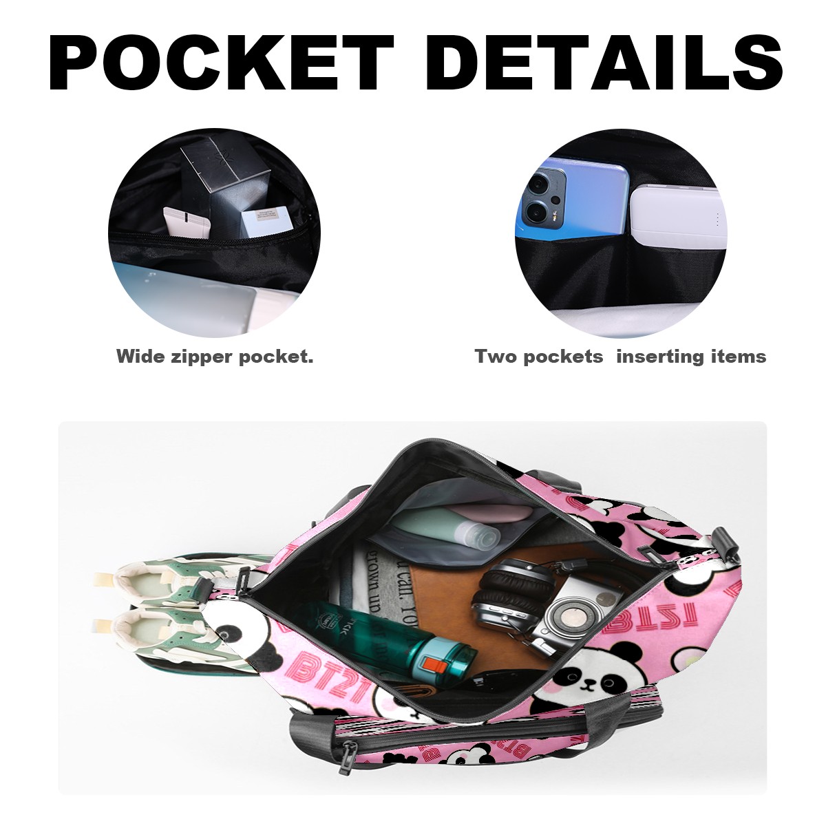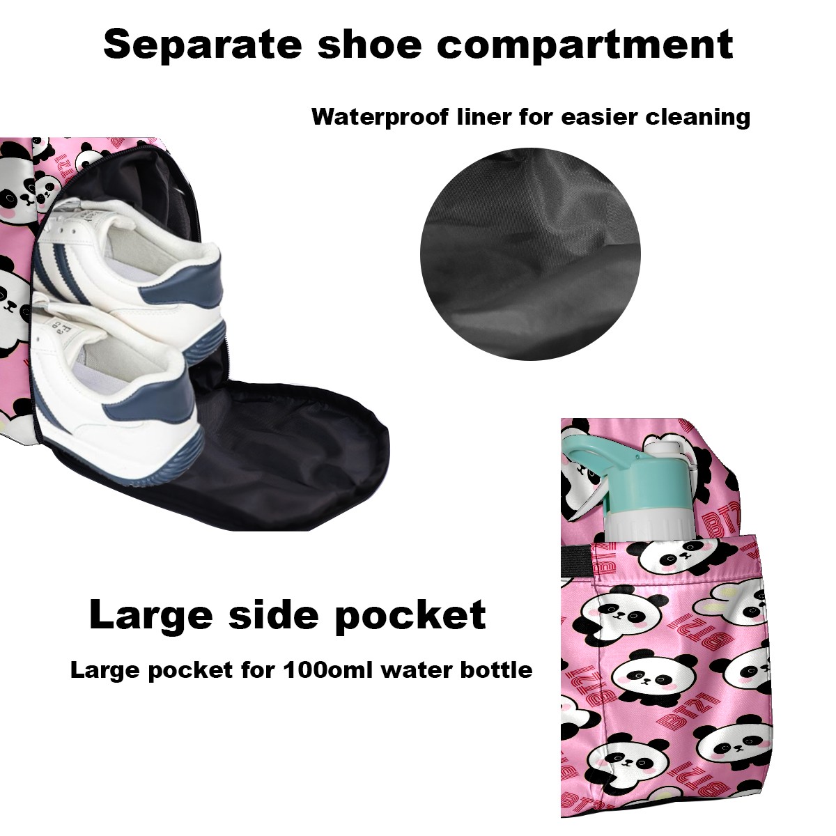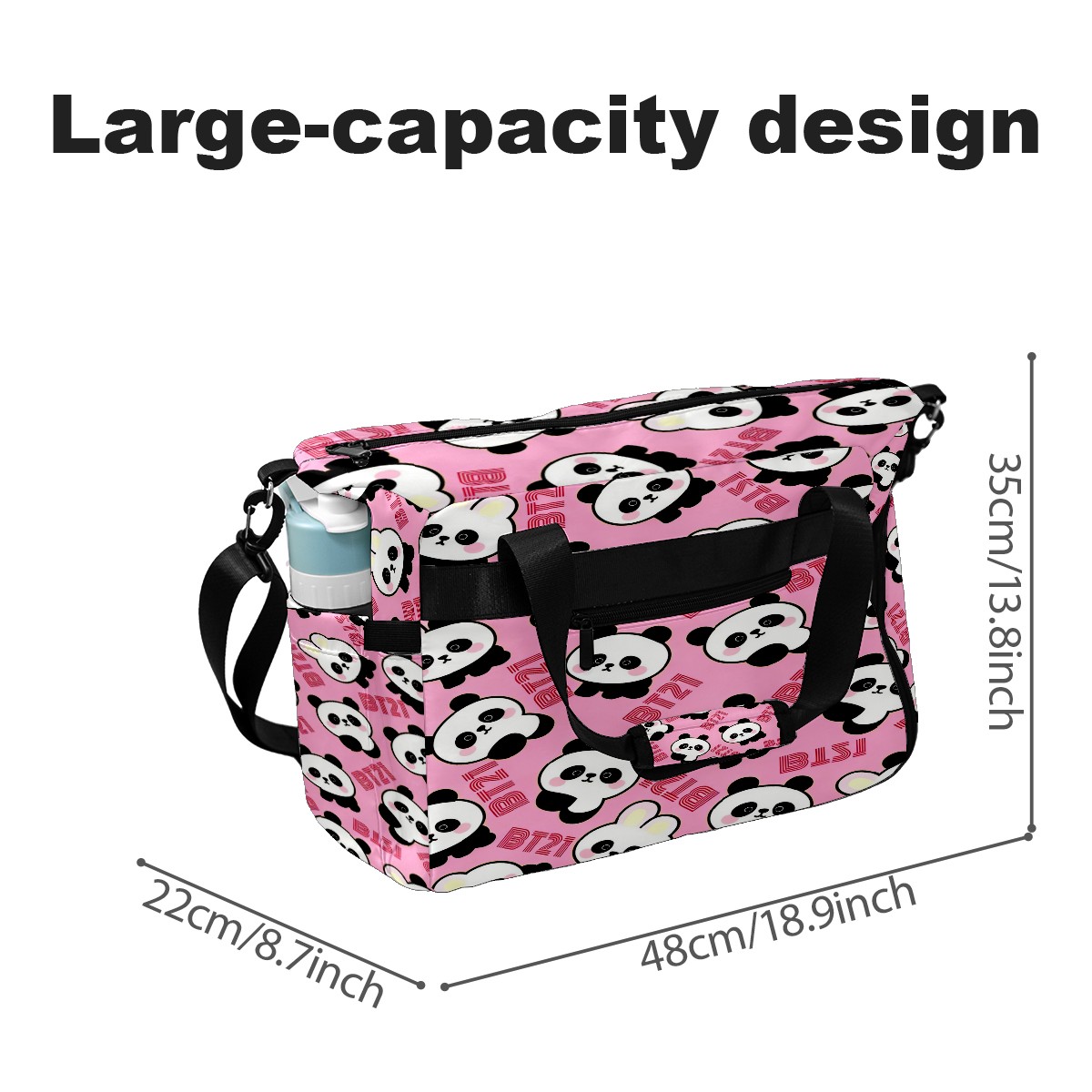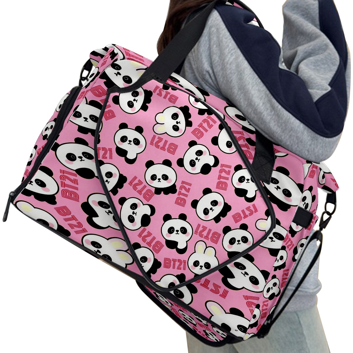 Pickleball Tote Bag Carryall for Paddles Balls and Accessories, Portable Lightweight Gear Bag for Players(Cute Pandas)