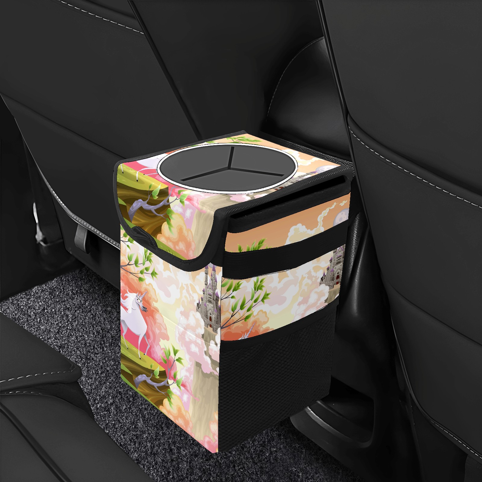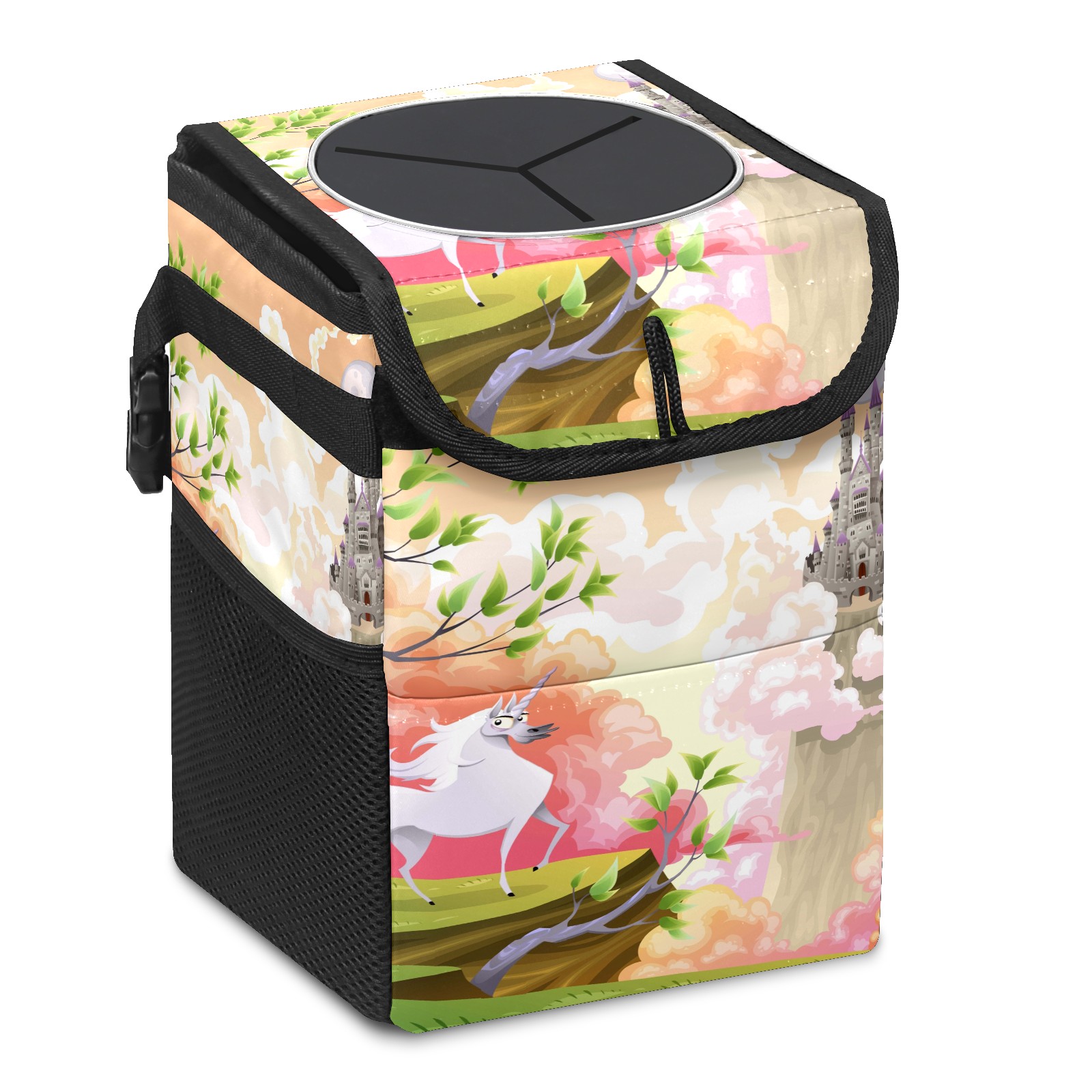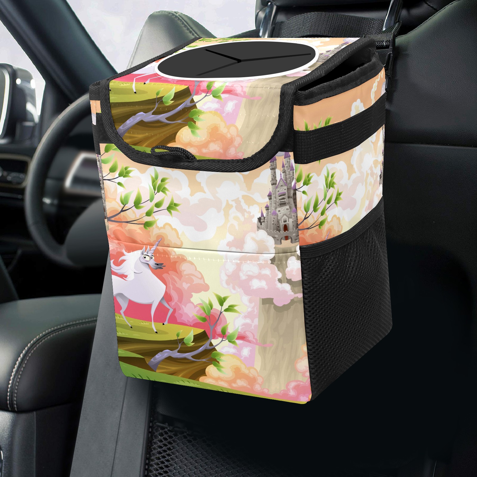 Car Garbage Can — Multi-functional, Lightweight Portable, Reusable Vehicle Trash Can, Waterproof with Sufficient Storage Capacity Fairy Tale Unicorn Building