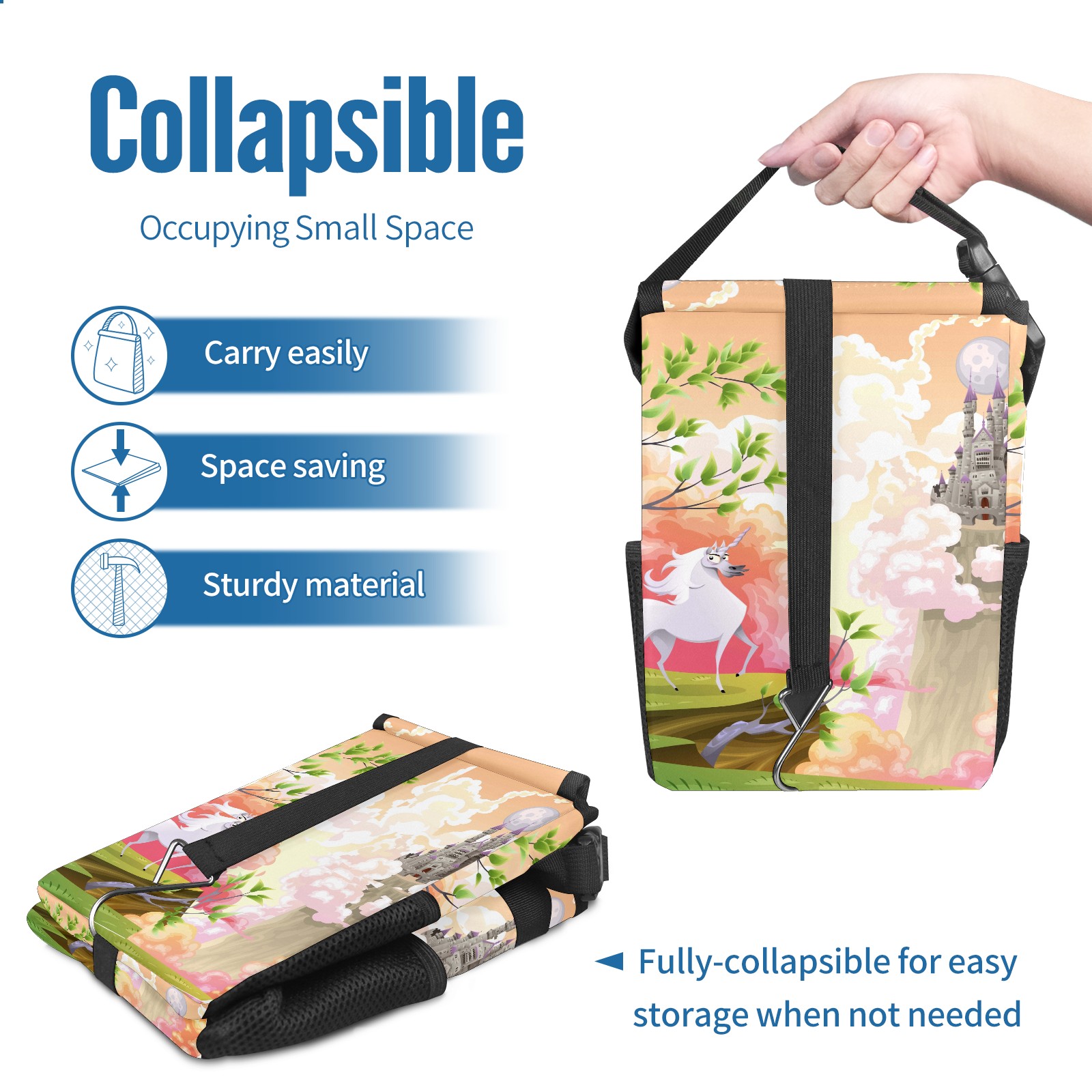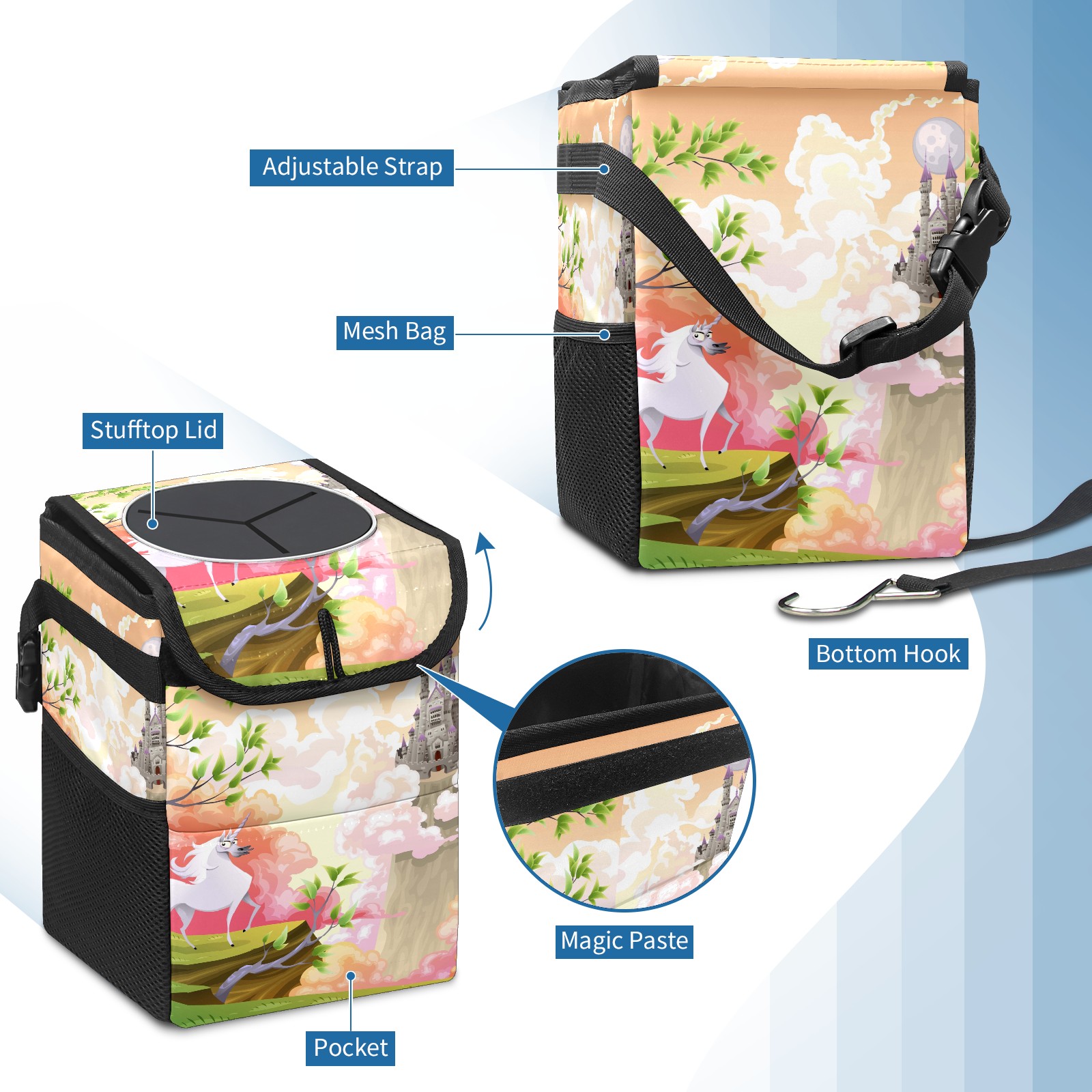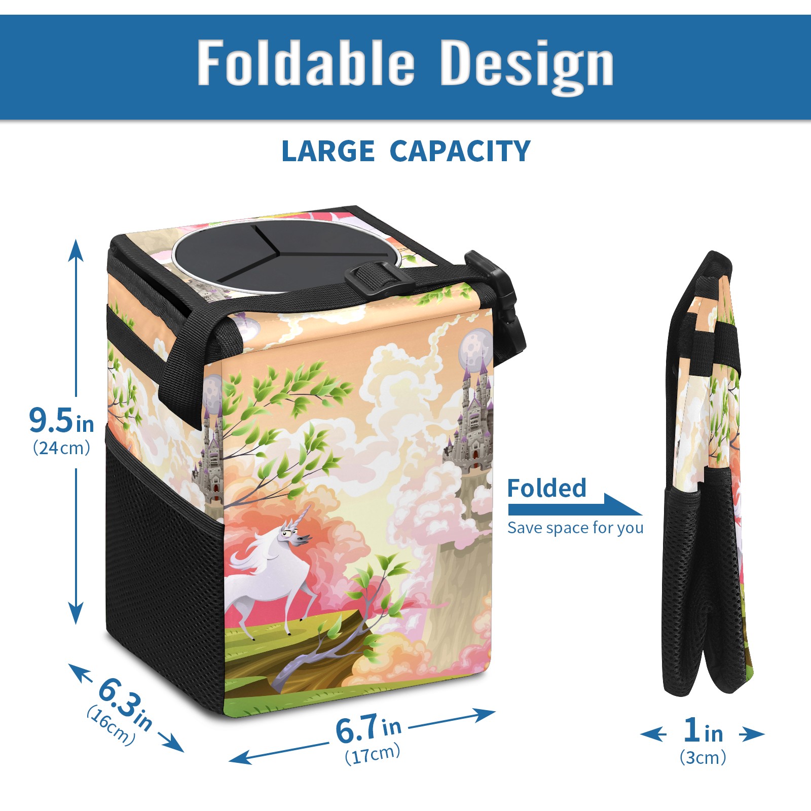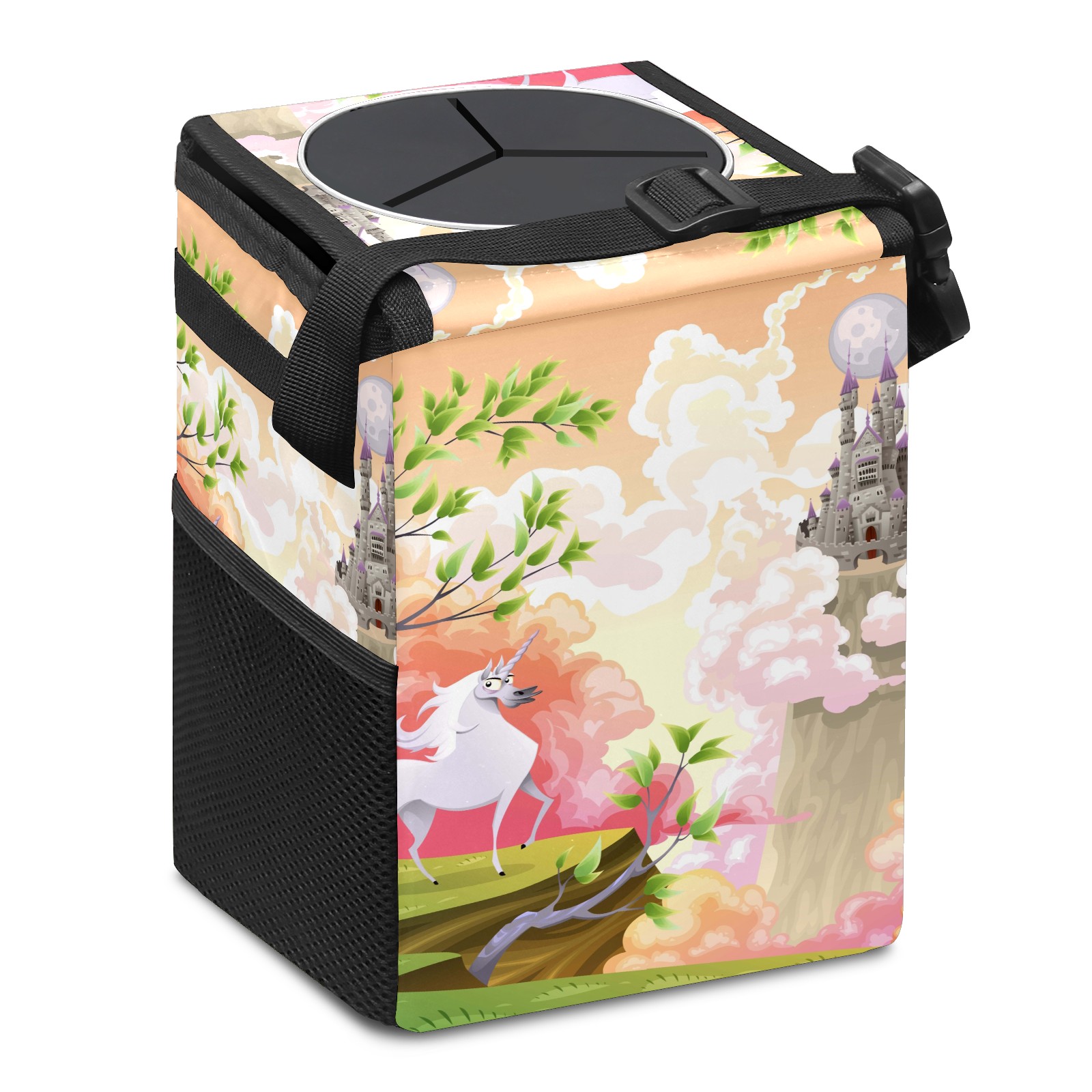 Car Garbage Can — Multi-functional, Lightweight Portable, Reusable Vehicle Trash Can, Waterproof with Sufficient Storage Capacity Fairy Tale Unicorn Building