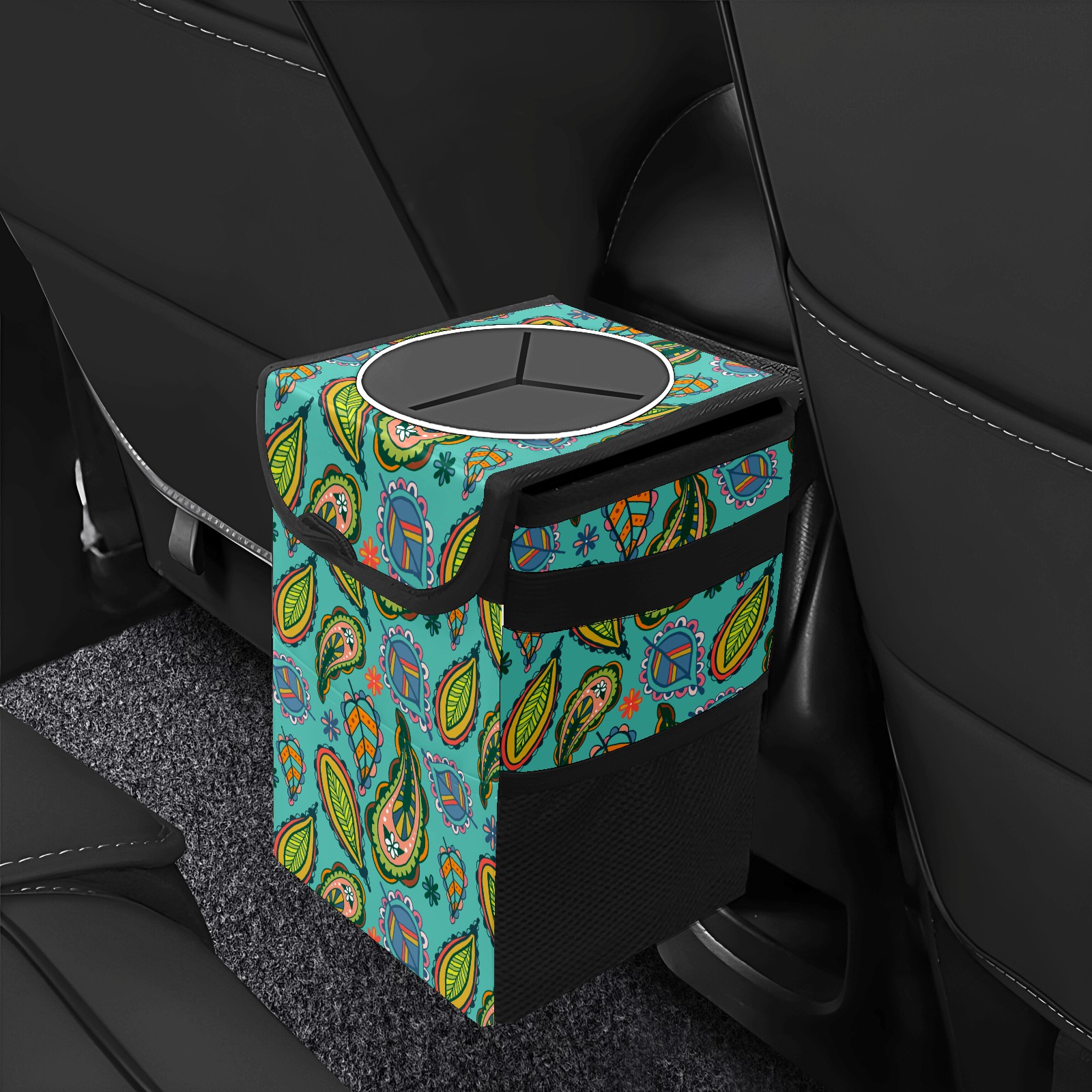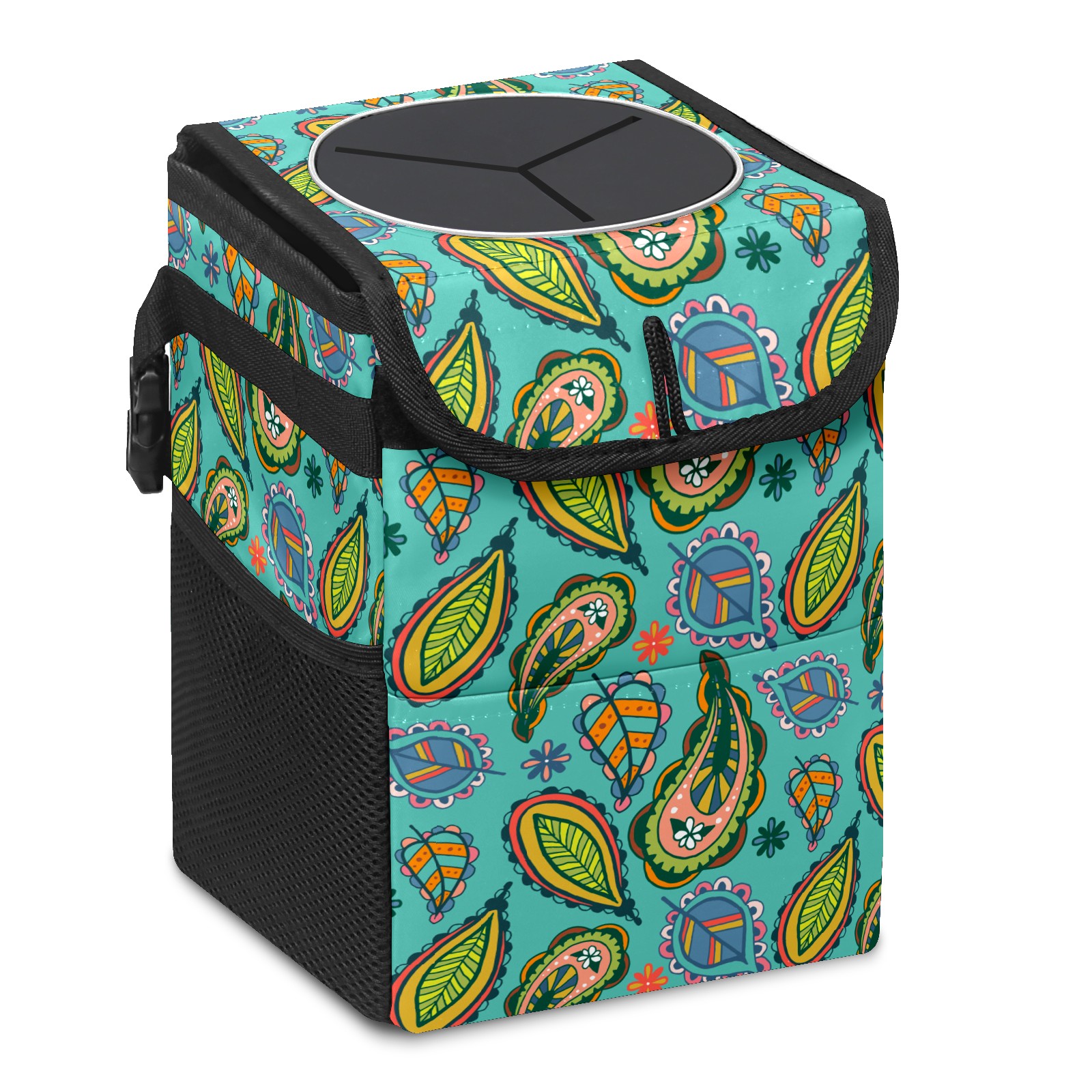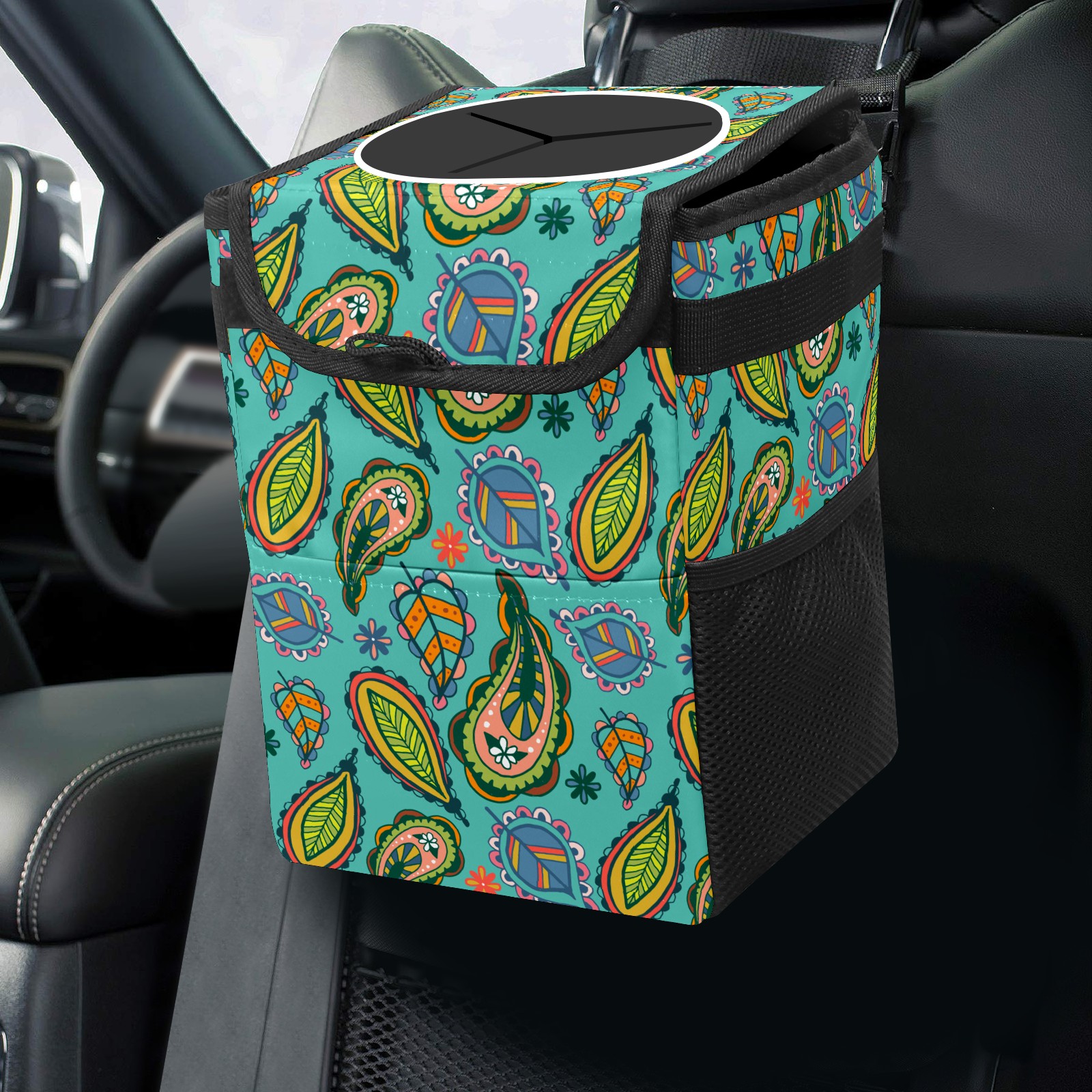 Car Garbage Can — Multi-functional, Lightweight Portable, Reusable Vehicle Trash Can, Waterproof with Sufficient Storage Capacity Colorful Paisley Ethnic