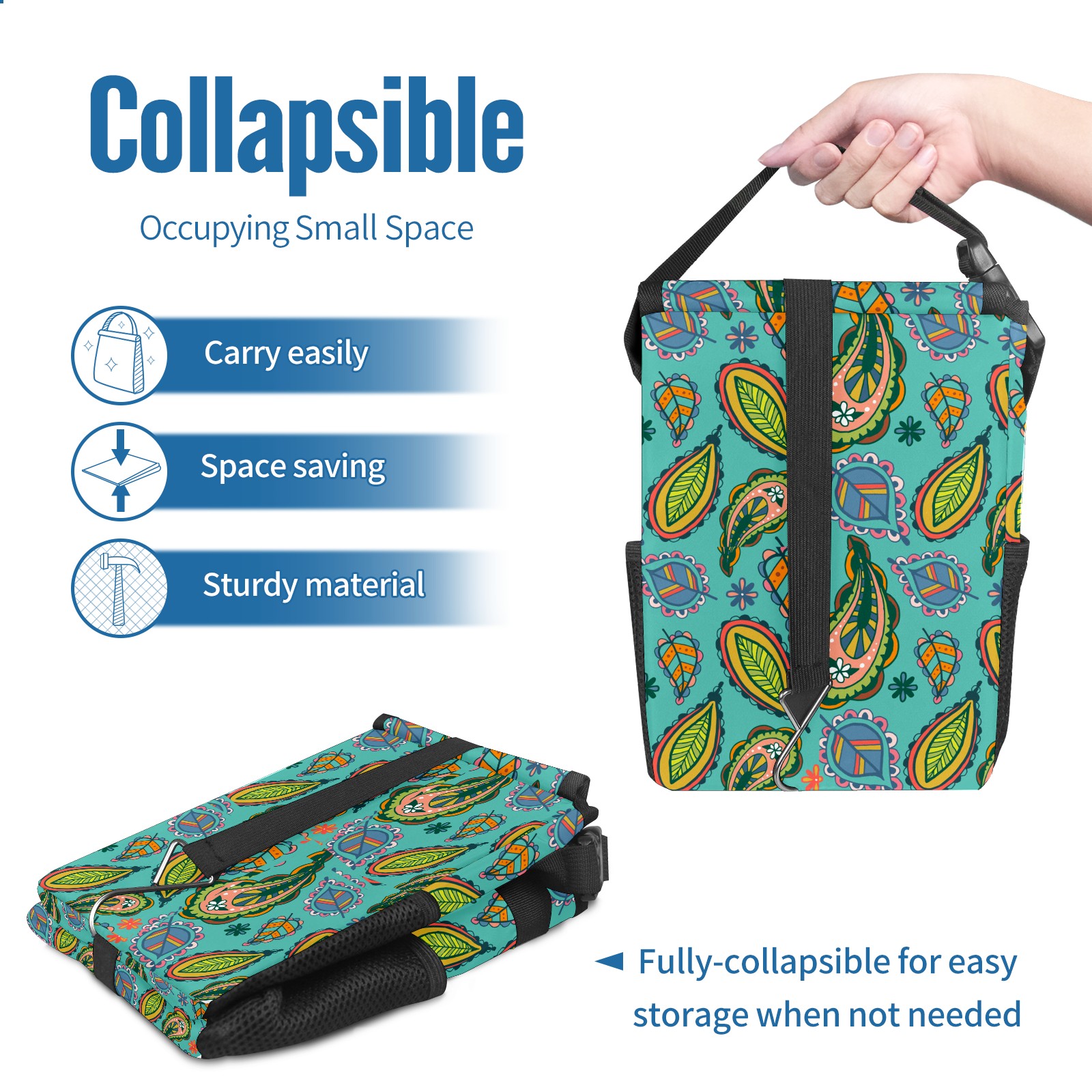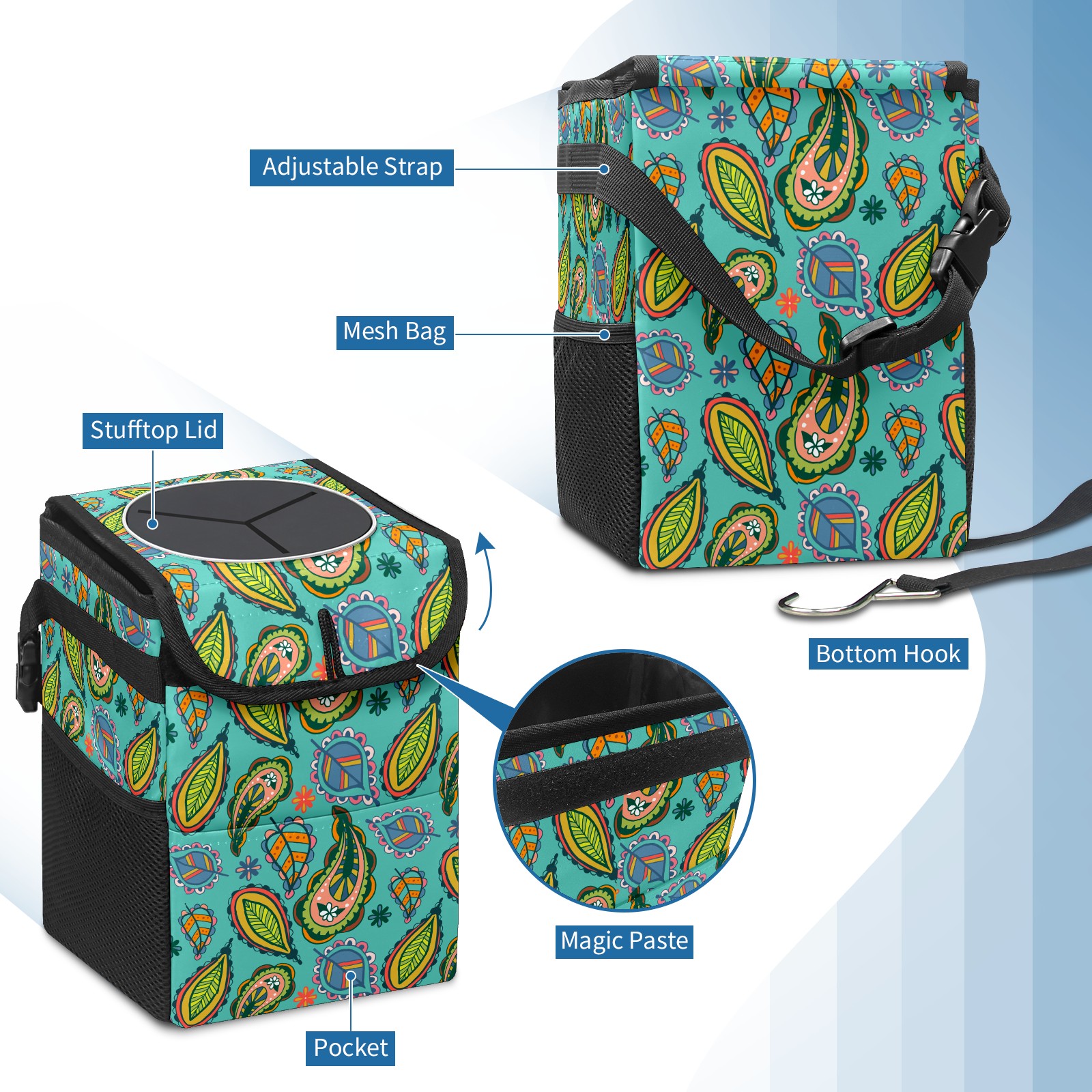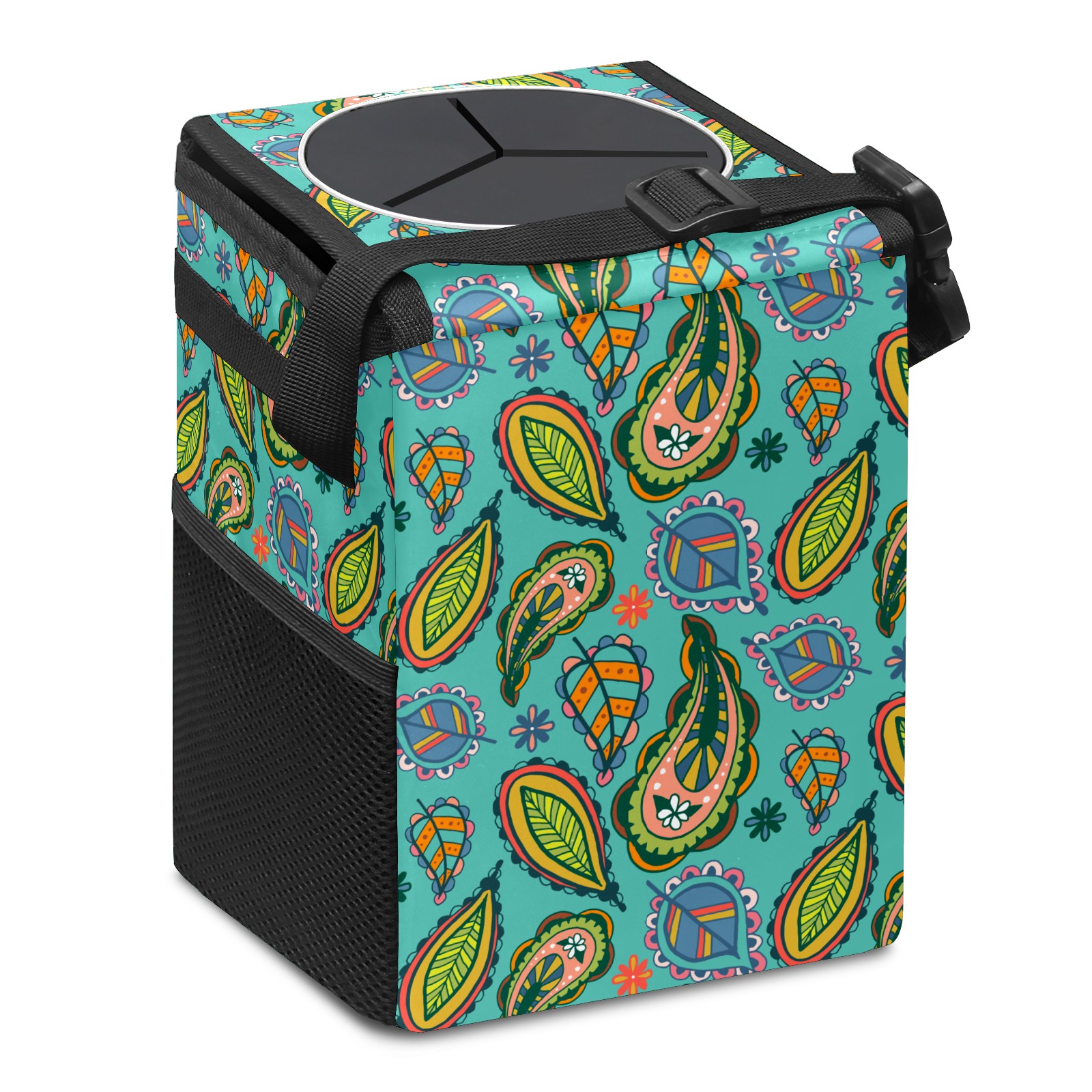 Car Garbage Can — Multi-functional, Lightweight Portable, Reusable Vehicle Trash Can, Waterproof with Sufficient Storage Capacity Colorful Paisley Ethnic