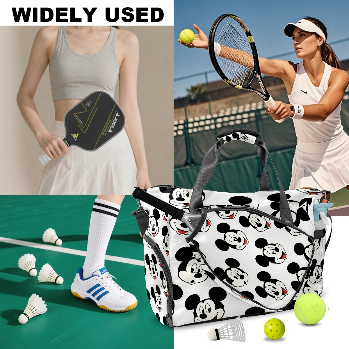 Pickleball Tote Bag Carryall for Paddles Balls and Accessories, Portable Lightweight Gear Bag for Players(Mickey Mouse)