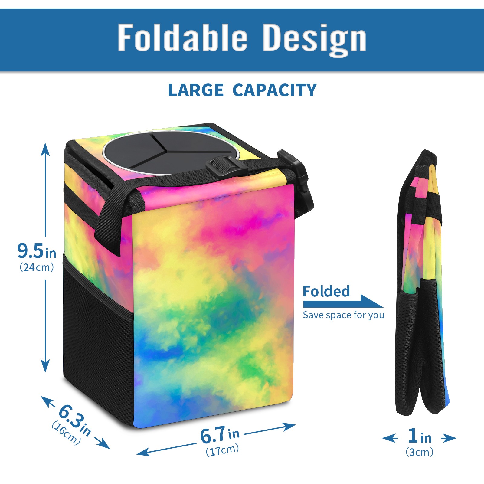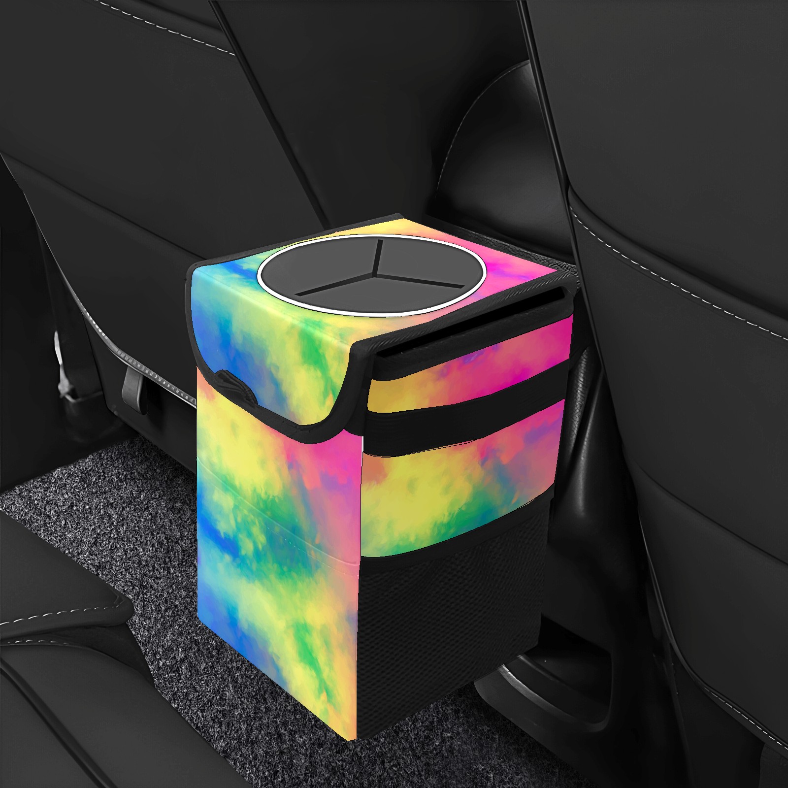 Car Garbage Can — Multi-functional, Lightweight Portable, Reusable Vehicle Trash Can, Waterproof with Sufficient Storage Capacity Colourful Rainbow Texture