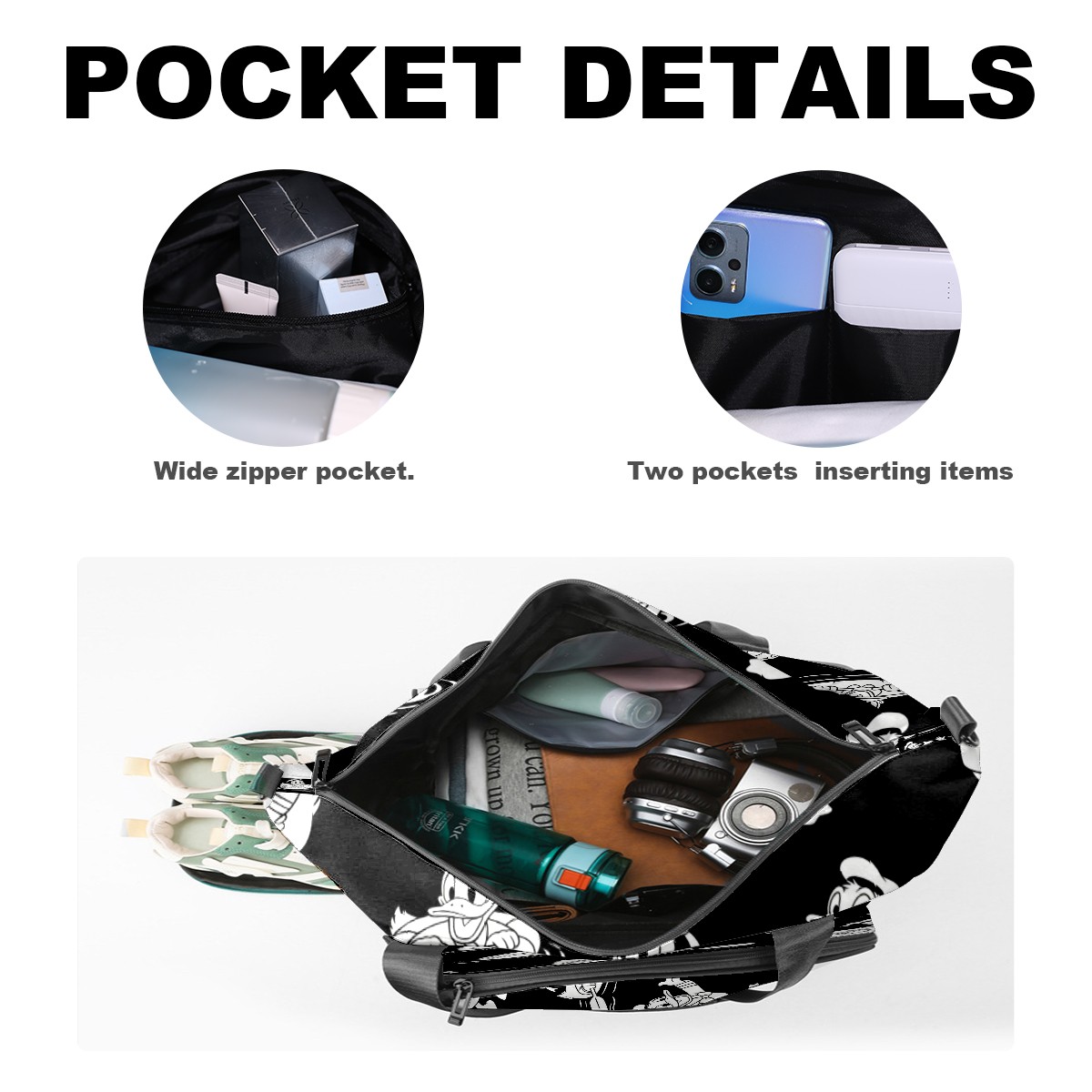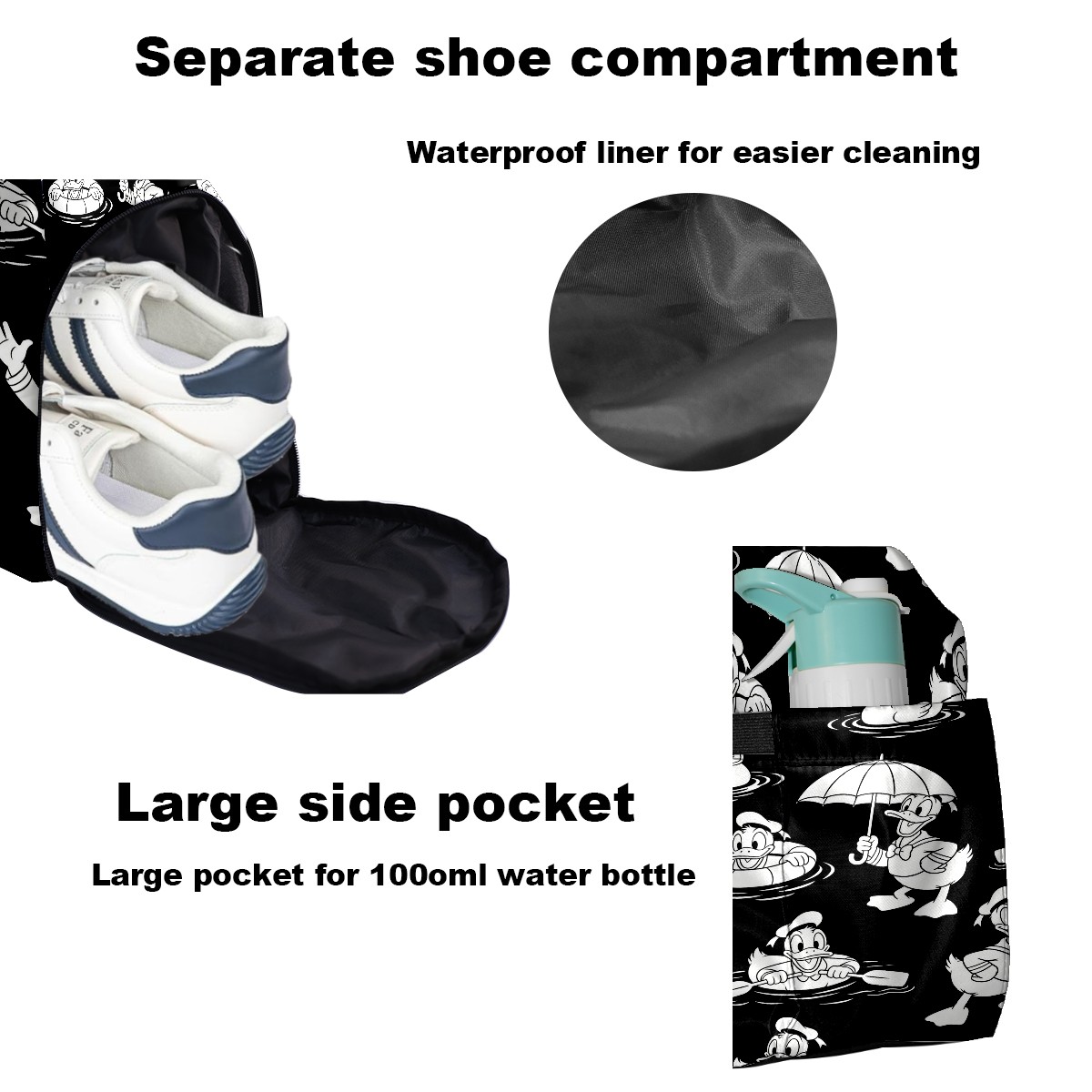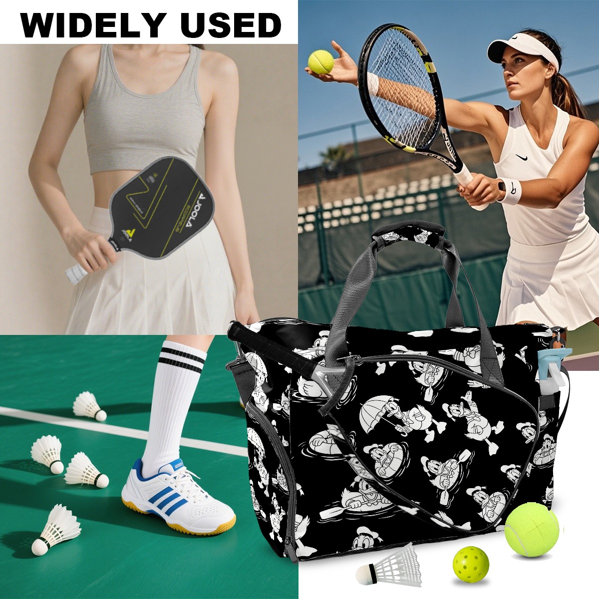 Pickleball Tote Bag Carryall for Paddles Balls and Accessories, Portable Lightweight Gear Bag for Players(Donald Duck)