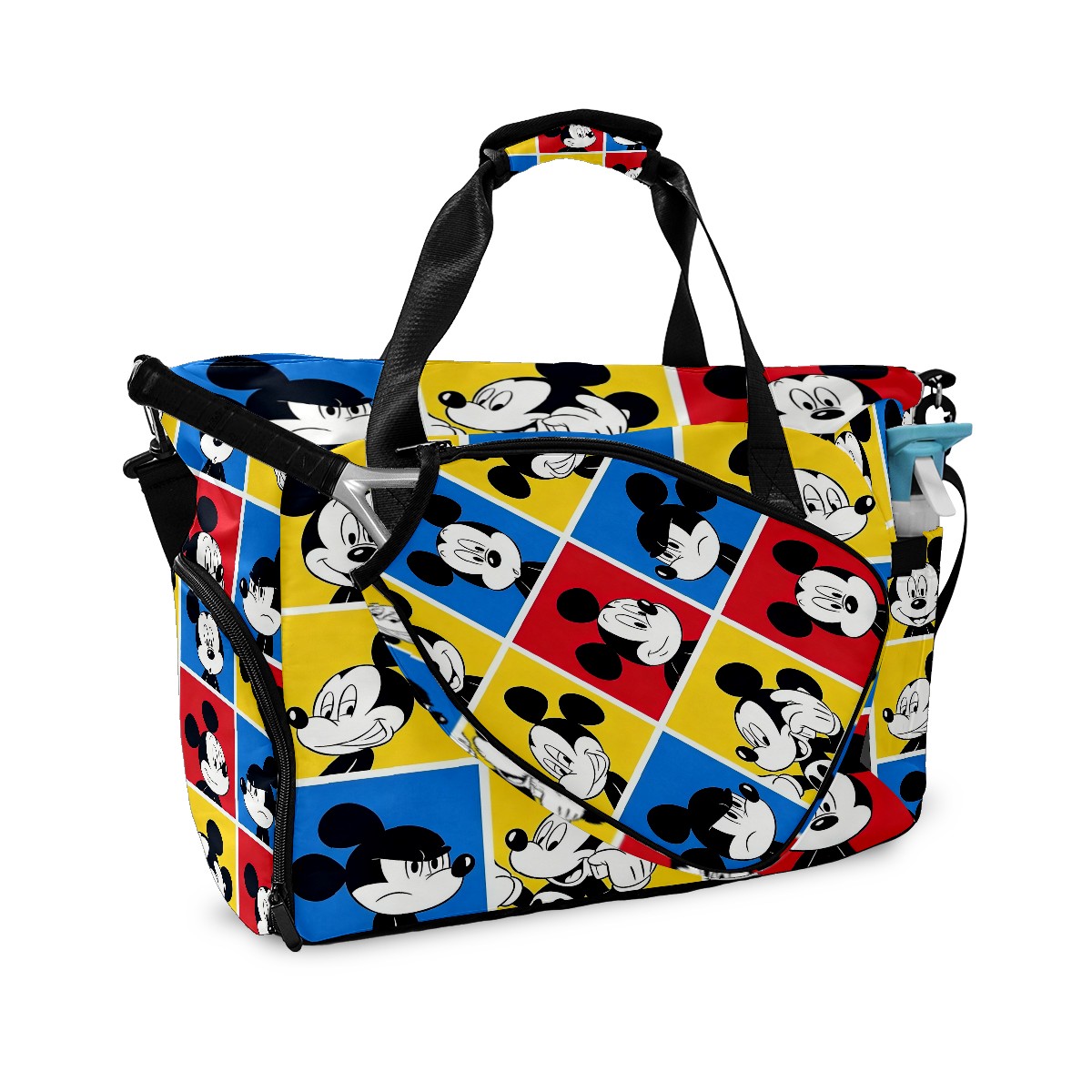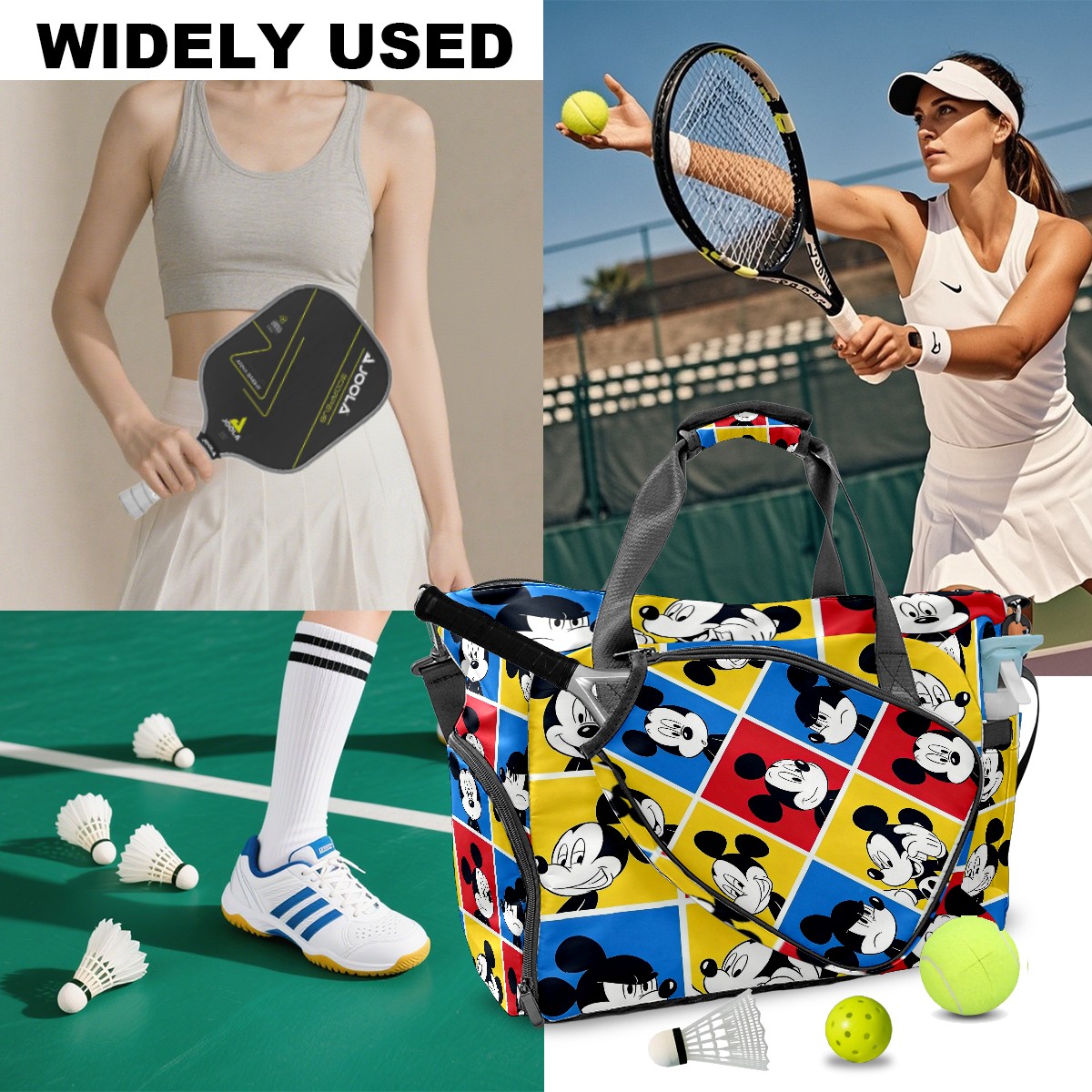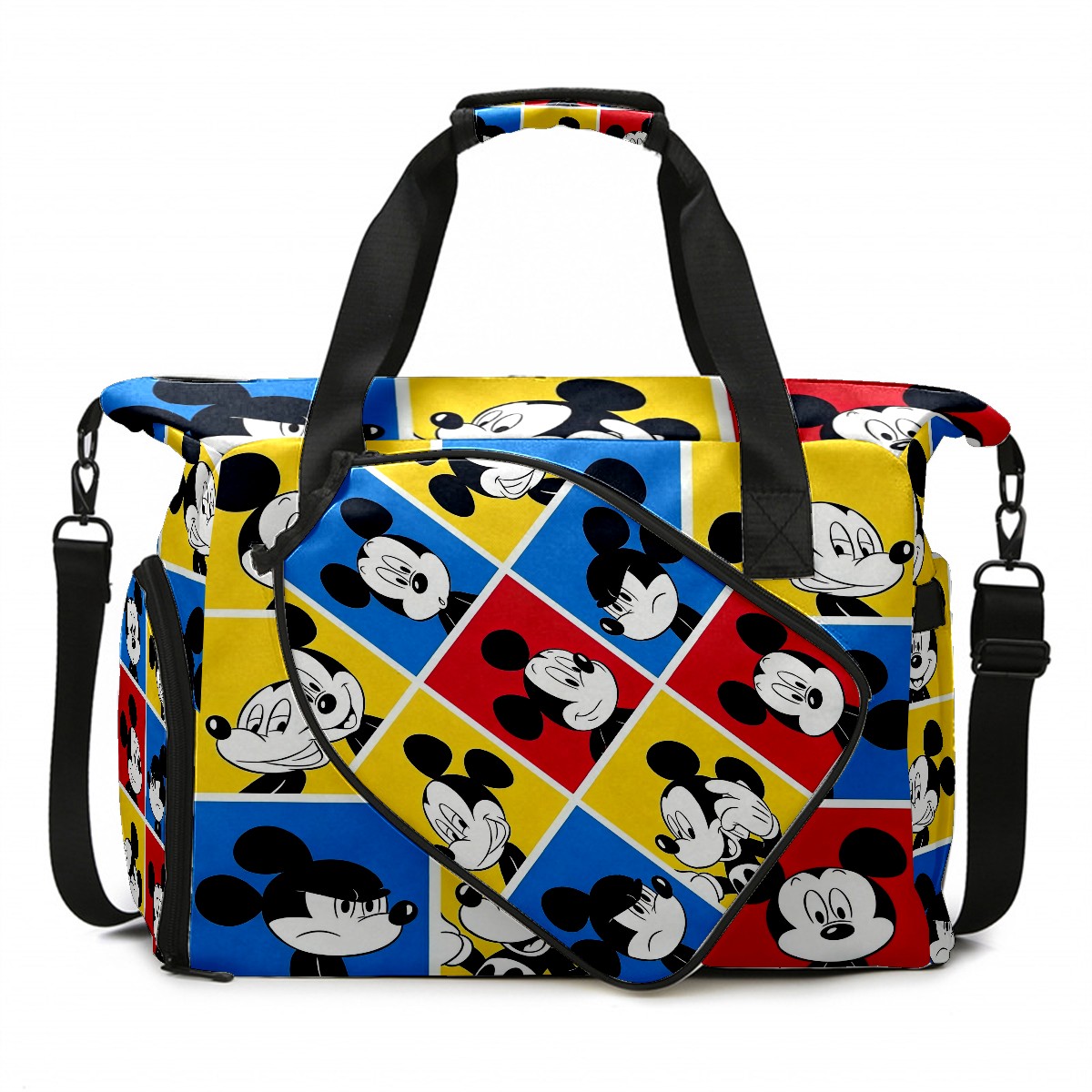 Pickleball Tote Bag Carryall for Paddles Balls and Accessories, Portable Lightweight Gear Bag for Players(Mickey Squares)