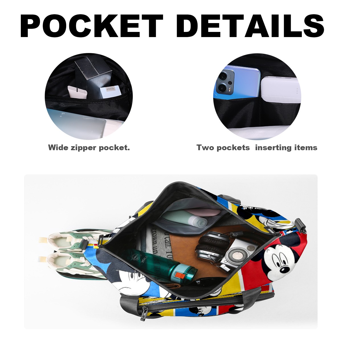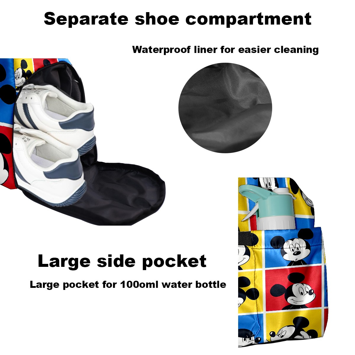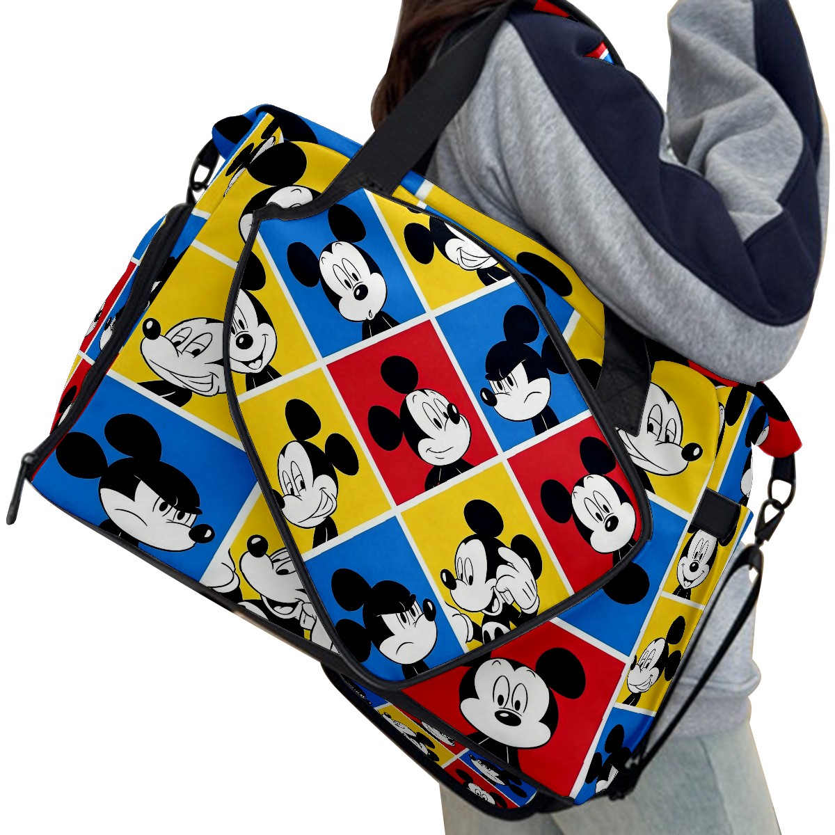 Pickleball Tote Bag Carryall for Paddles Balls and Accessories, Portable Lightweight Gear Bag for Players(Mickey Squares)