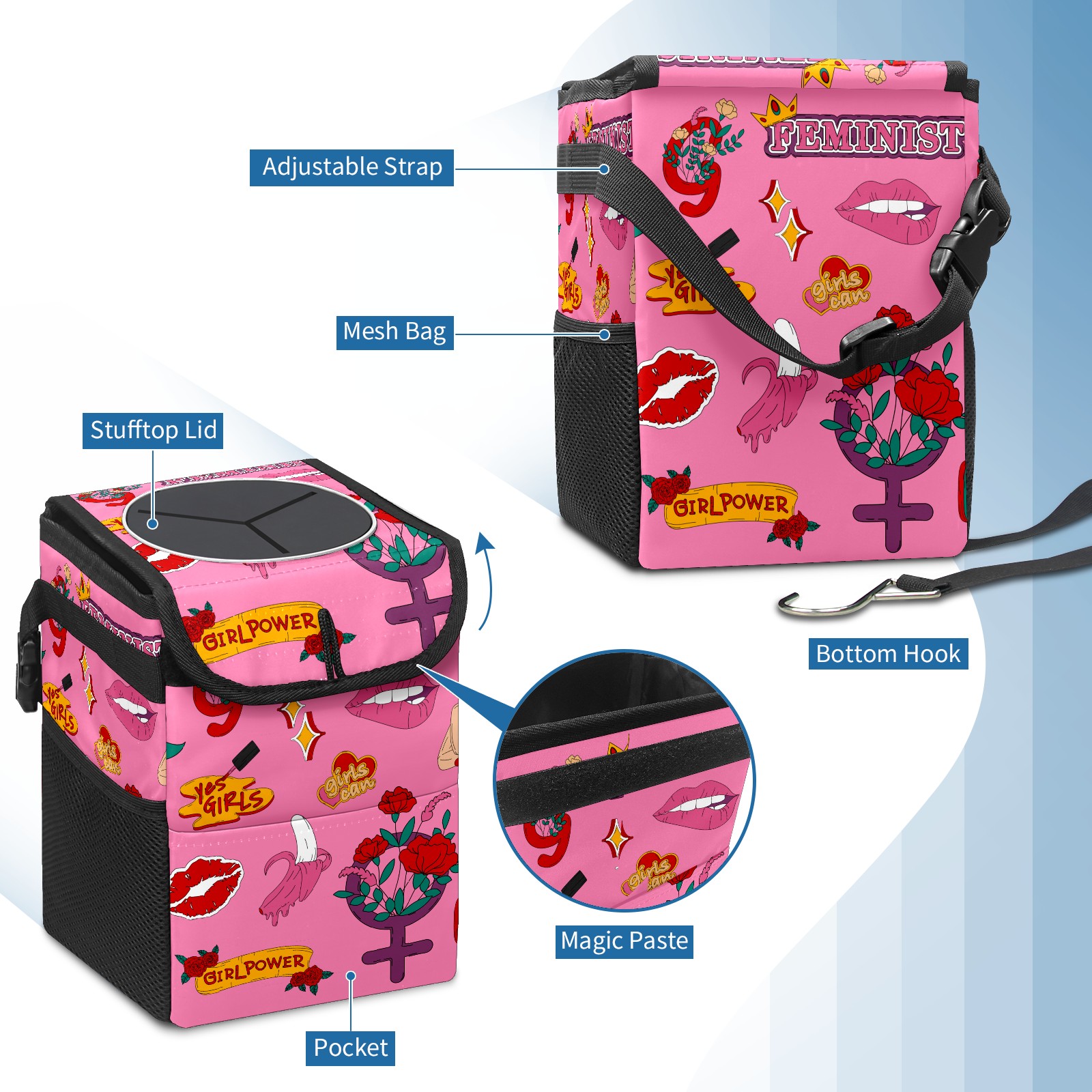 Car Garbage Can — Multi-functional, Lightweight Portable, Reusable Vehicle Trash Can, Waterproof with Sufficient Storage Capacity Collection Girl Power