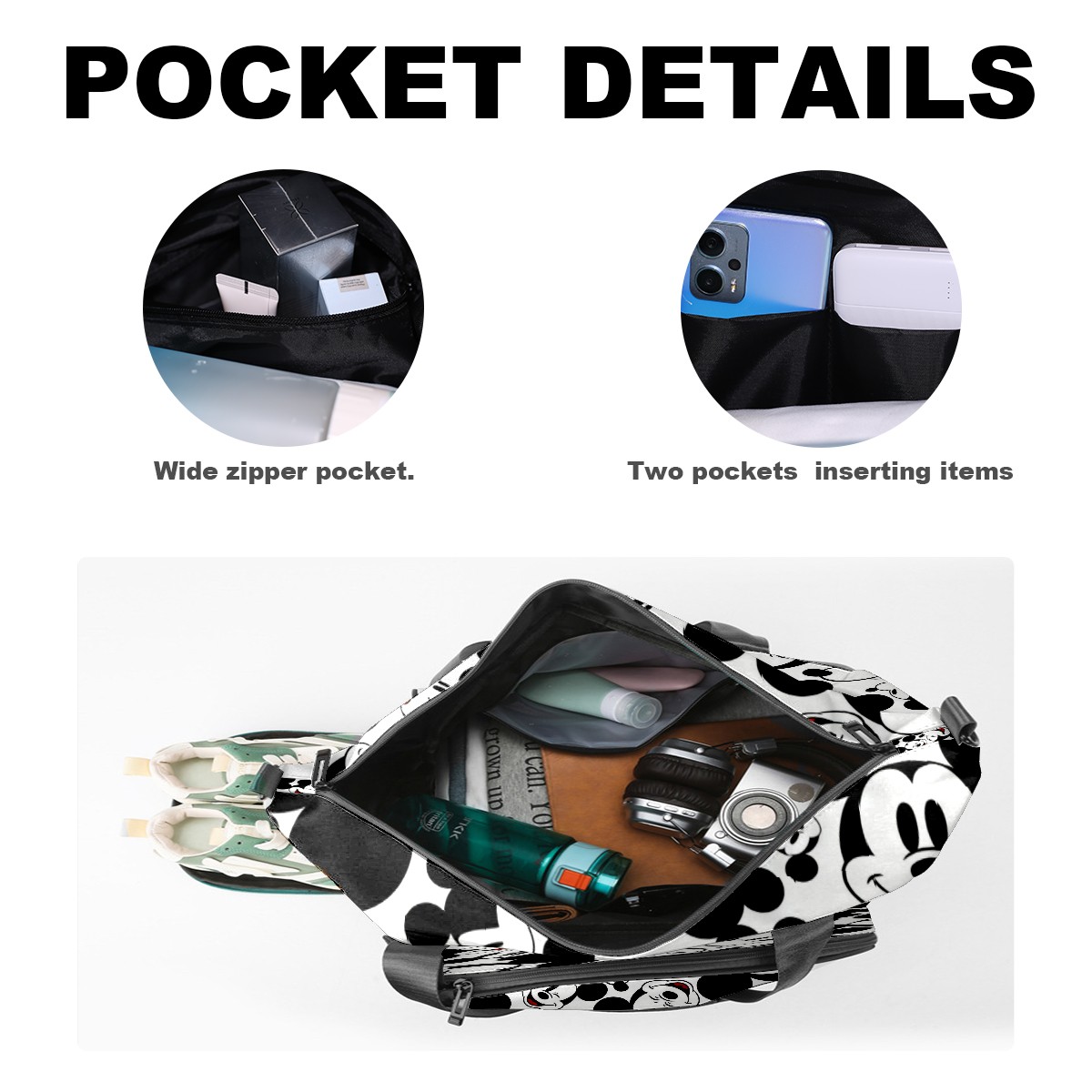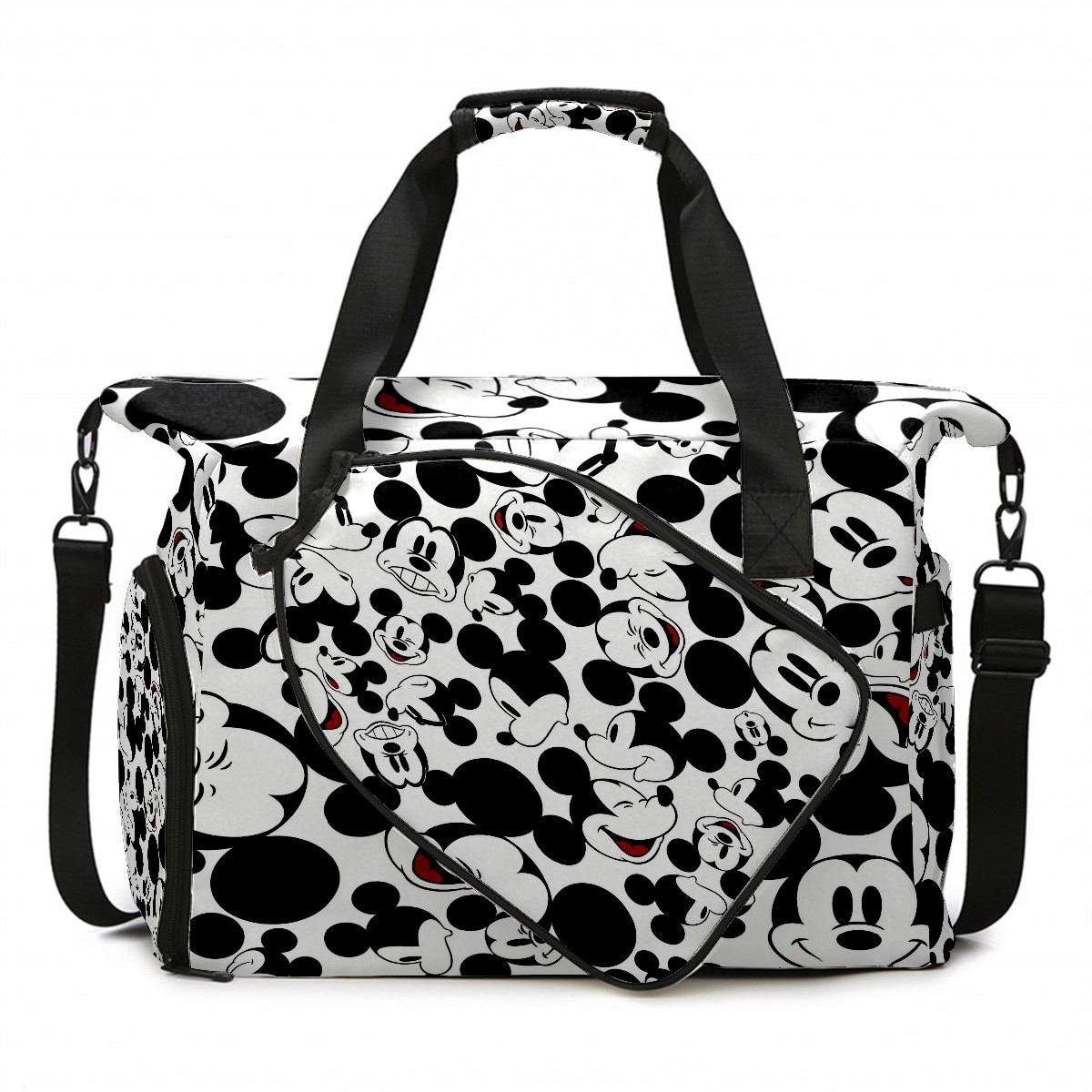 Pickleball Tote Bag Carryall for Paddles Balls and Accessories, Portable Lightweight Gear Bag for Players(Mickey Allover)