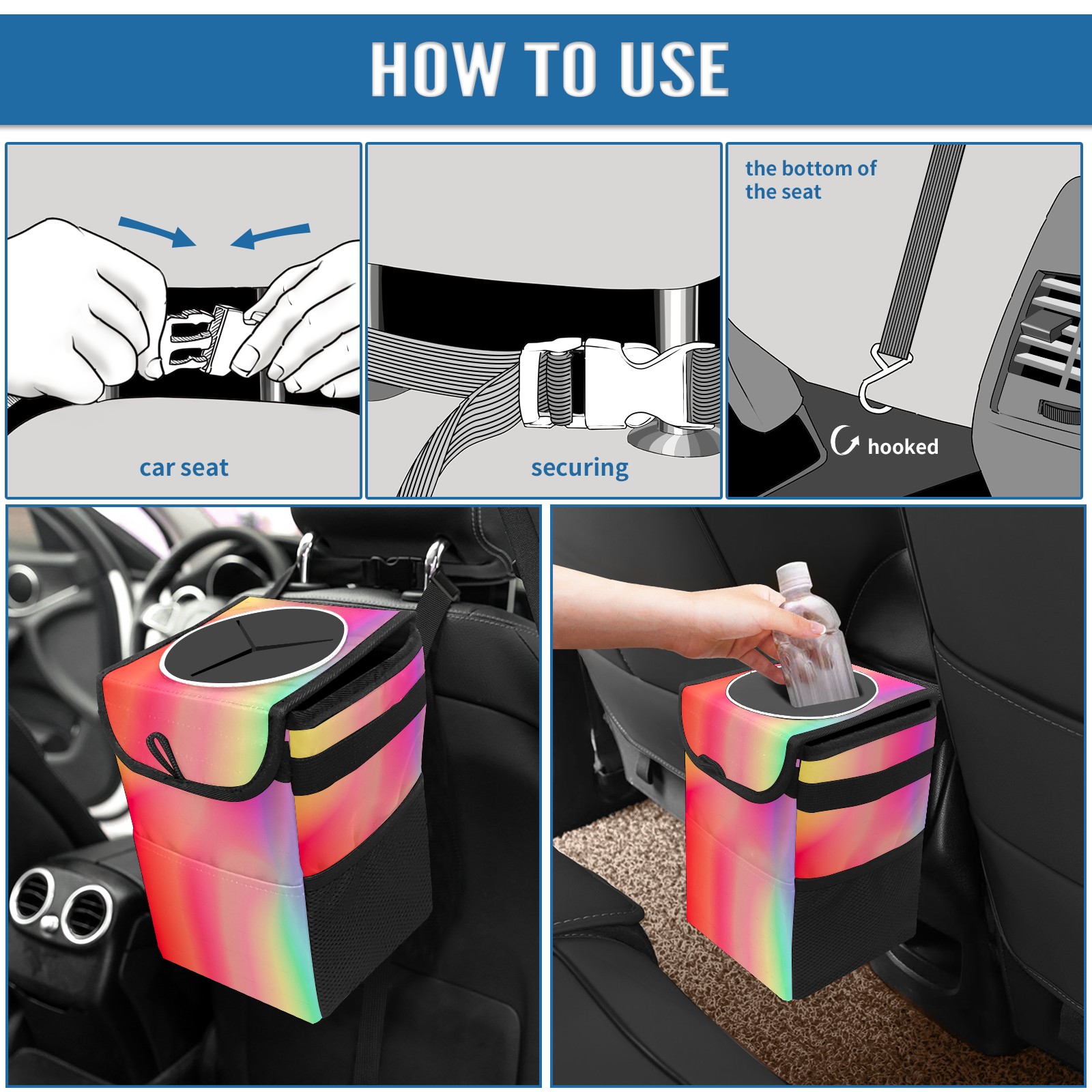 Car Garbage Can — Multi-functional, Lightweight Portable, Reusable Vehicle Trash Can, Waterproof with Sufficient Storage Capacity Blurred Pop Abstract Colors