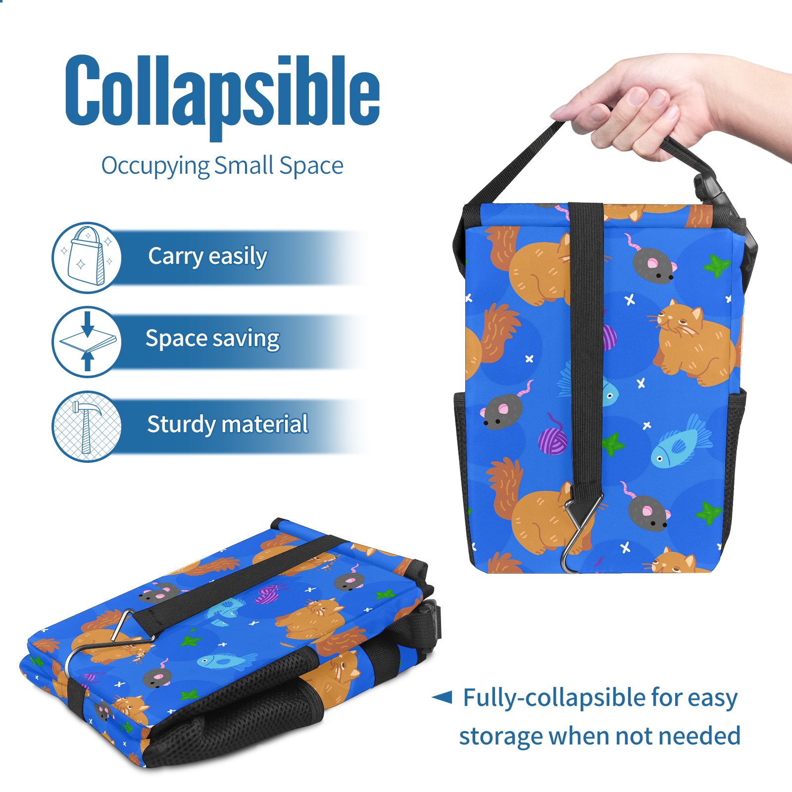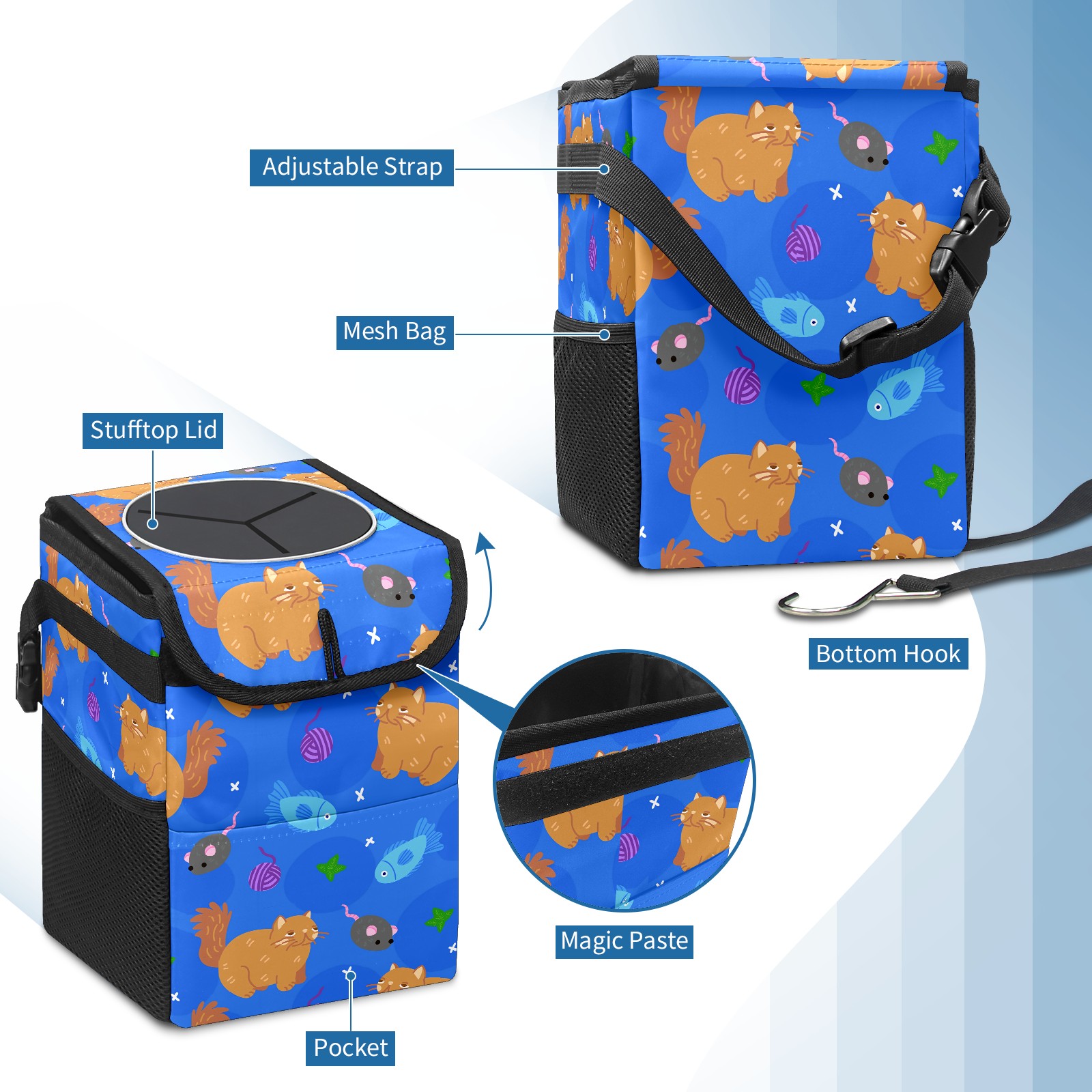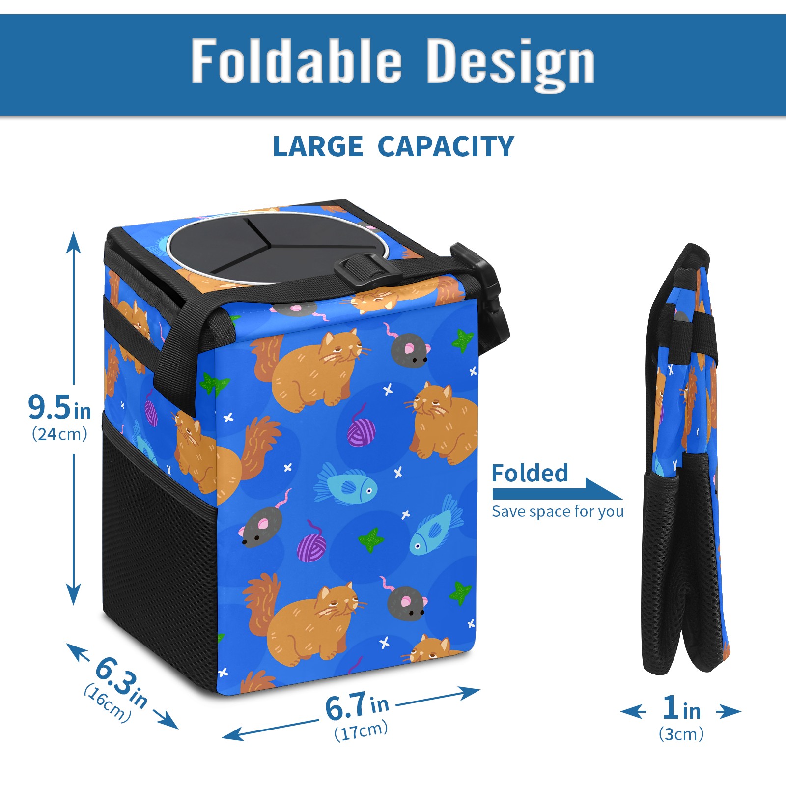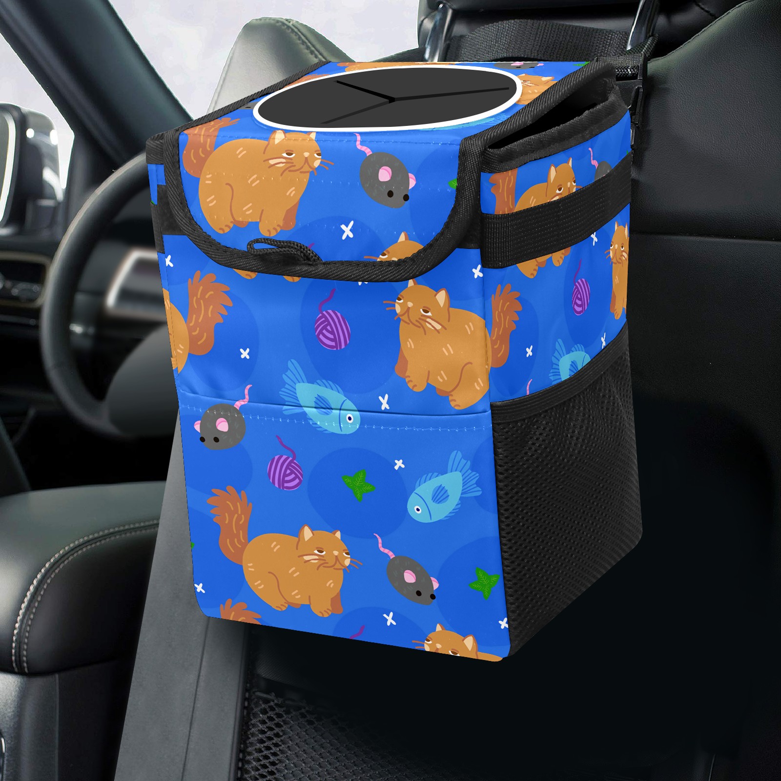 Car Garbage Can — Multi-functional, Lightweight Portable, Reusable Vehicle Trash Can, Waterproof with Sufficient Storage Capacity Cartoon Cats