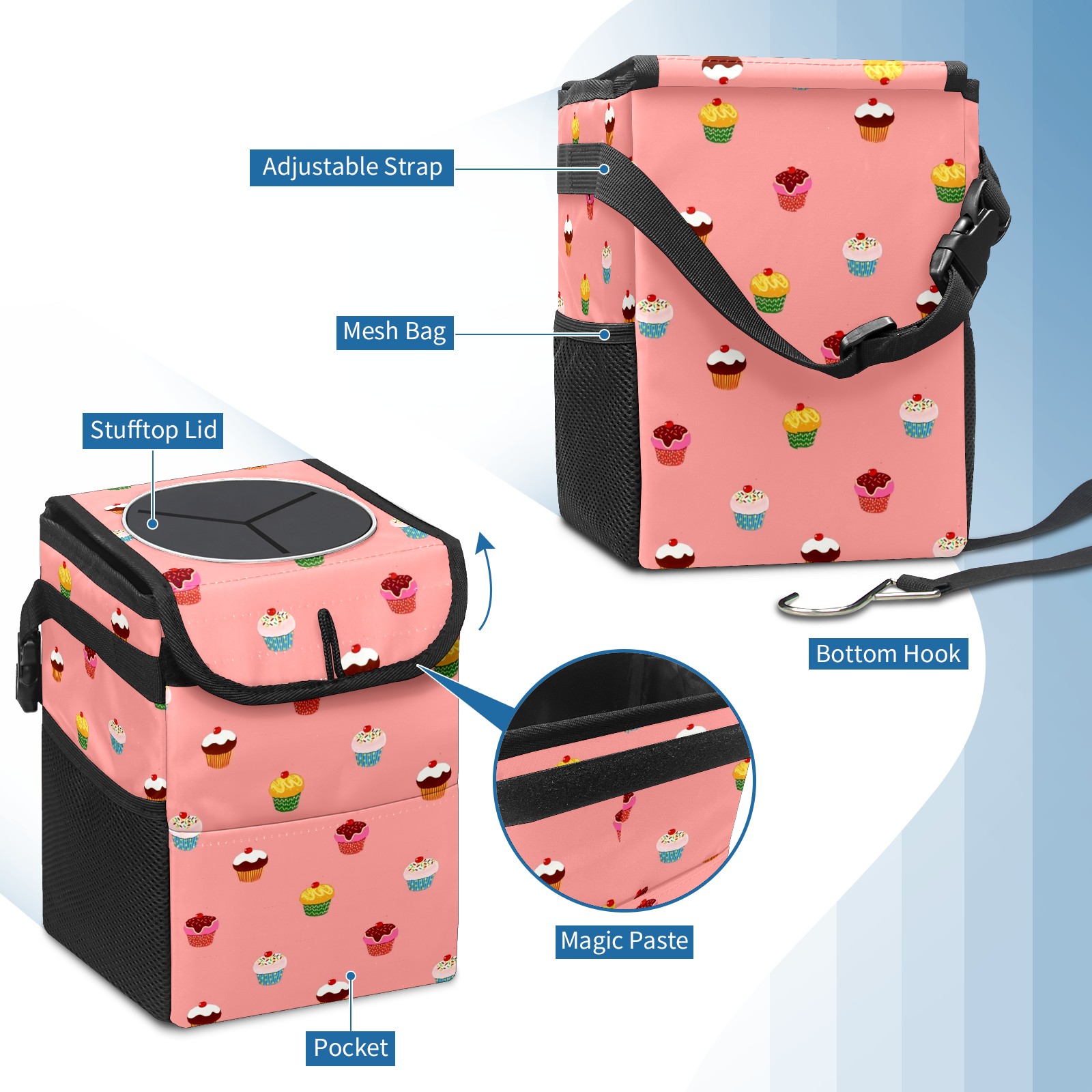 Car Garbage Can — Multi-functional, Lightweight Portable, Reusable Vehicle Trash Can, Waterproof with Sufficient Storage Capacity Cake Pattern