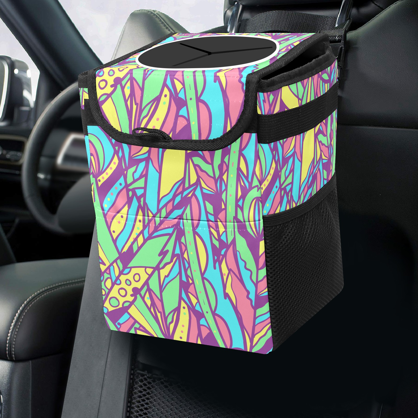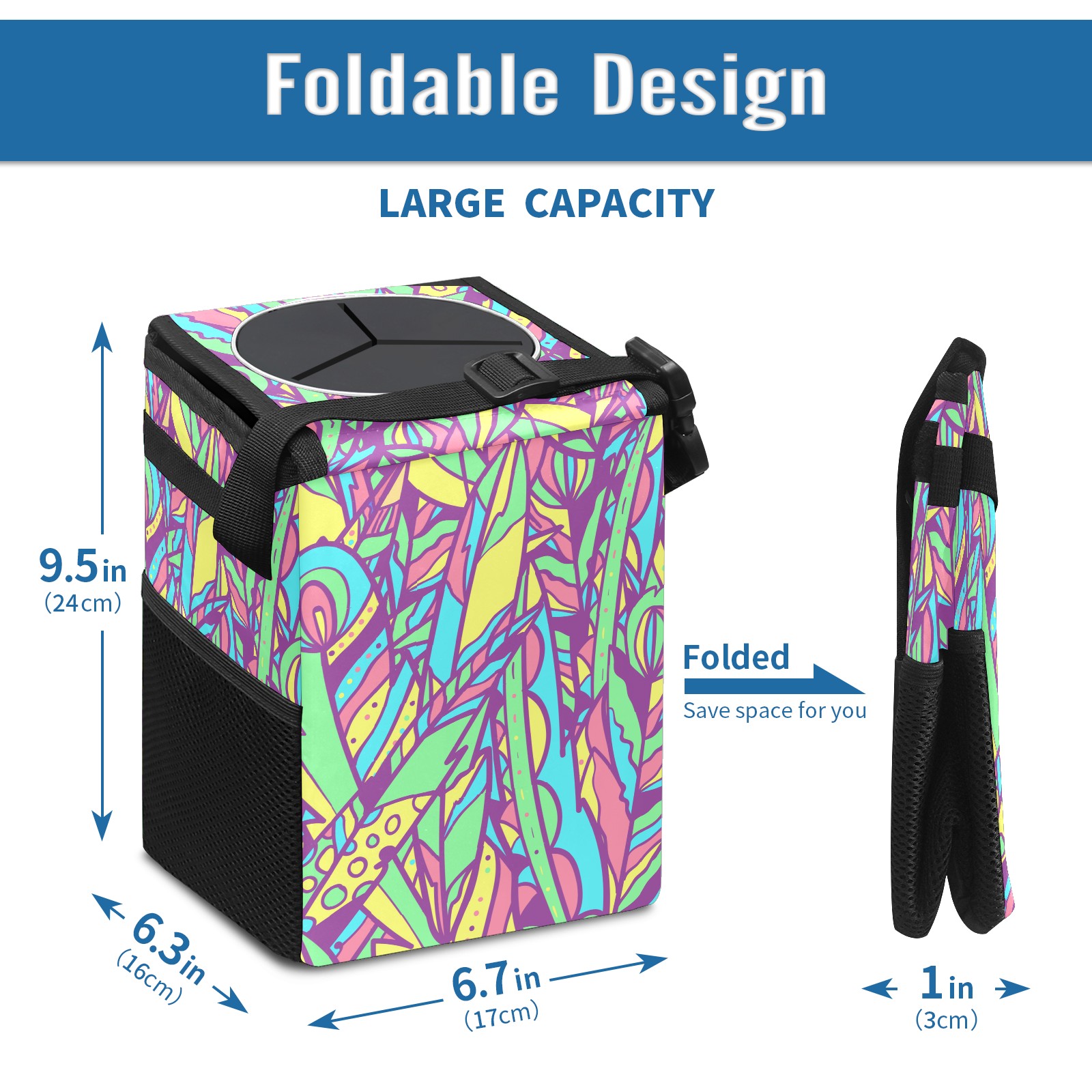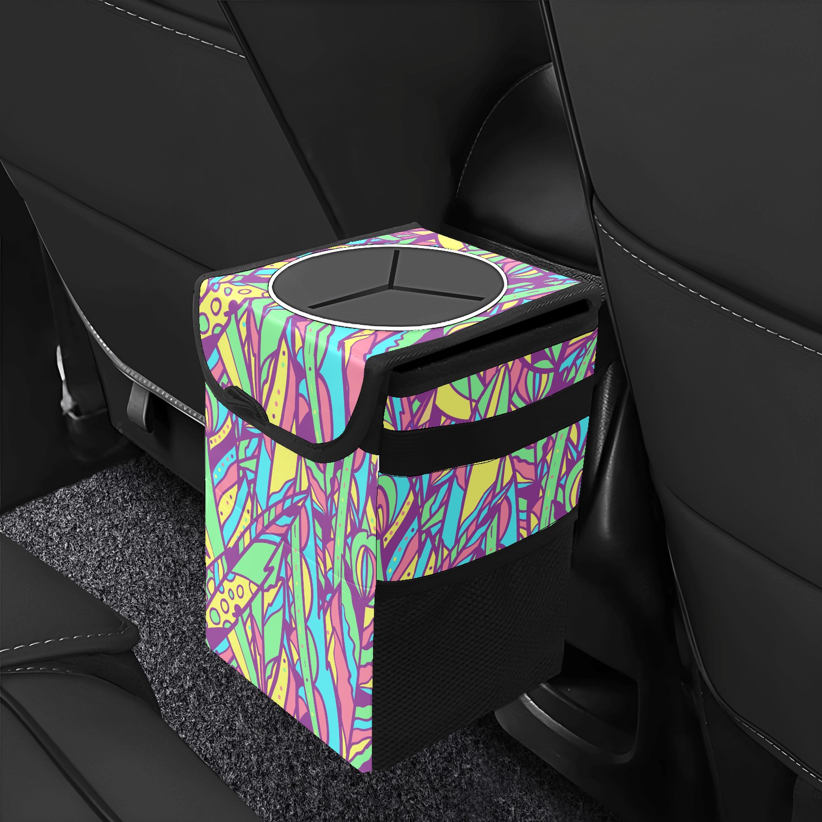 Car Garbage Can — Multi-functional, Lightweight Portable, Reusable Vehicle Trash Can, Waterproof with Sufficient Storage Capacity Watercolor Ethnic Feathers Boho