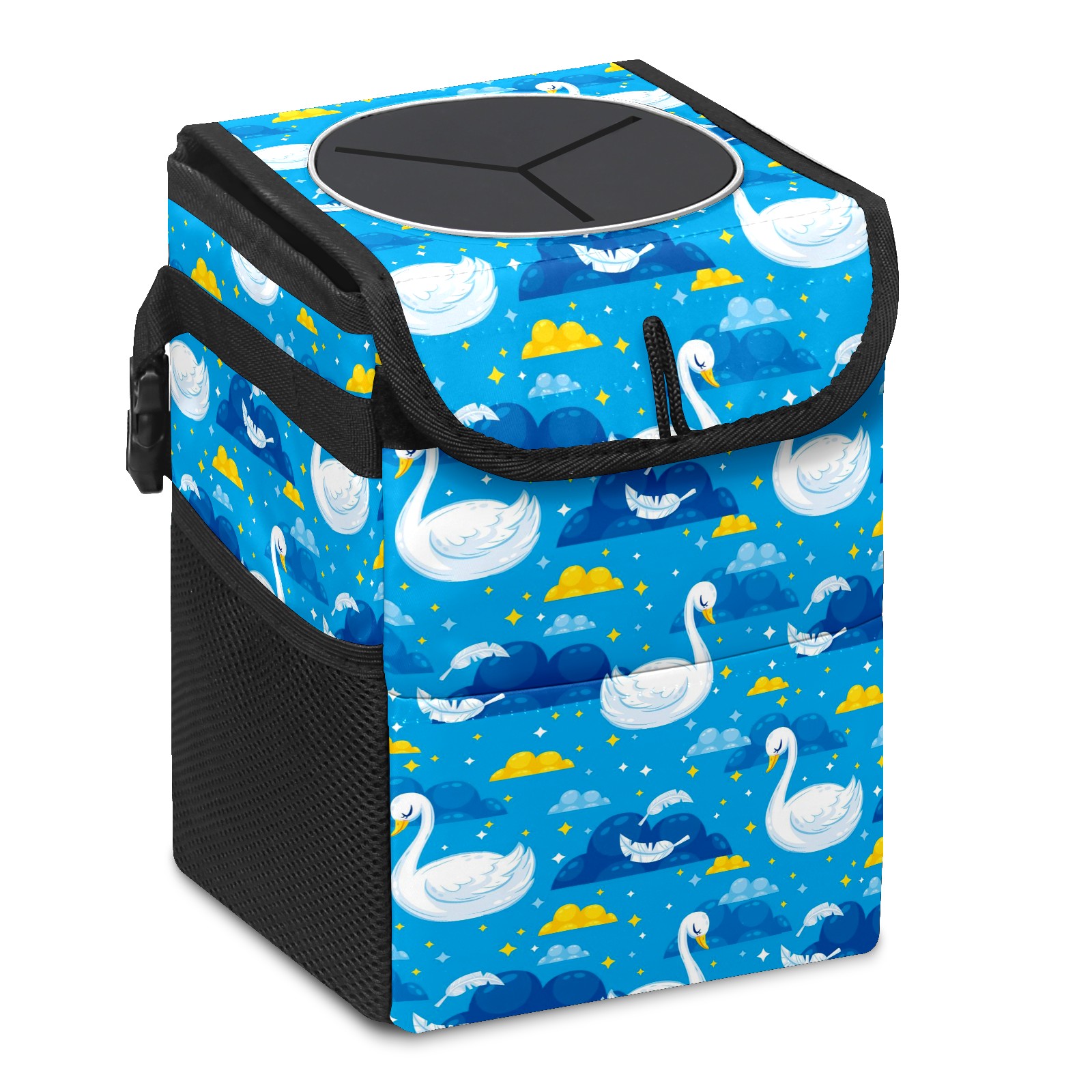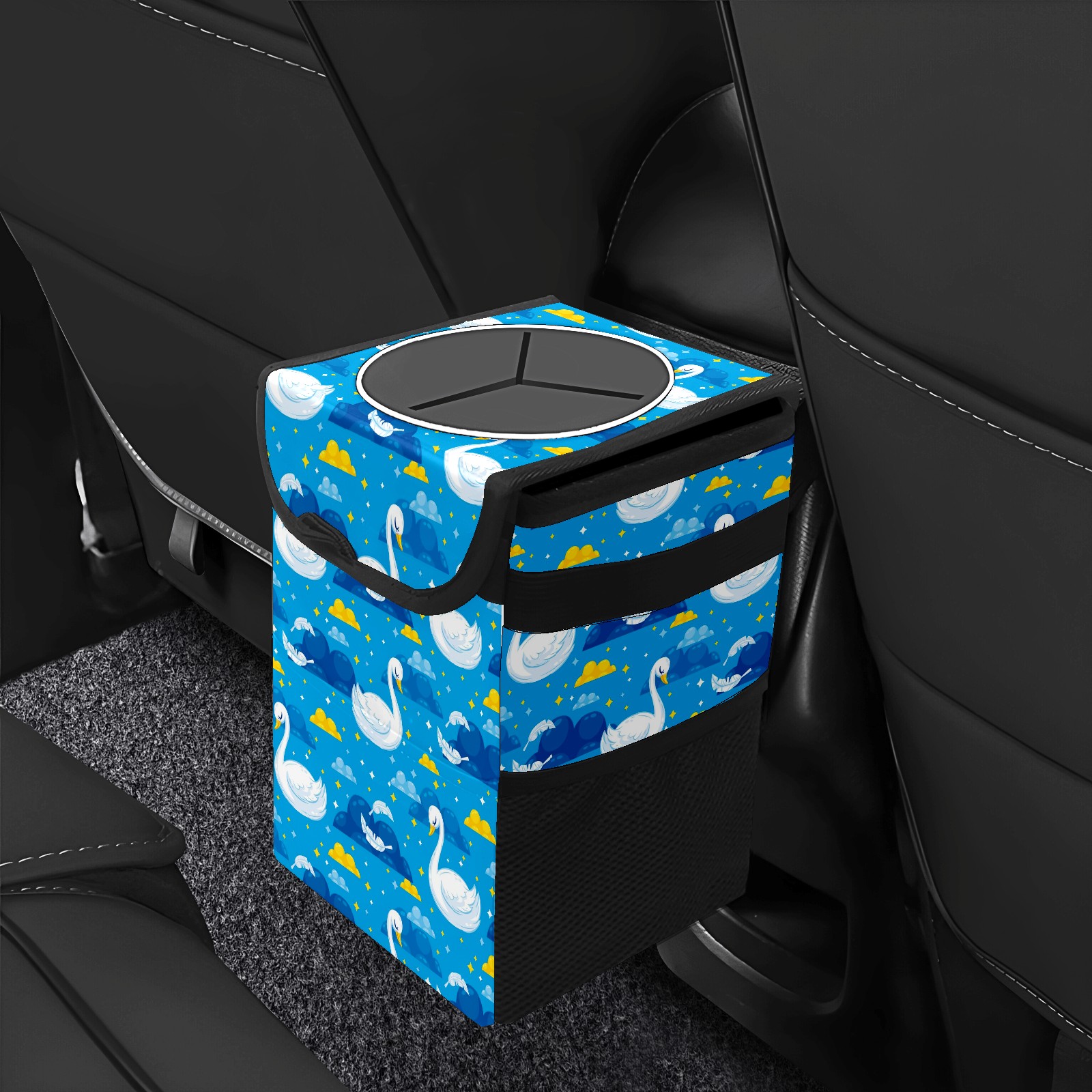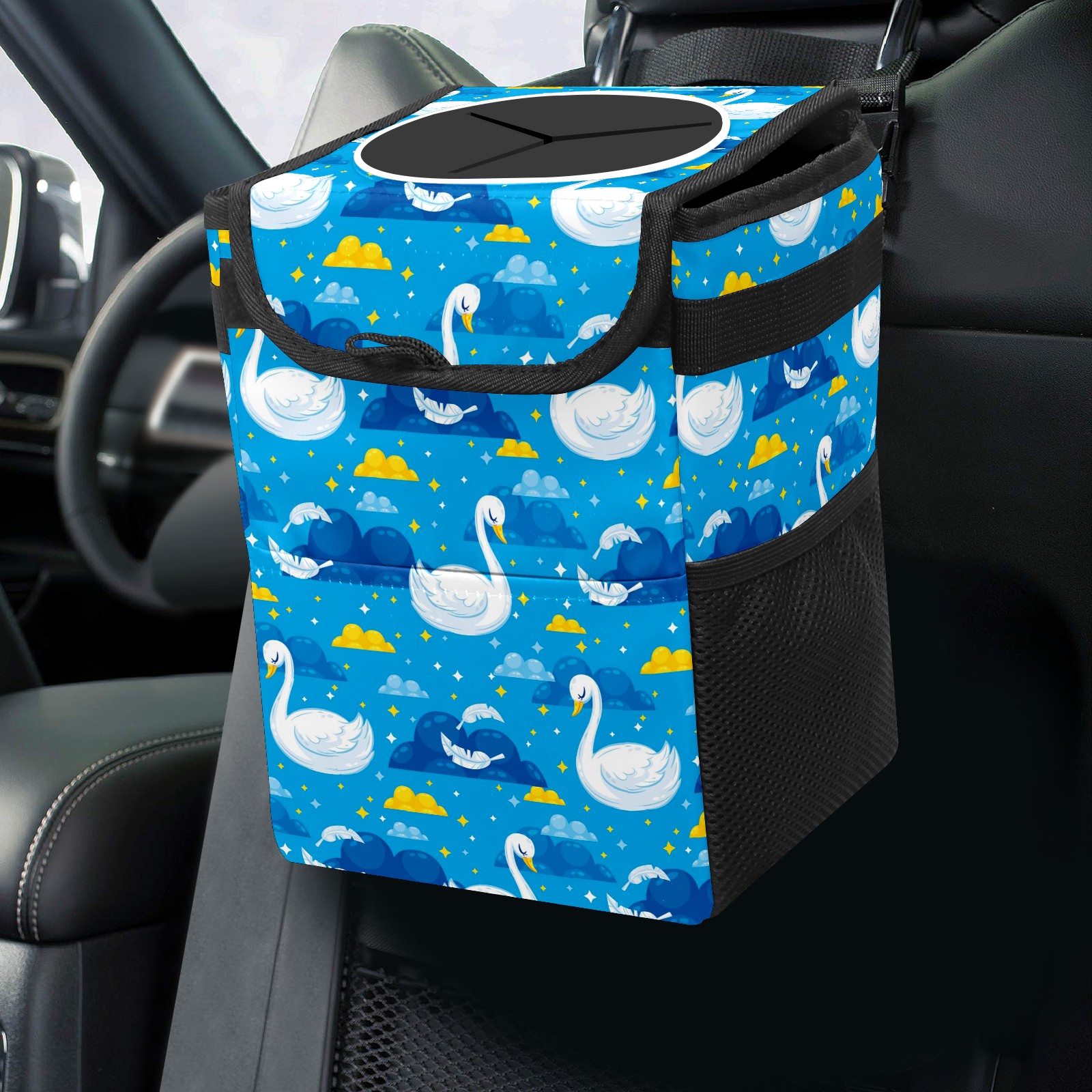 Car Garbage Can — Multi-functional, Lightweight Portable, Reusable Vehicle Trash Can, Waterproof with Sufficient Storage Capacity Swan Clouds Pattern Blue