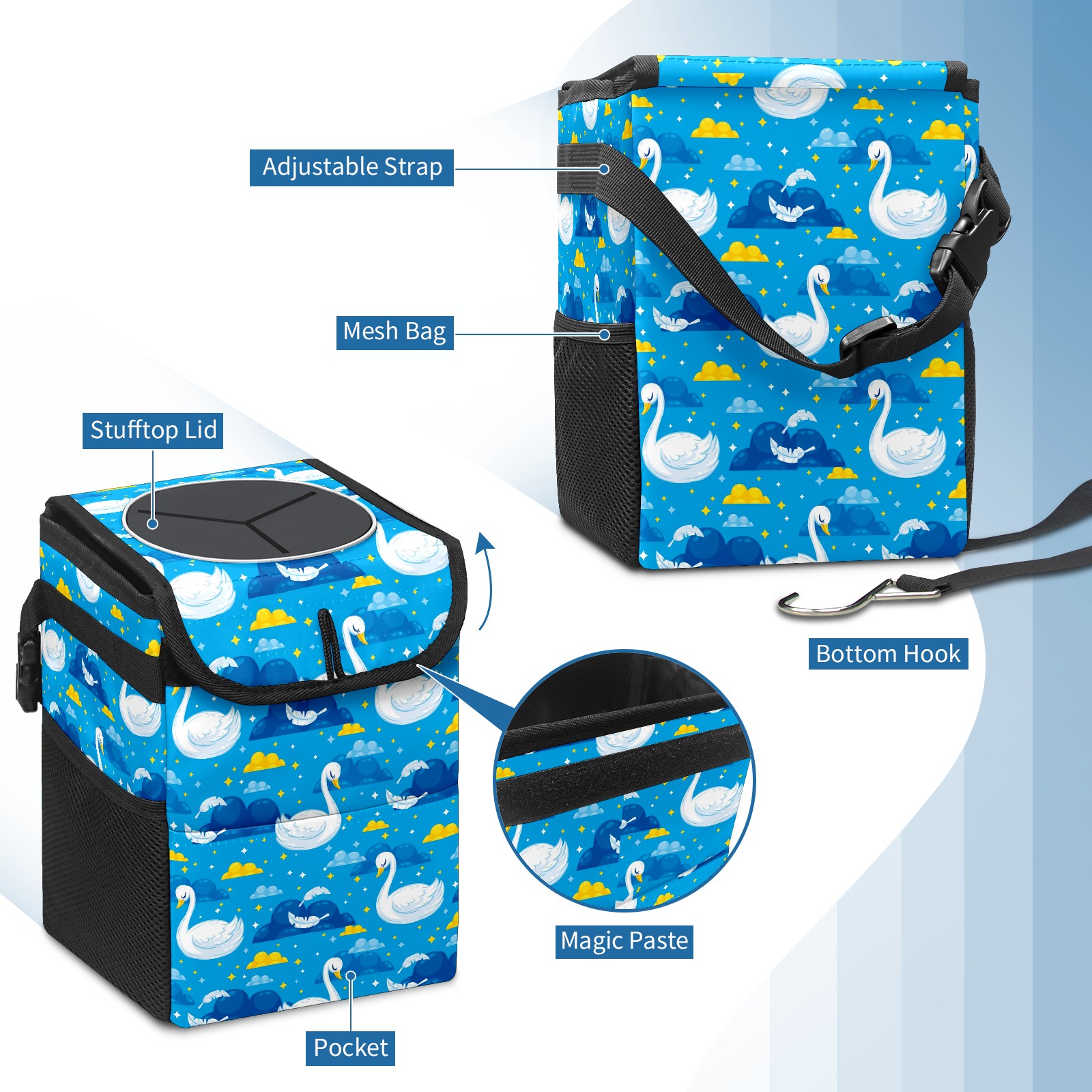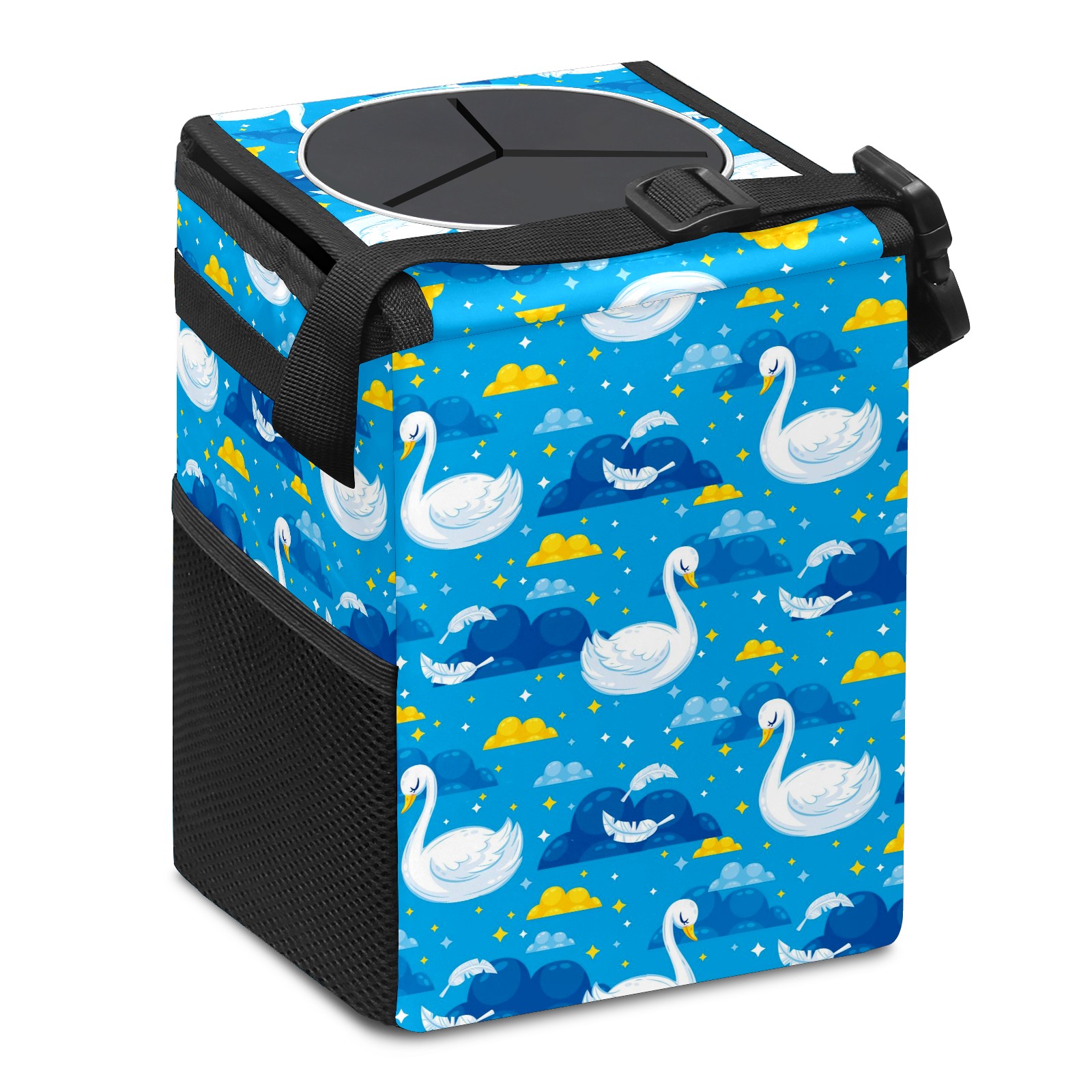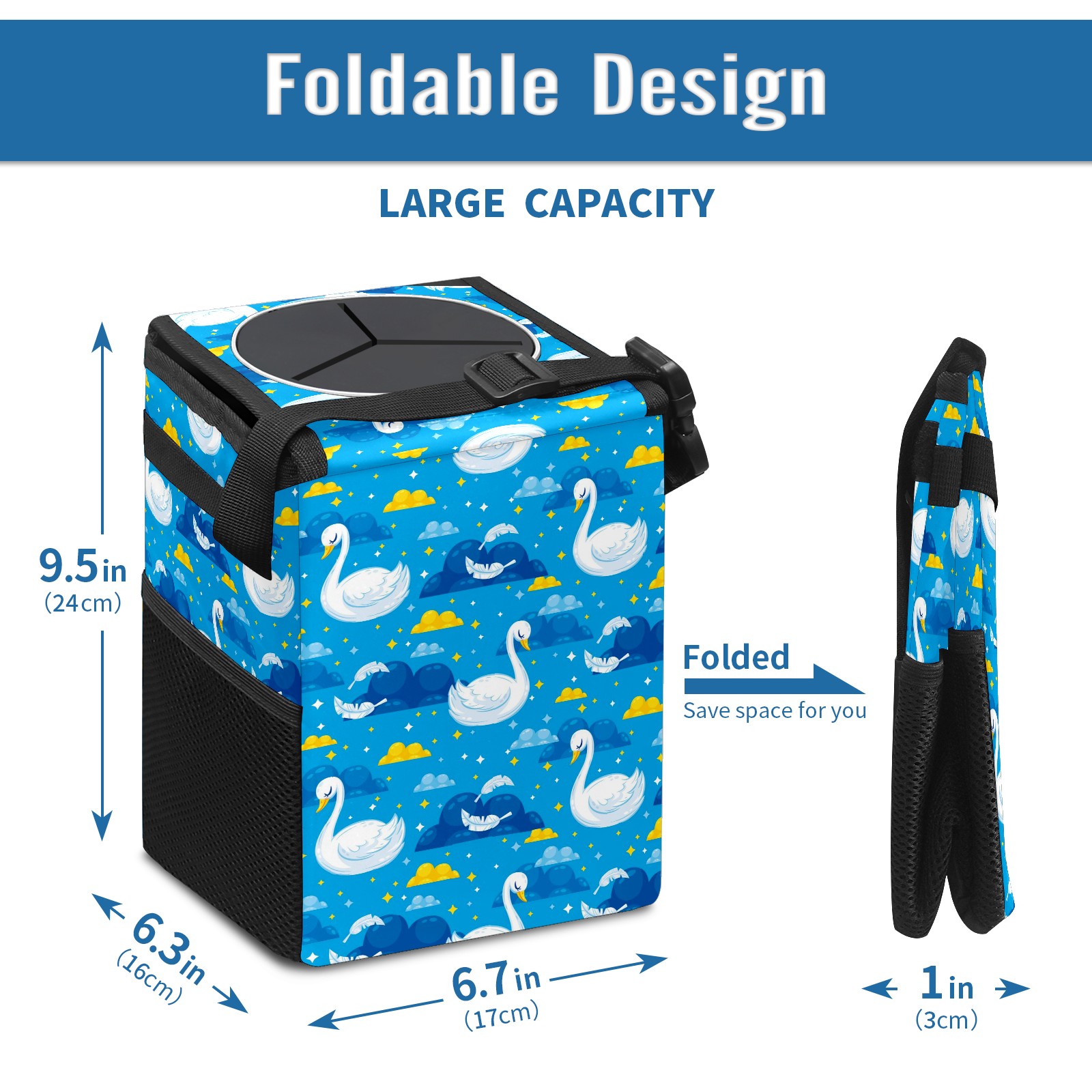 Car Garbage Can — Multi-functional, Lightweight Portable, Reusable Vehicle Trash Can, Waterproof with Sufficient Storage Capacity Swan Clouds Pattern Blue