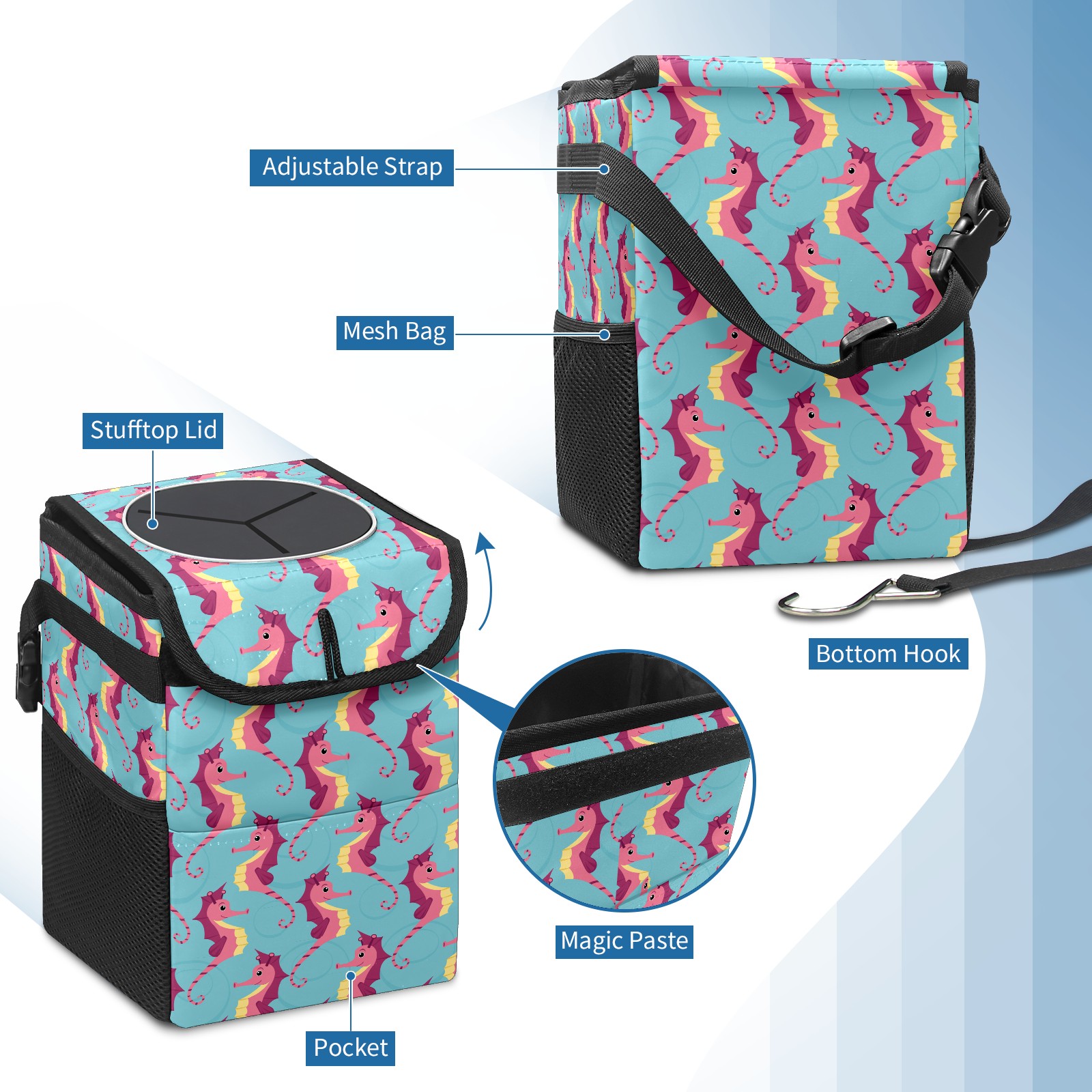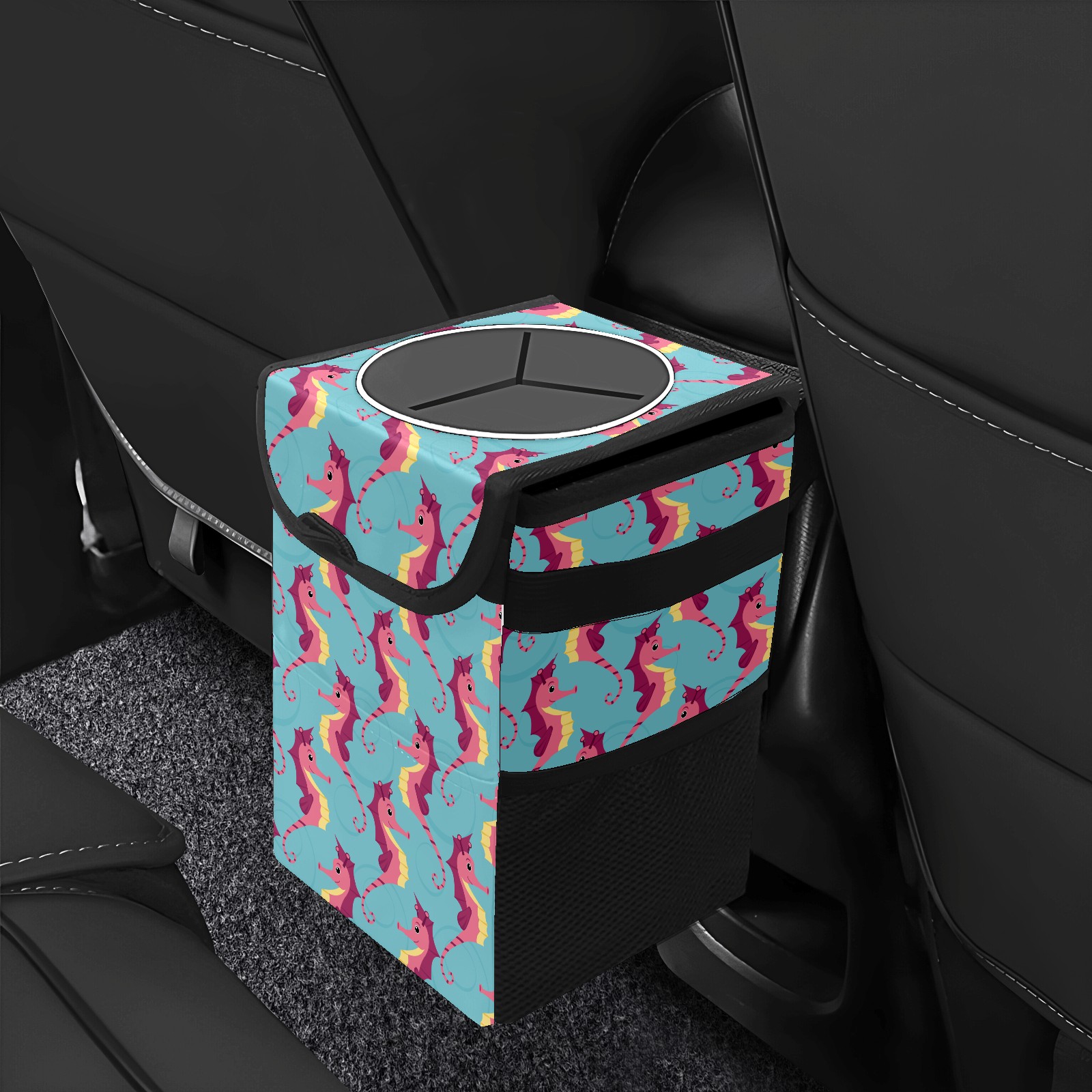 Car Garbage Can — Multi-functional, Lightweight Portable, Reusable Vehicle Trash Can, Waterproof with Sufficient Storage Capacity Sea Horse Cute