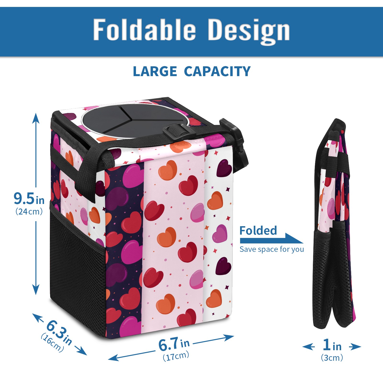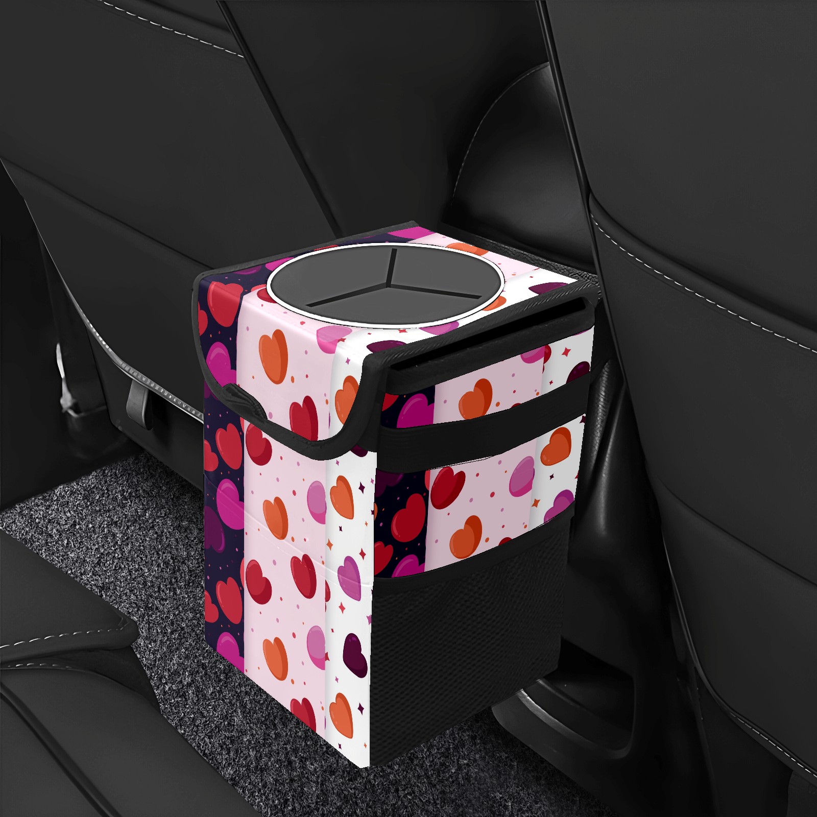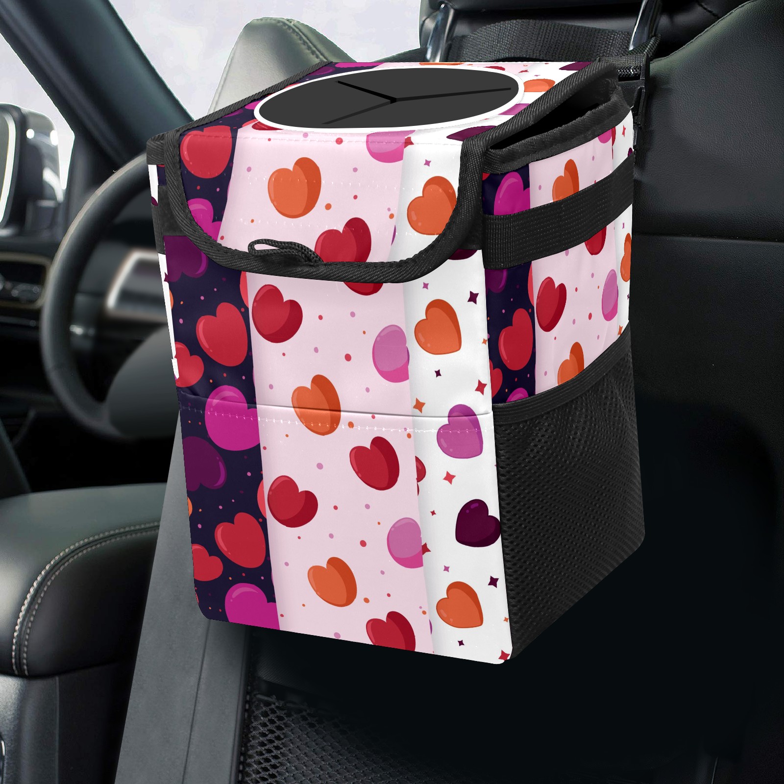 Car Garbage Can — Multi-functional, Lightweight Portable, Reusable Vehicle Trash Can, Waterproof with Sufficient Storage Capacity Rosy Pink Orange Love Heart Pattern Dotted