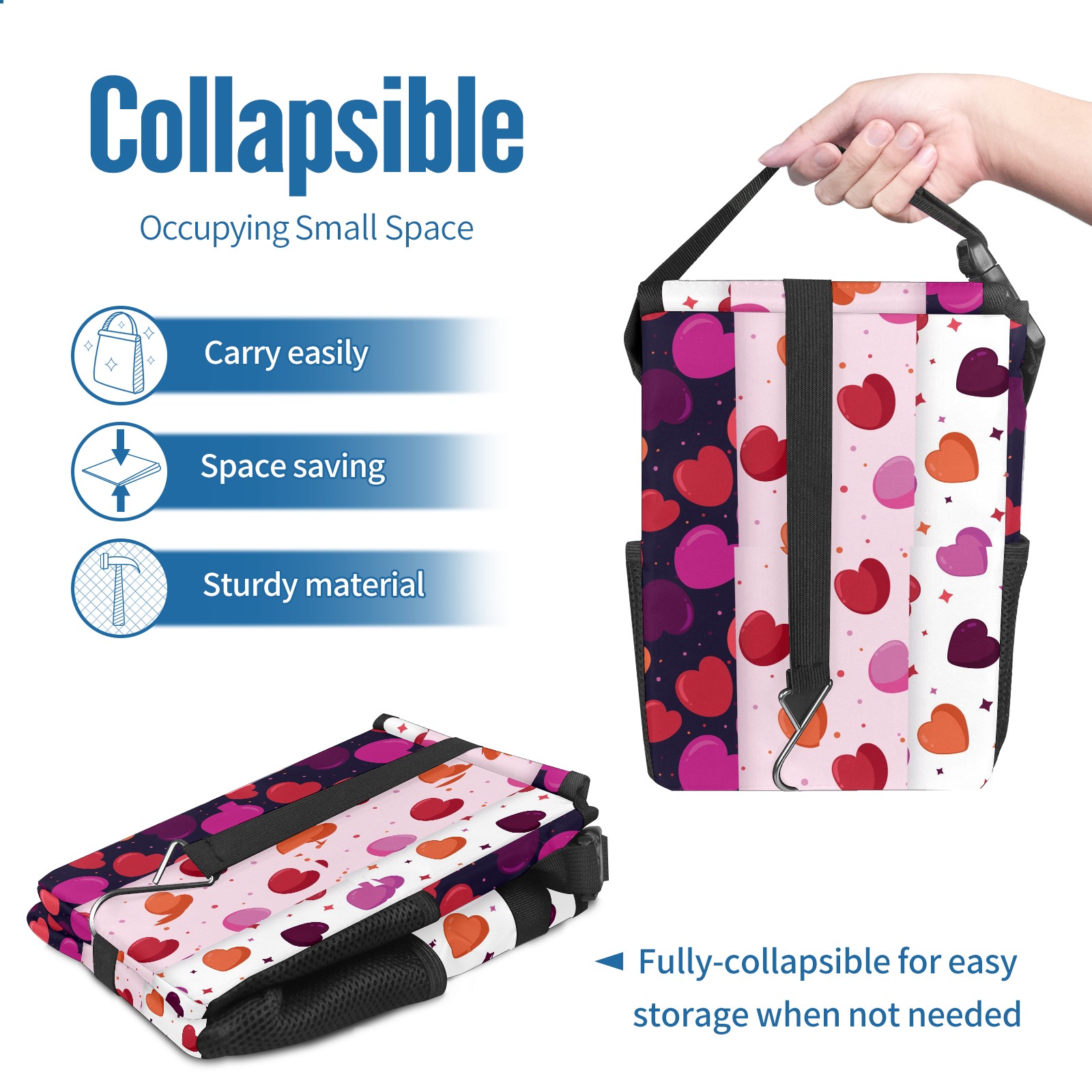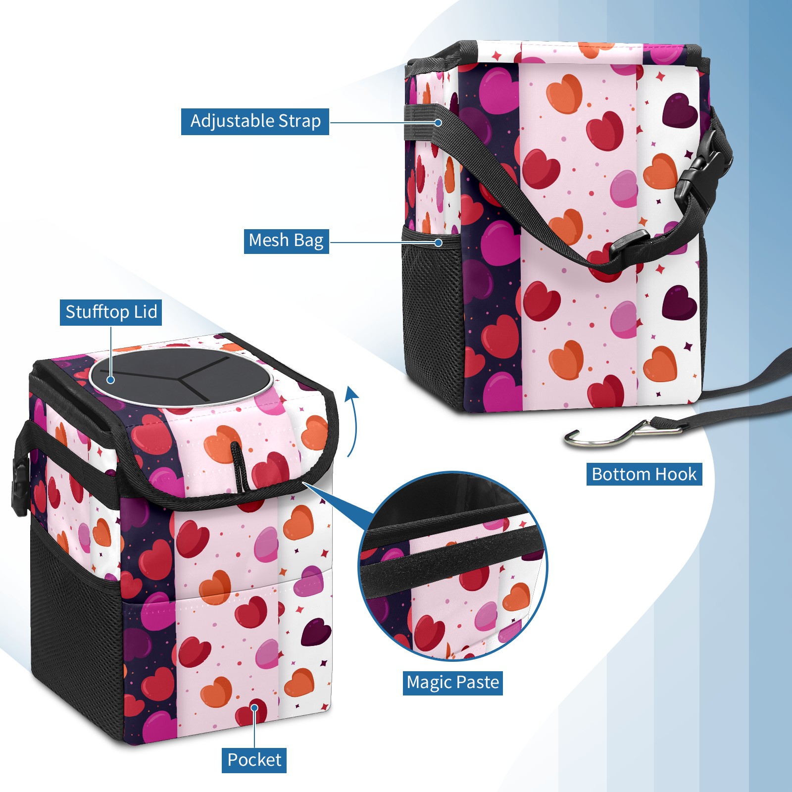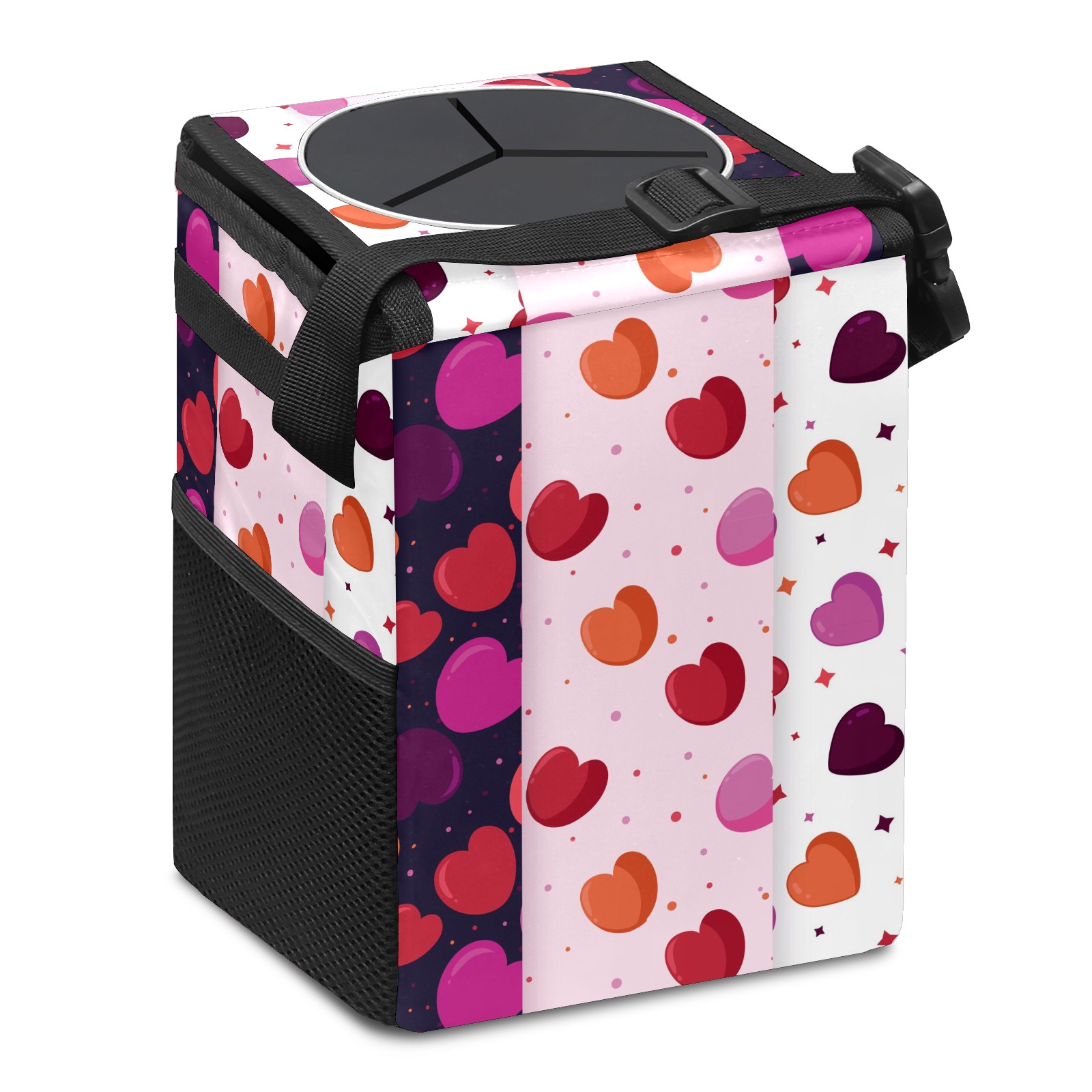 Car Garbage Can — Multi-functional, Lightweight Portable, Reusable Vehicle Trash Can, Waterproof with Sufficient Storage Capacity Rosy Pink Orange Love Heart Pattern Dotted