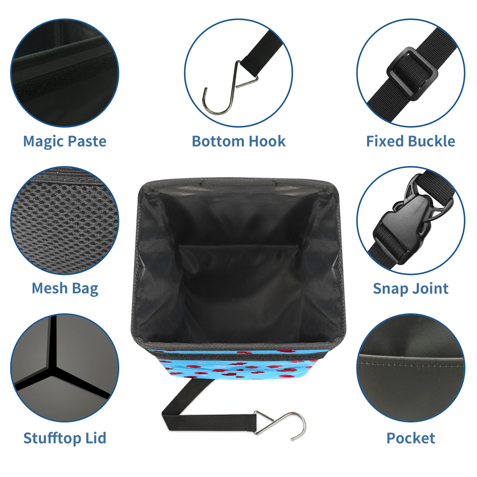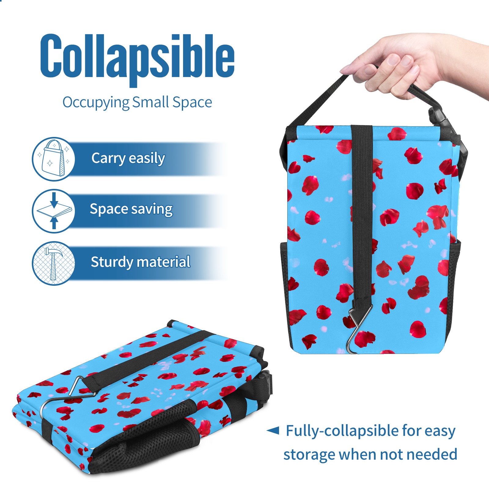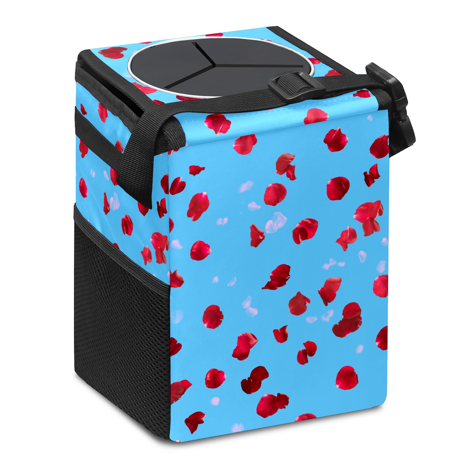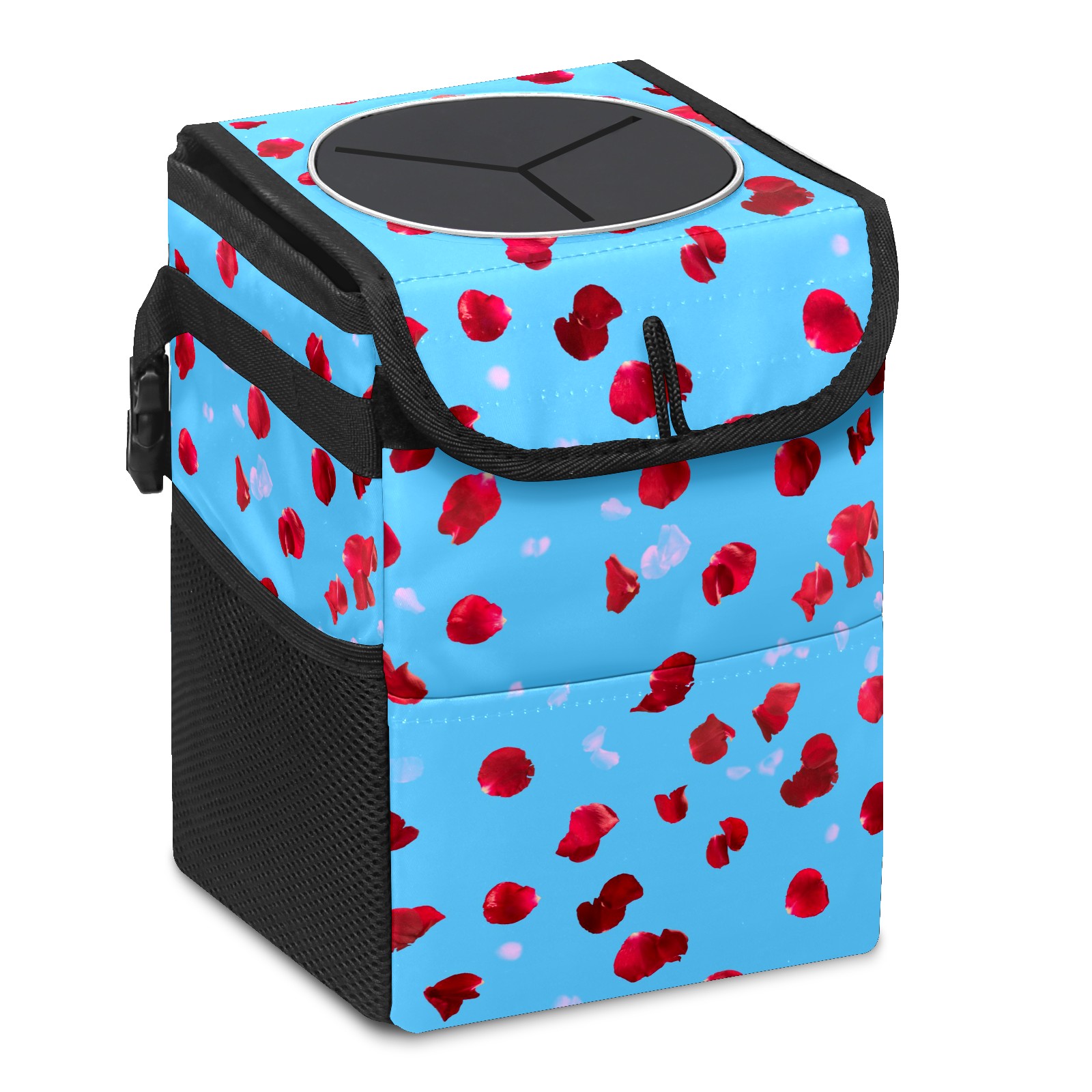 Car Garbage Can — Multi-functional, Lightweight Portable, Reusable Vehicle Trash Can, Waterproof with Sufficient Storage Capacity Red Rose Petals Pattern Blue