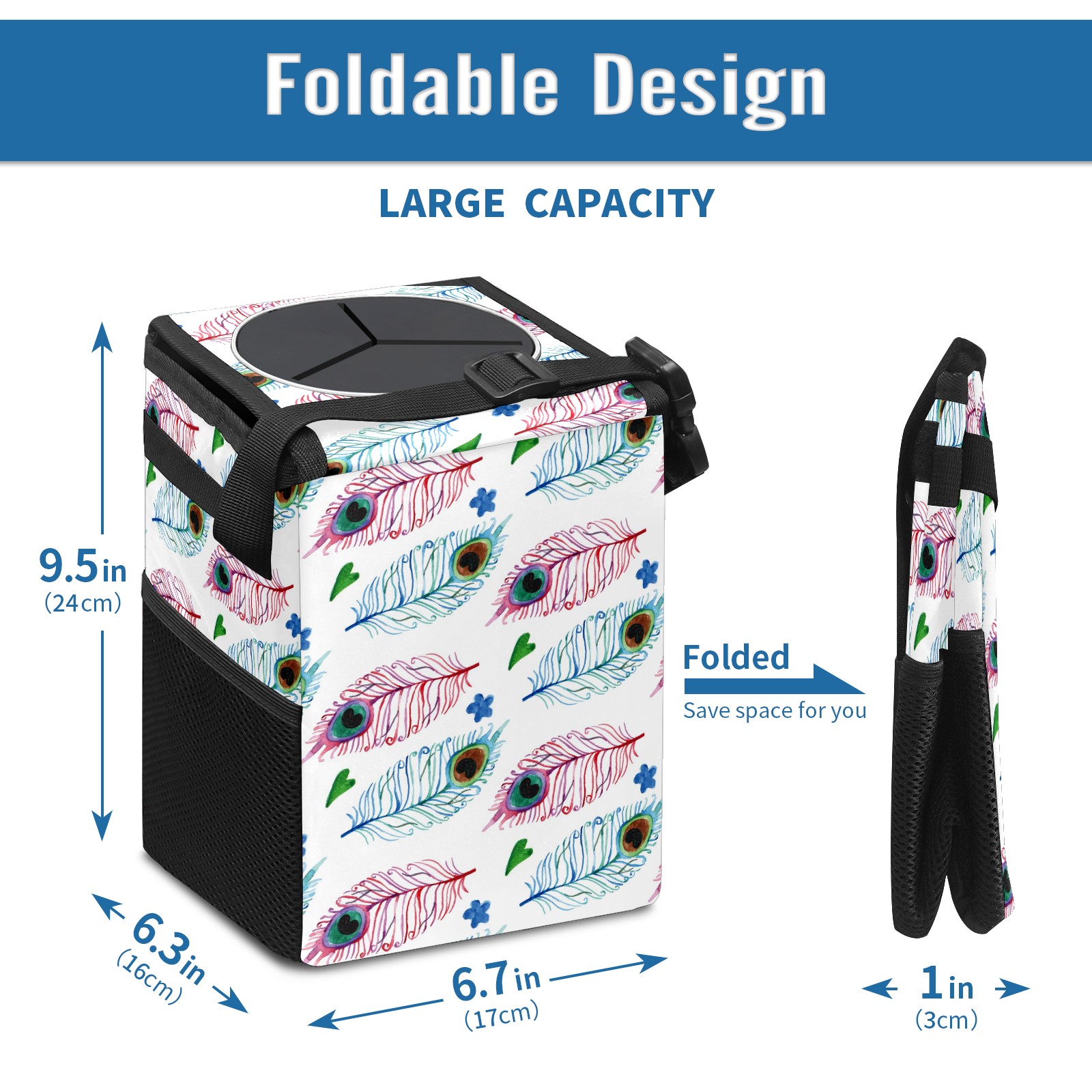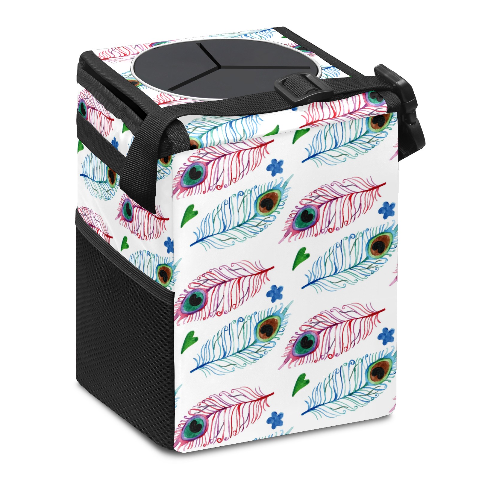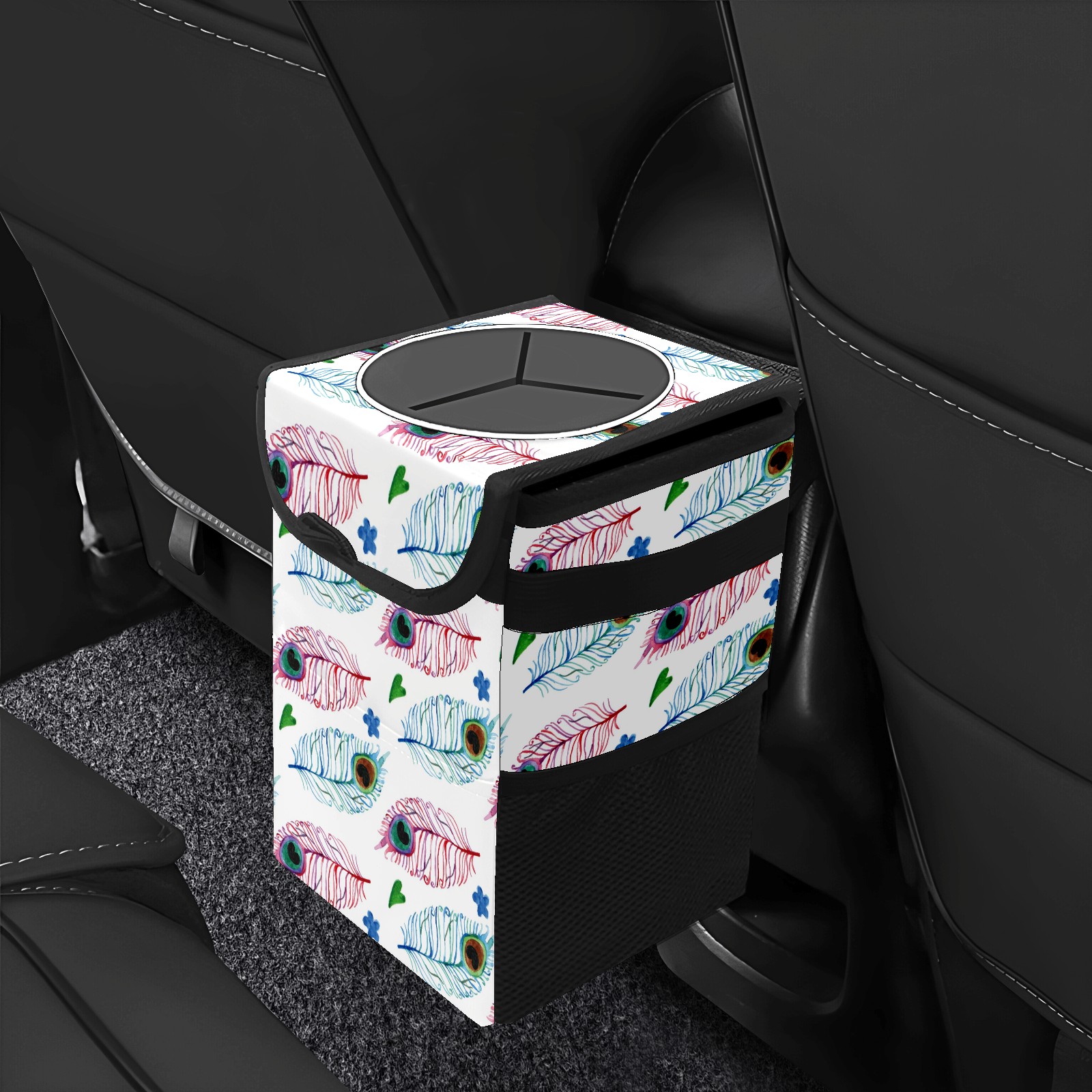 Car Garbage Can — Multi-functional, Lightweight Portable, Reusable Vehicle Trash Can, Waterproof with Sufficient Storage Capacity Red Blue Peacock Feather Pattern
