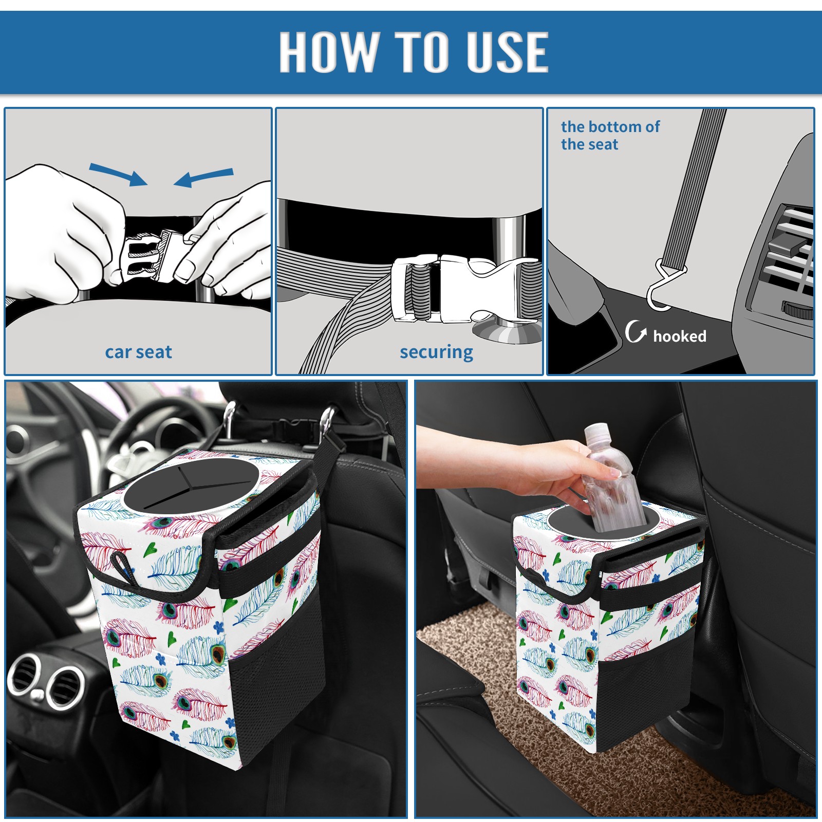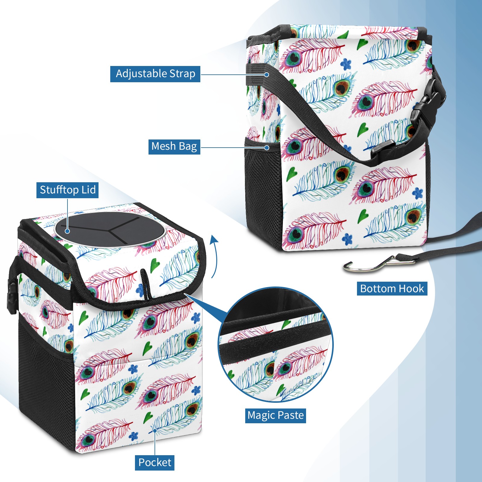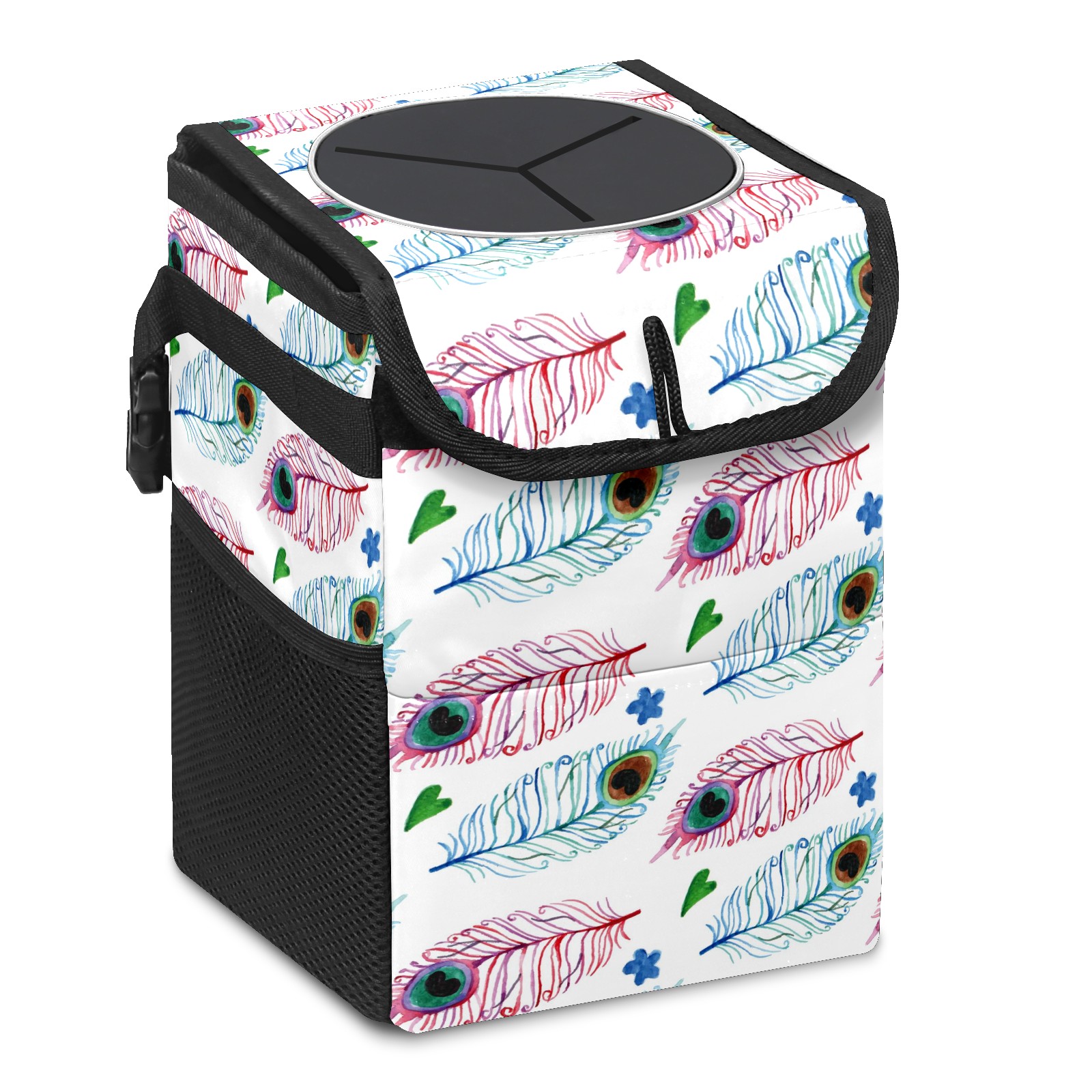 Car Garbage Can — Multi-functional, Lightweight Portable, Reusable Vehicle Trash Can, Waterproof with Sufficient Storage Capacity Red Blue Peacock Feather Pattern