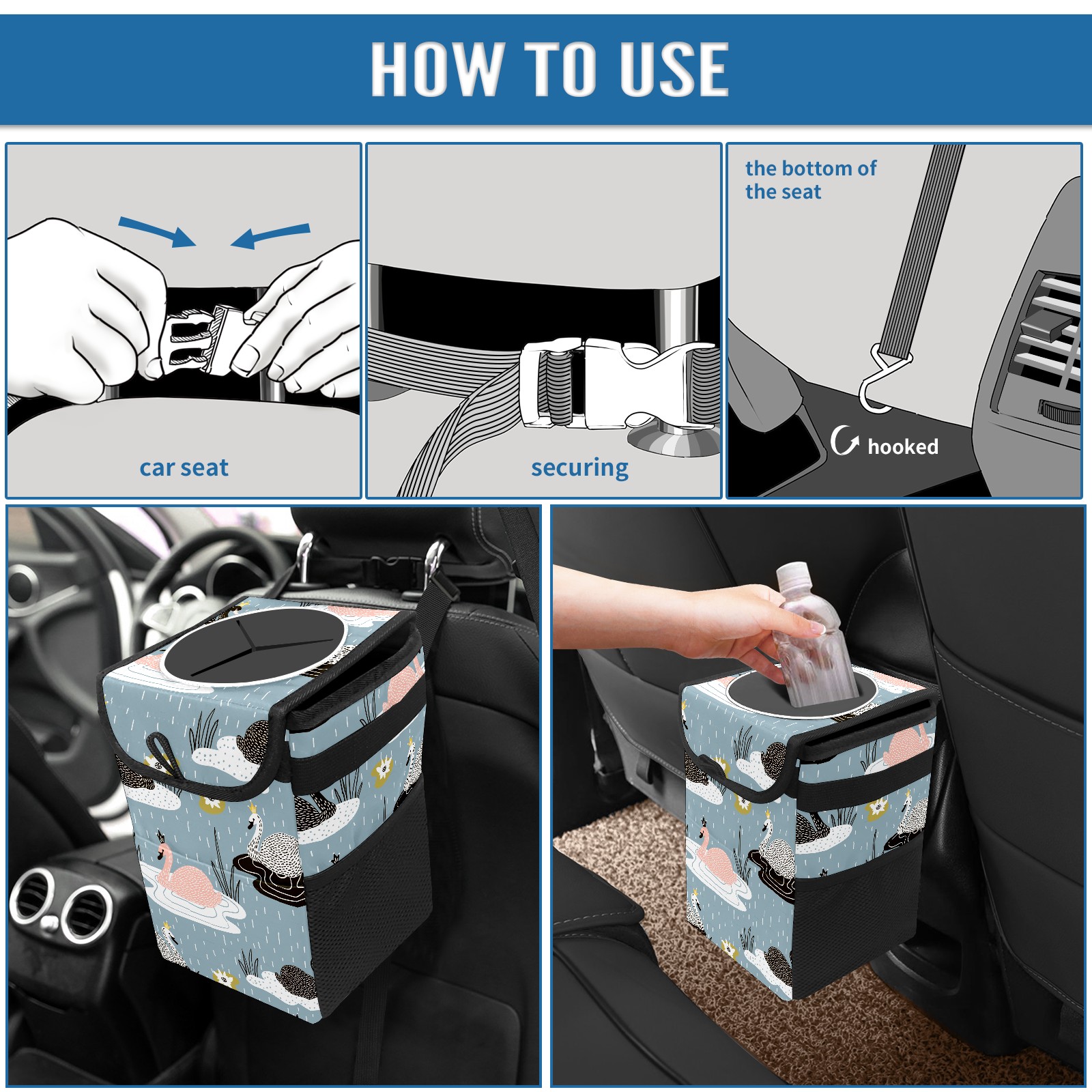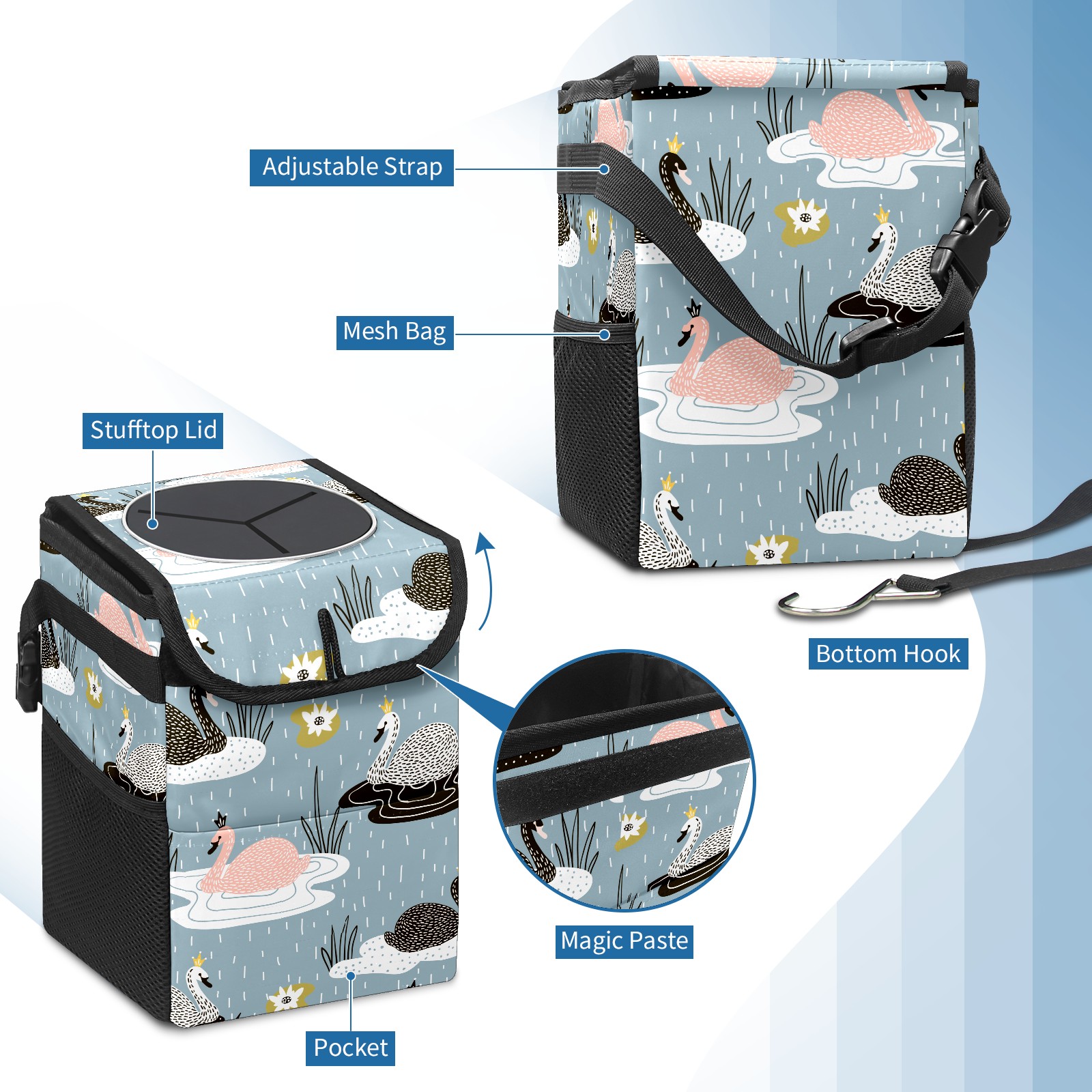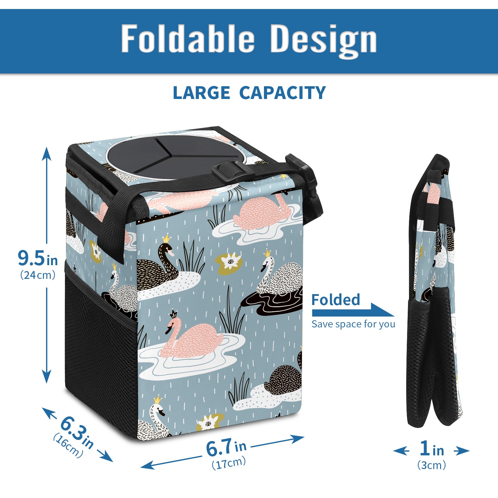 Car Garbage Can — Multi-functional, Lightweight Portable, Reusable Vehicle Trash Can, Waterproof with Sufficient Storage Capacity Furry Animal Duck Swan In Water