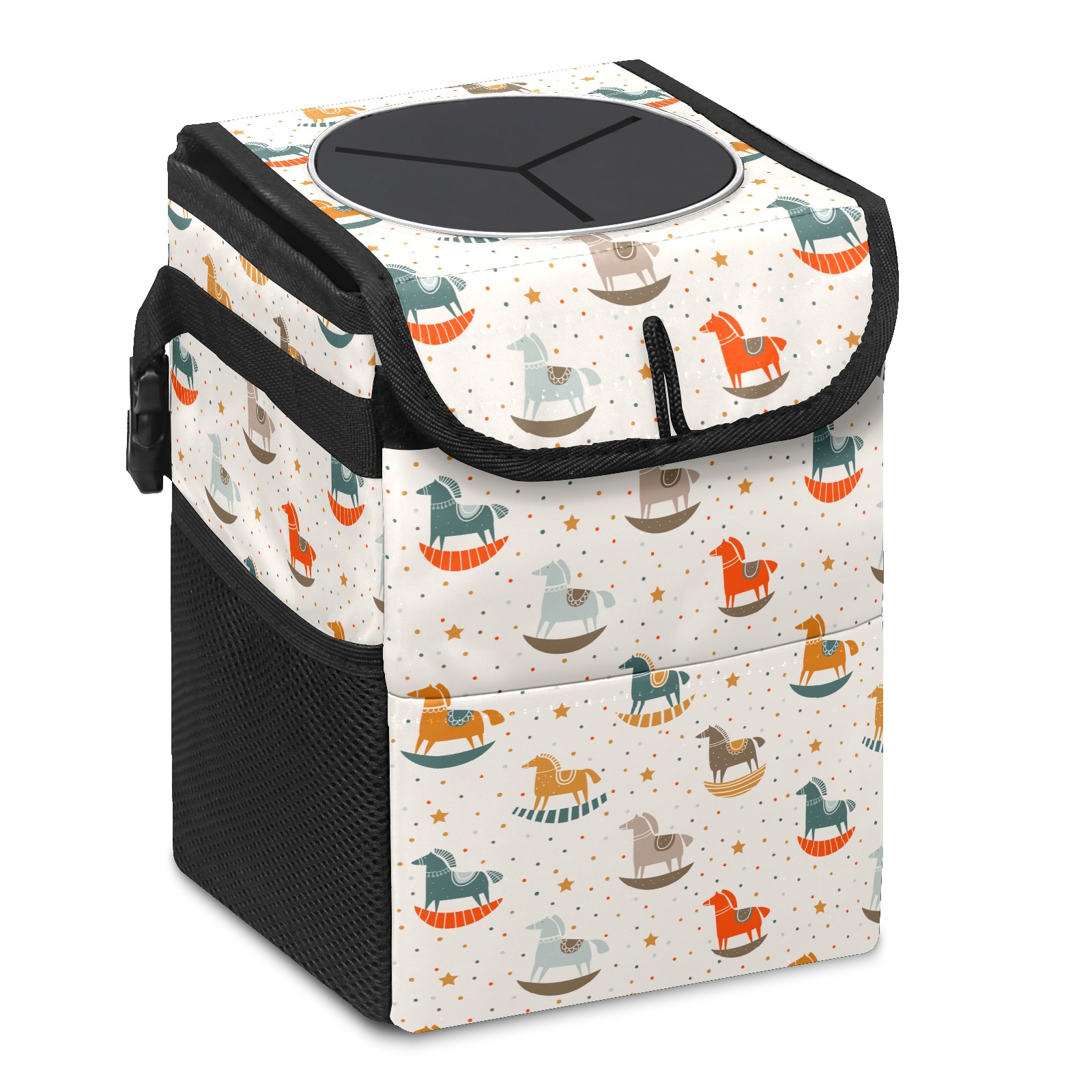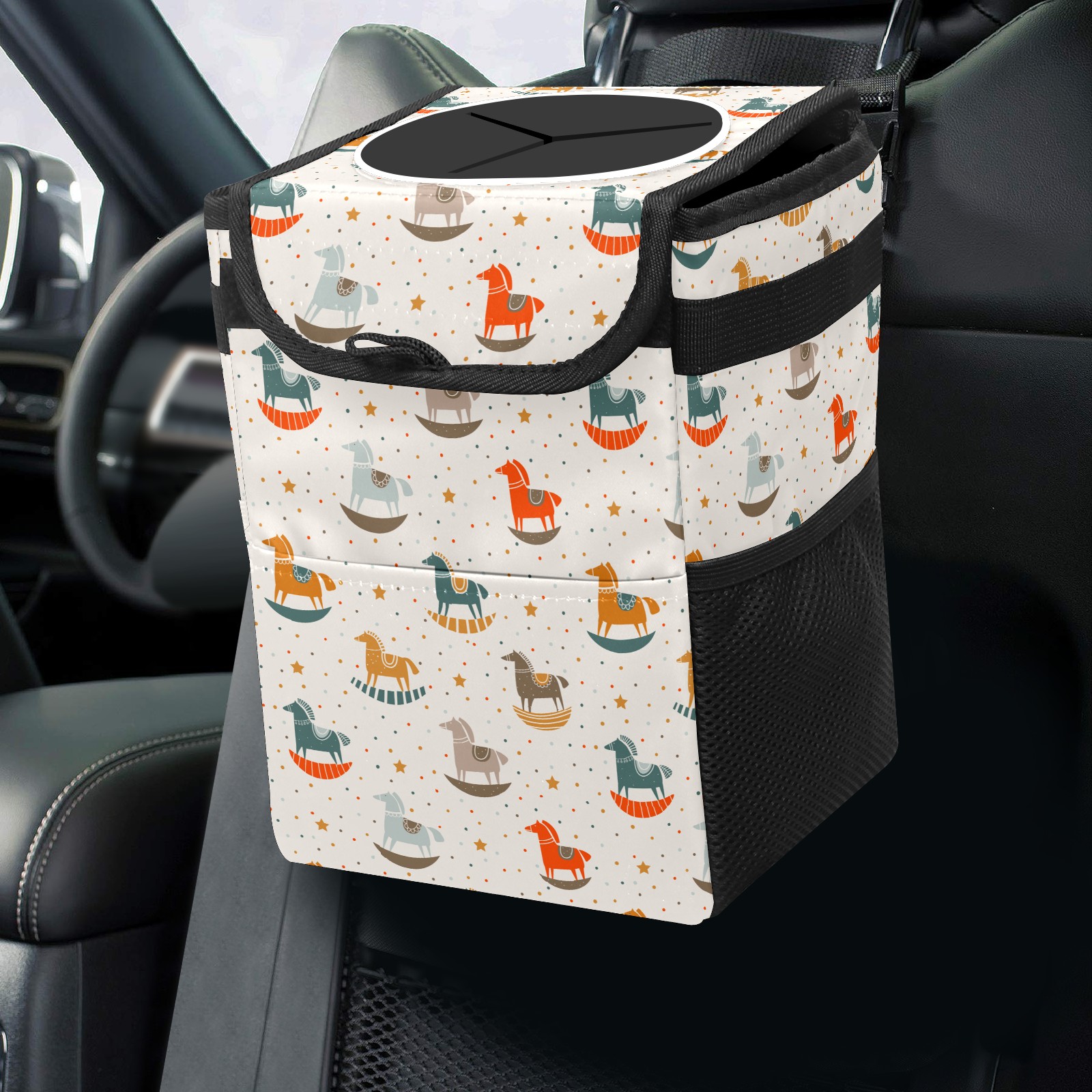 Car Garbage Can — Multi-functional, Lightweight Portable, Reusable Vehicle Trash Can, Waterproof with Sufficient Storage Capacity Funny Wood Horse Childhood Star Pattern